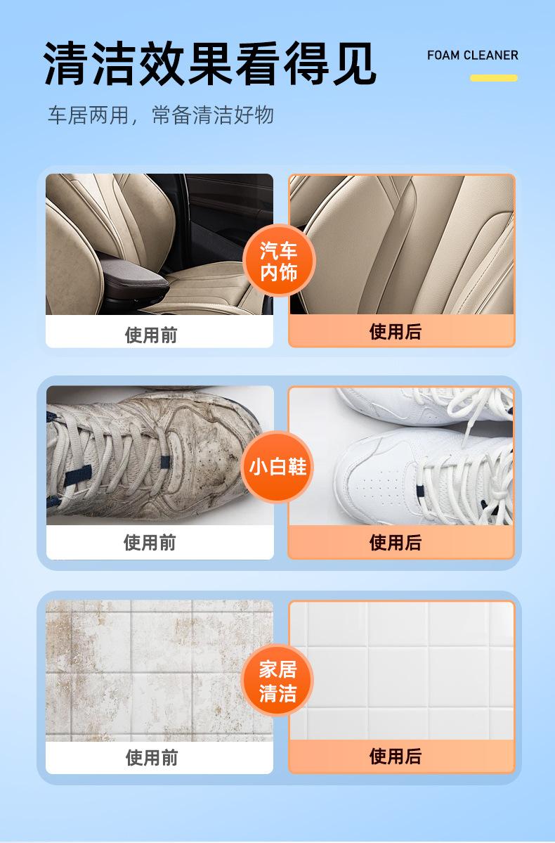 Limpiador de espuma multifuncional para coche, limpieza en seco especial, descontaminación potente, artefacto limpiador de zapatos blancos pequeños