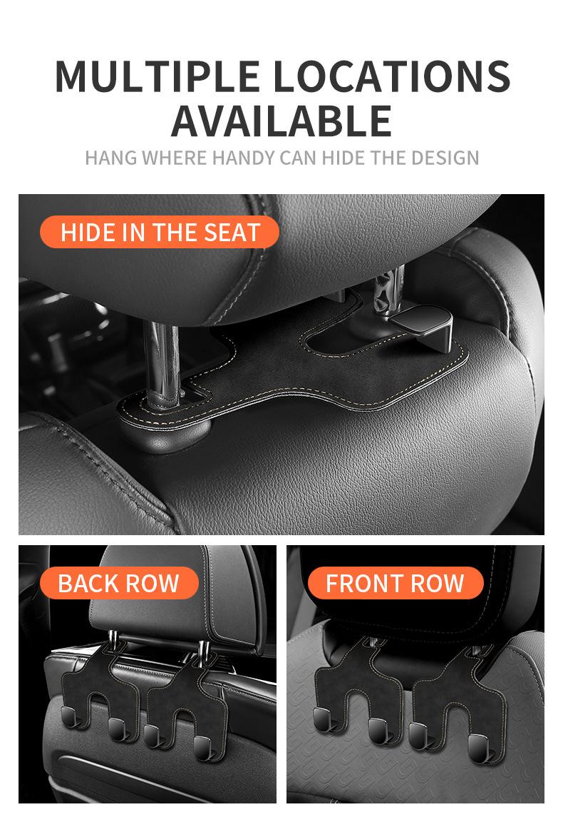 Gancho para asiento de coche, gancho invisible para respaldo de asiento, gancho multifuncional de metal de gamuza para coche, gancho doble de almacenamiento