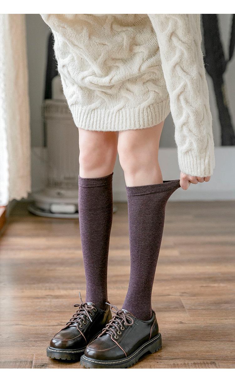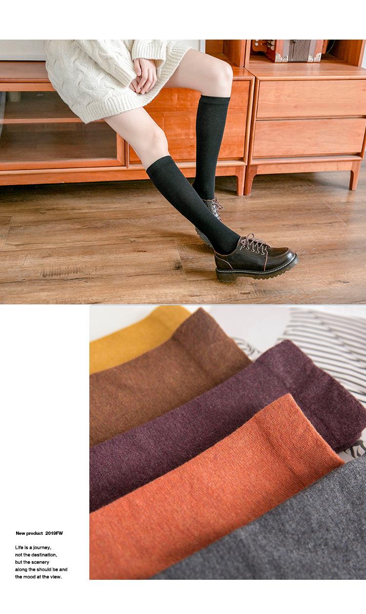Plusox Calcetines Altos hasta la Pantorrilla para Estudiantes Jk hasta la Rodilla Trendy Otoño Negro Media Pantorrilla para Mujer Estilo Ins