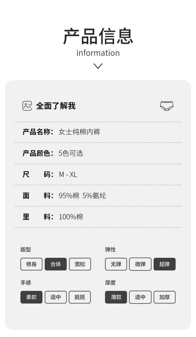 Ropa interior de algodón para mujer Algodón de bebé Entrepierna antibacteriana 5A Jacquard Transpirable Cintura Cadera Ropa interior para mujer