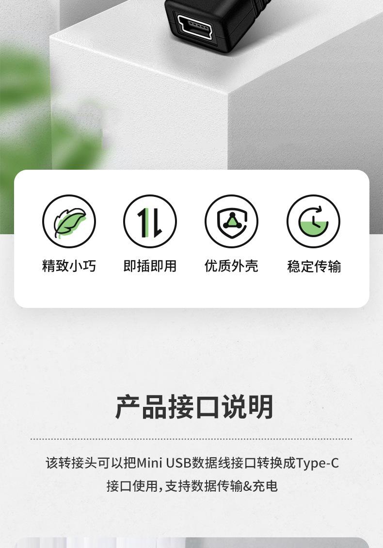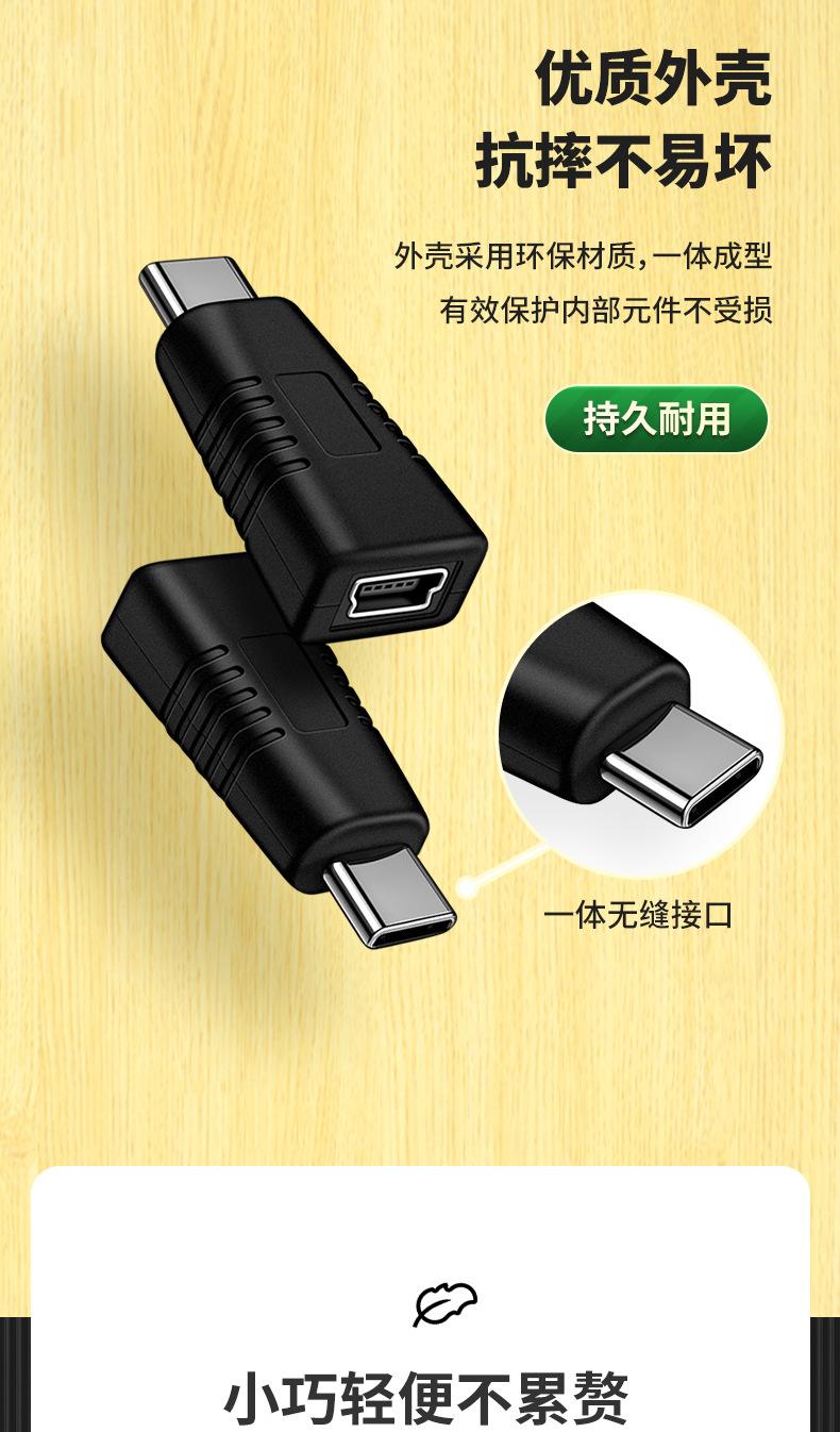 Adaptador de datos de carga USB con convertidor macho de mini a tipo C de MINI a tipo C