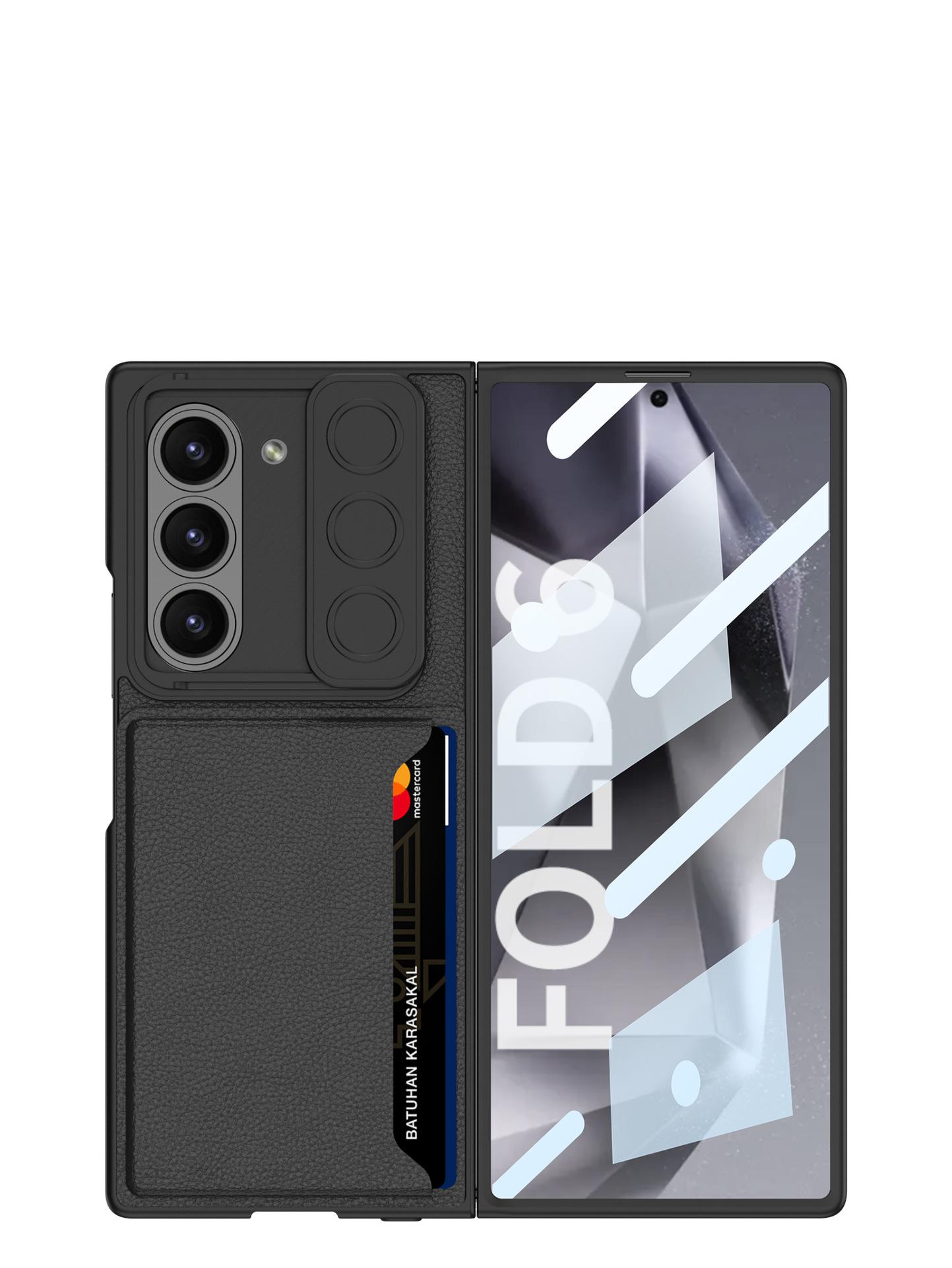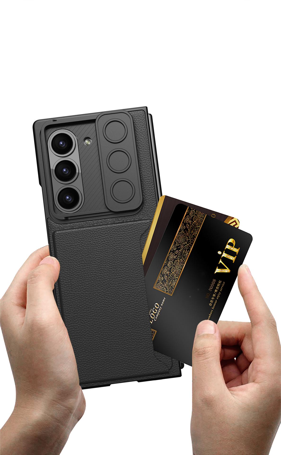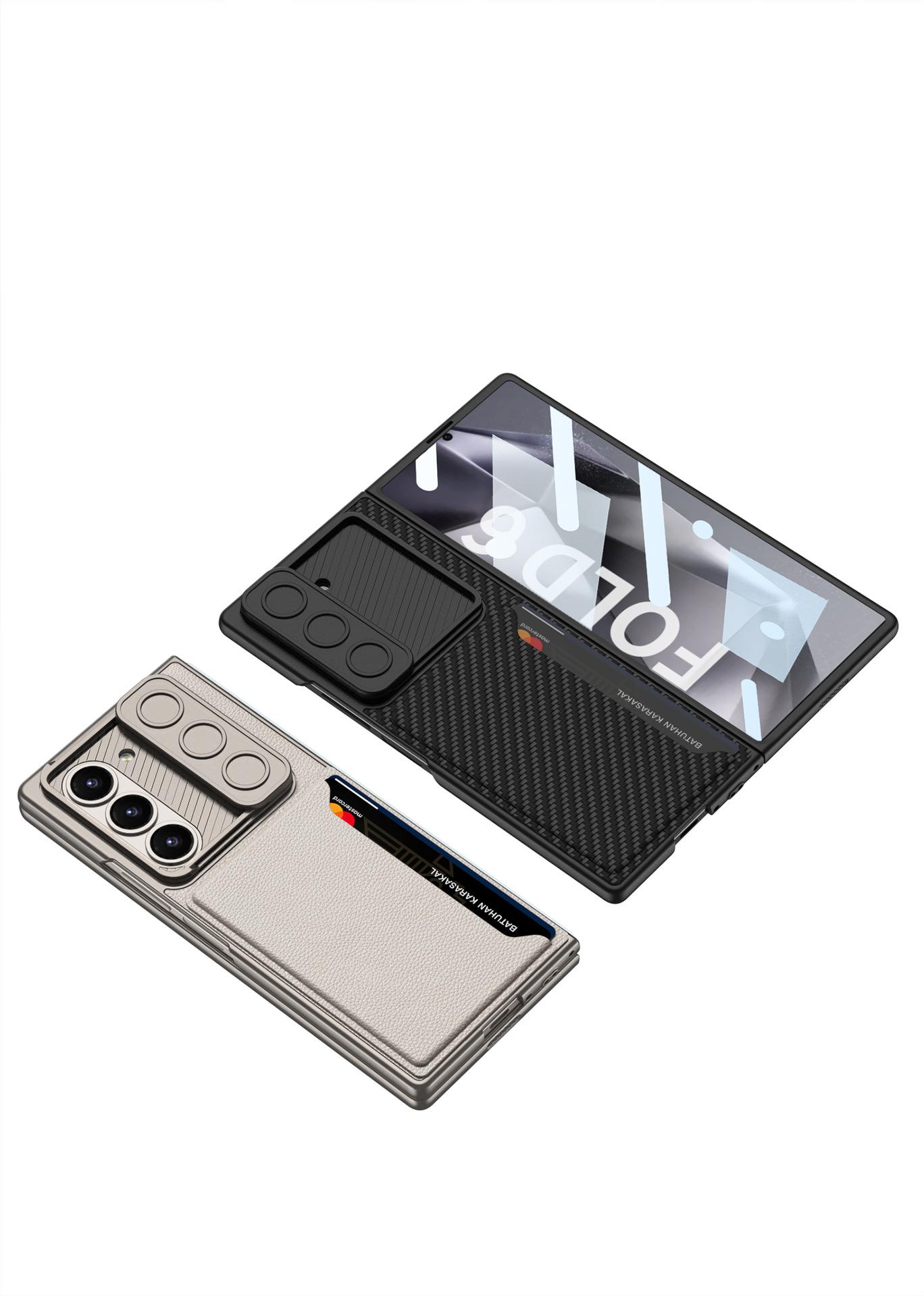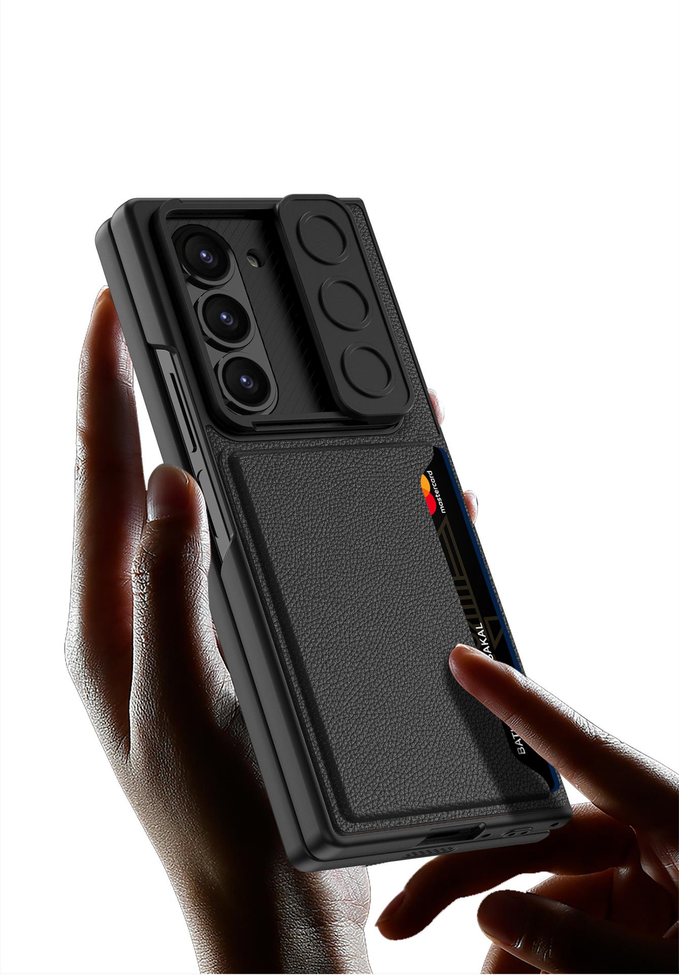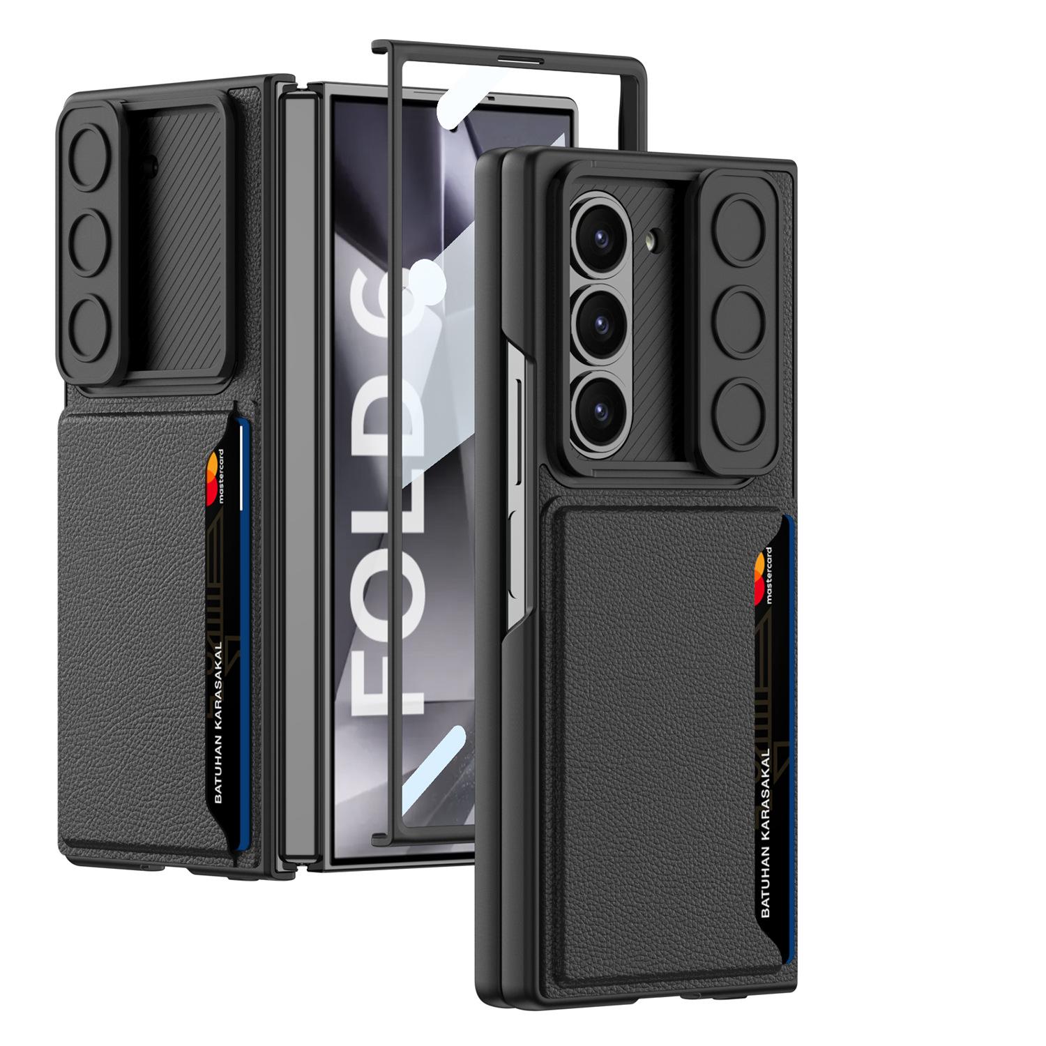 Funda de cuero para teléfono móvil Samsung Zfold6 con tarjetero Tarjeta Adecuada para Zfold6 Creativa Ventana Deslizante Funda Protectora para Teléfono Móvil