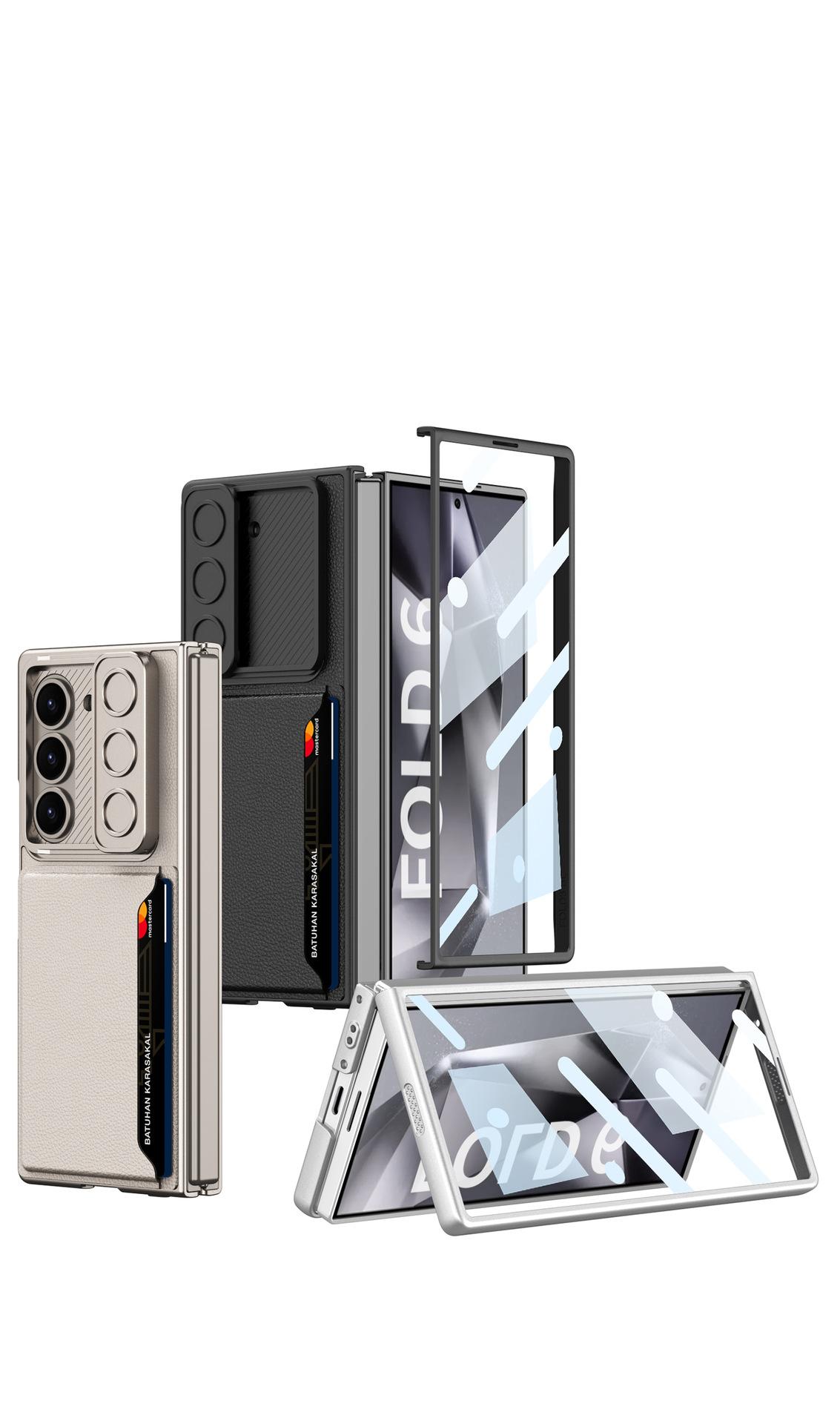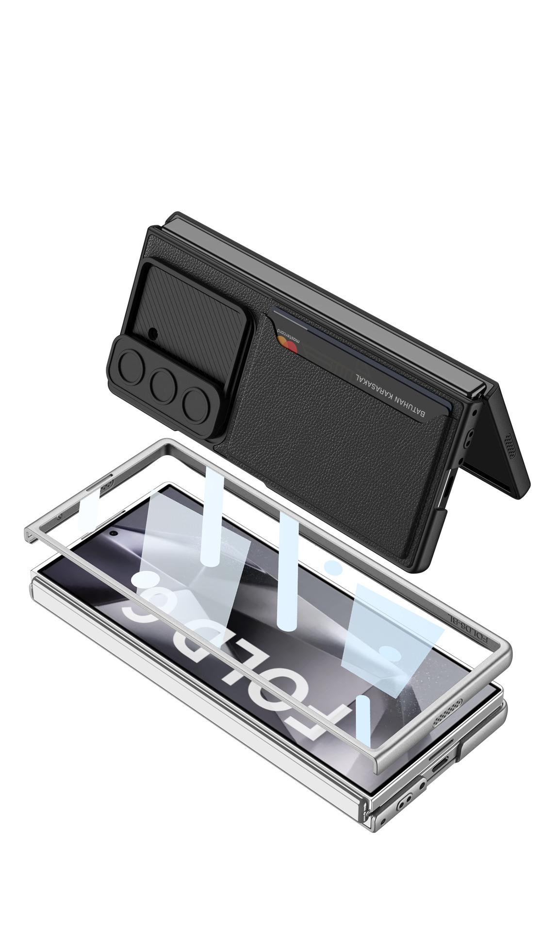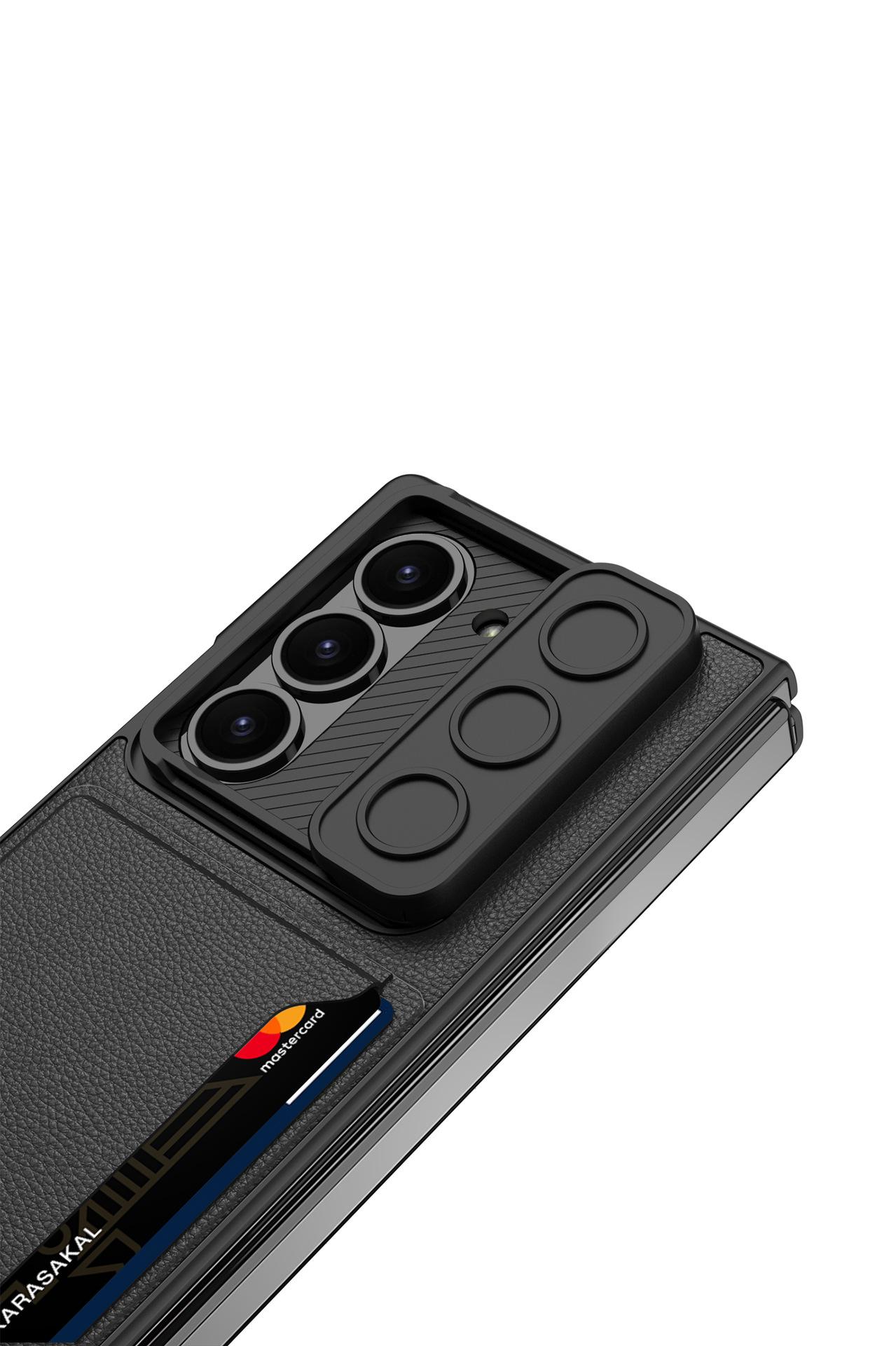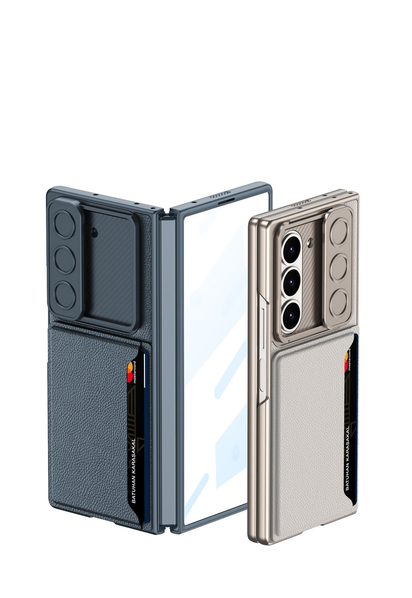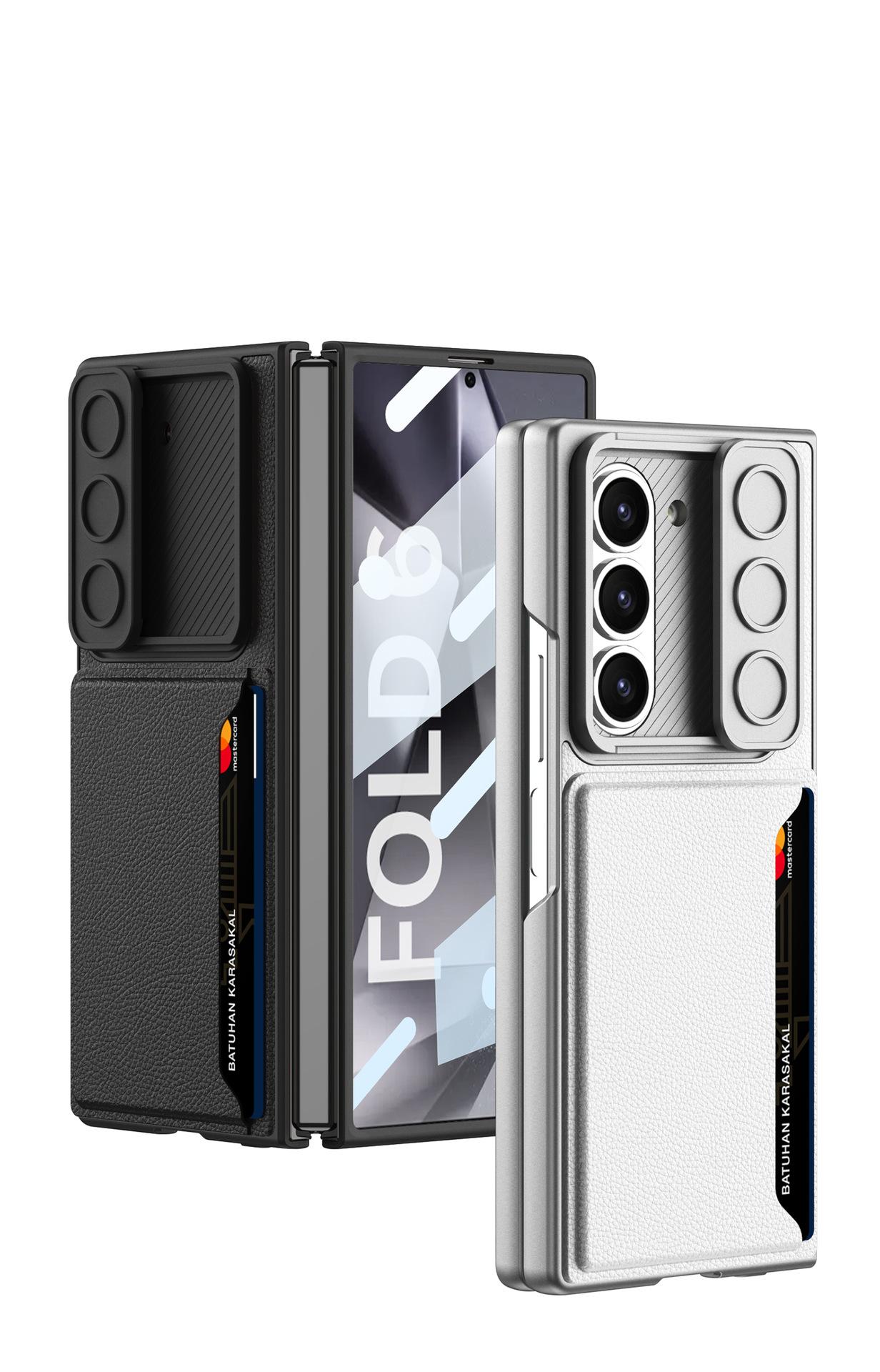 Funda de cuero para teléfono móvil Samsung Zfold6 con tarjetero Tarjeta Adecuada para Zfold6 Creativa Ventana Deslizante Funda Protectora para Teléfono Móvil