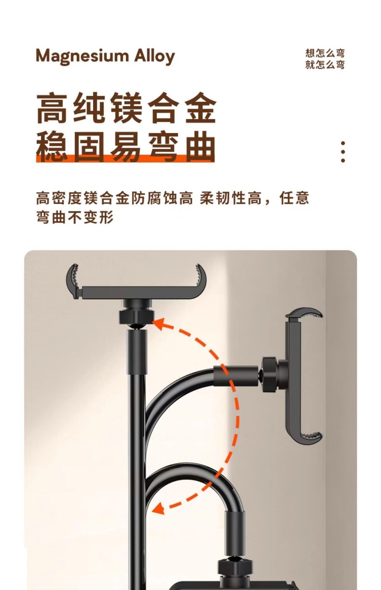 Soporte para teléfono móvil de cabecera, soporte en espiral para transmisión en vivo, soporte universal para tableta y teléfono móvil, soporte giratorio multifuncional
