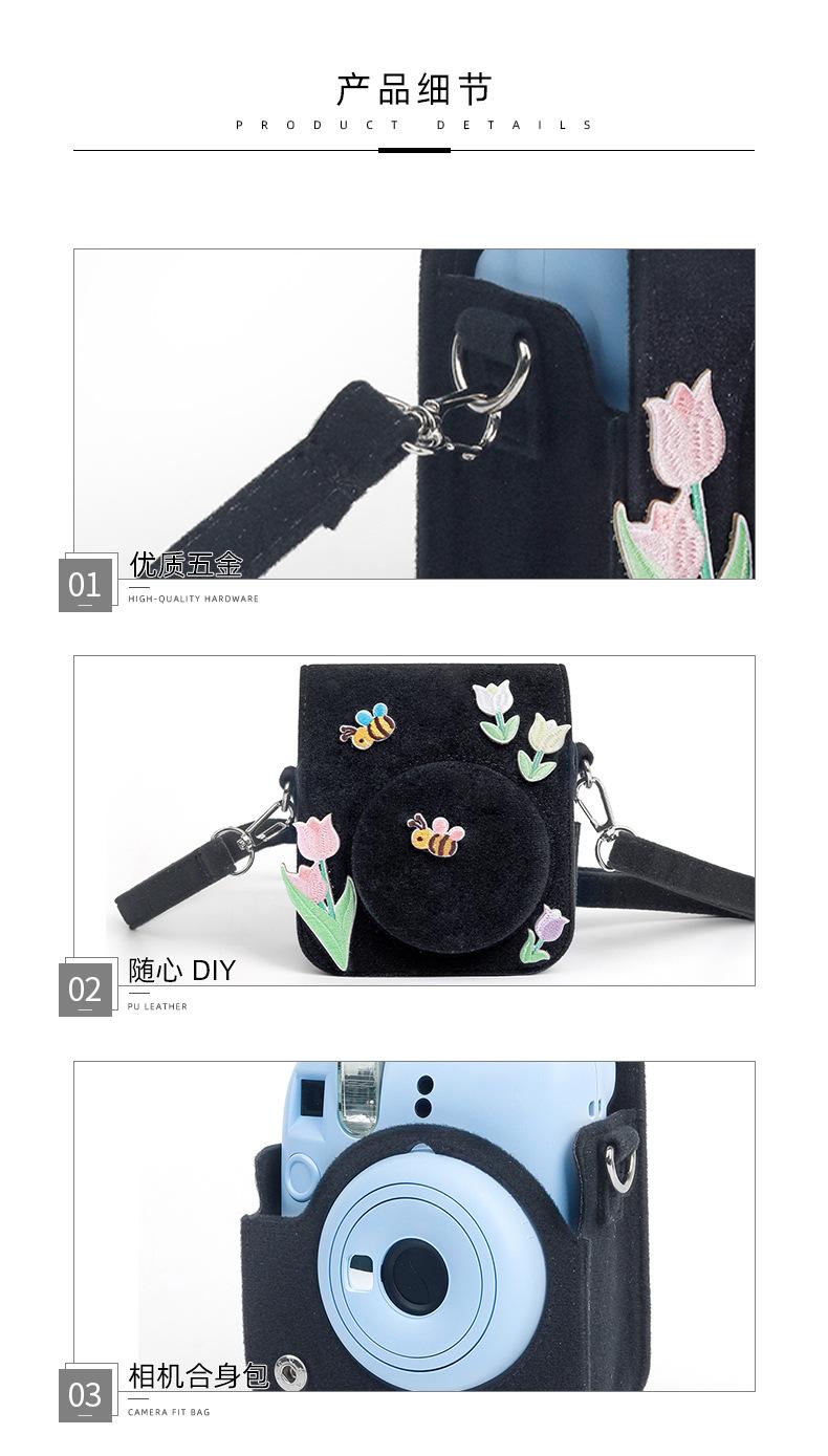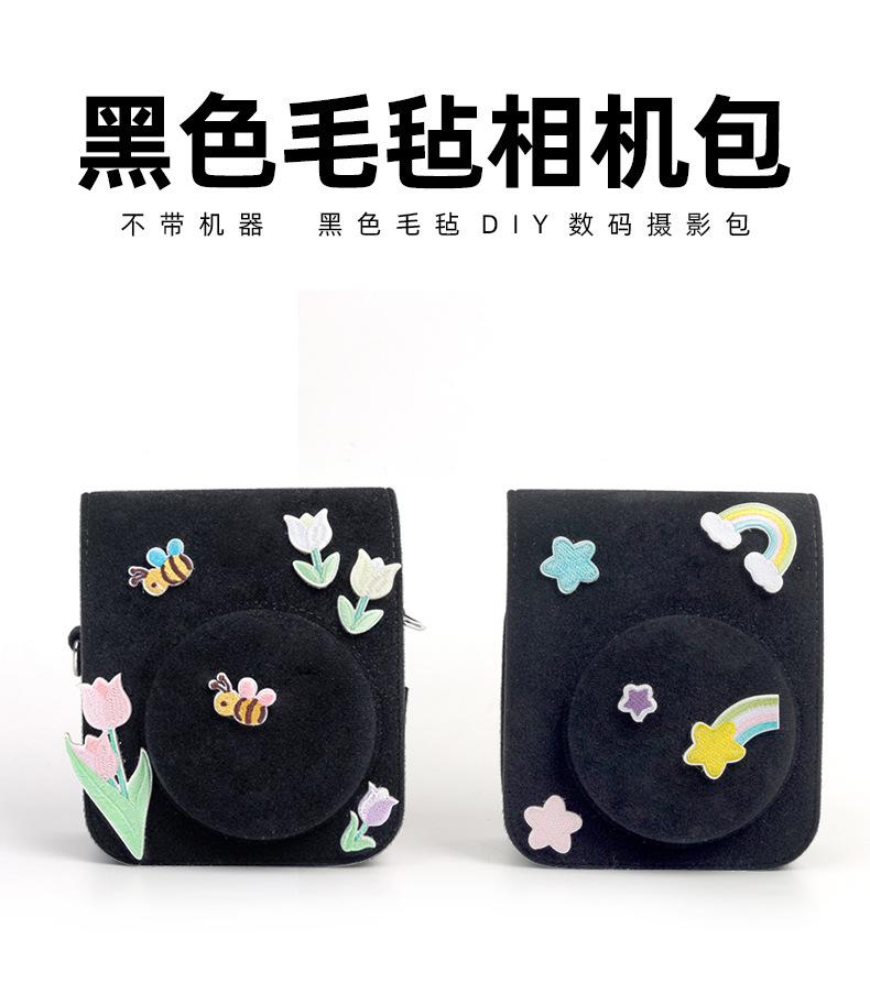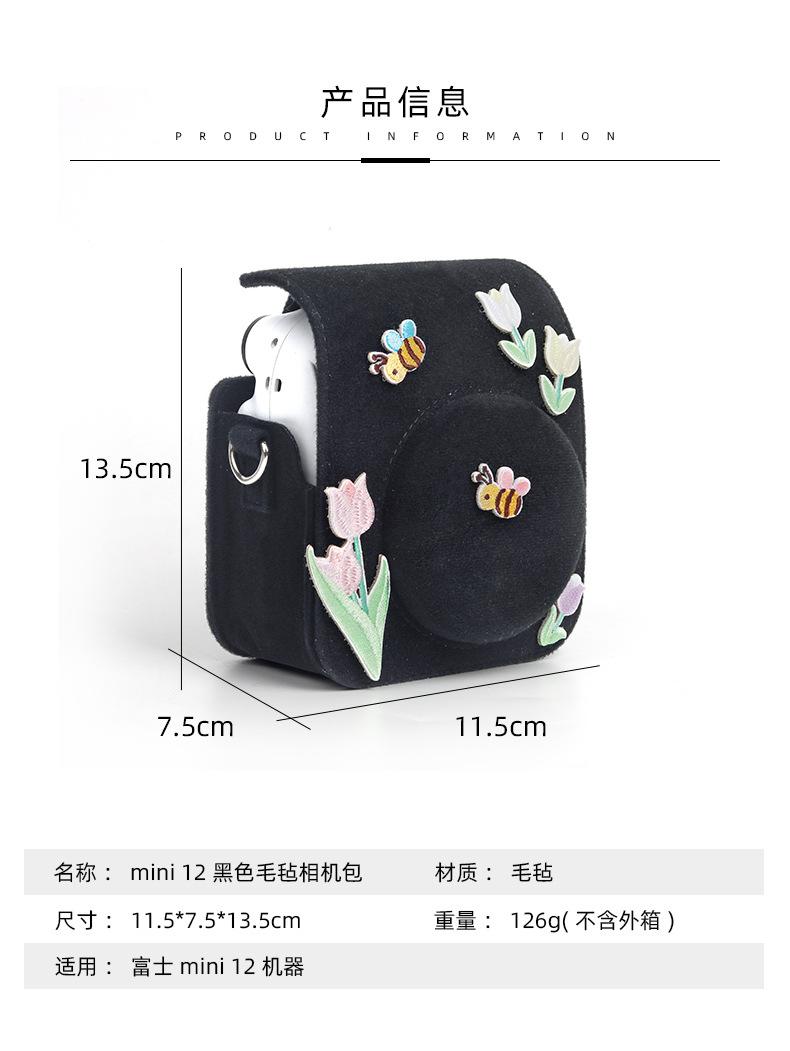 Adecuado para Polaroid Mini 12 Bolsa de Cámara de Fieltro Negro Venta al por Mayor Estuche Protector para Cámara Estilo Retro Lindo Adhesivo