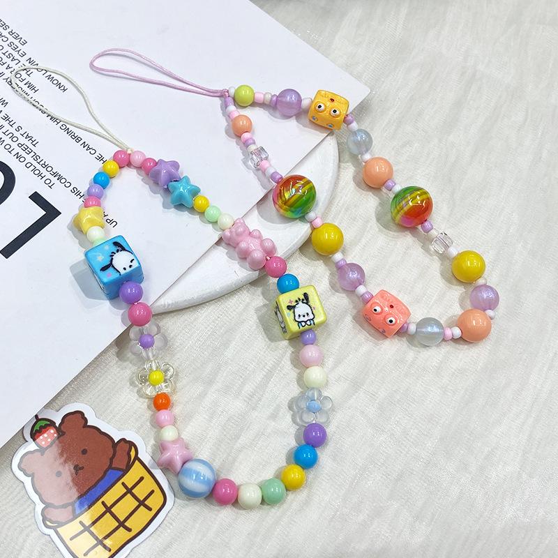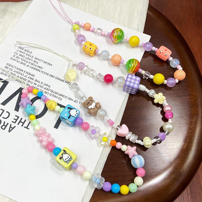 Cadena para Teléfono Emoji de Cuentas de Arcoíris Ins Coreana Cadena Corta Lanyard para Cámara Ccd Accesorio para Muñeca Elemento Arcoíris