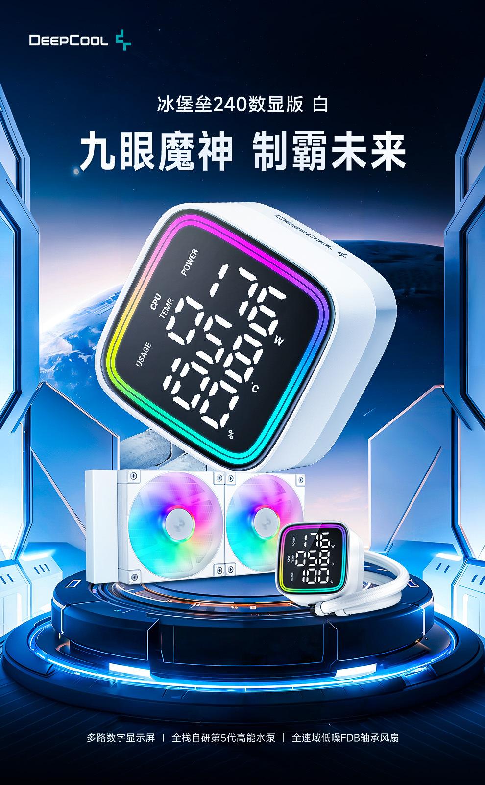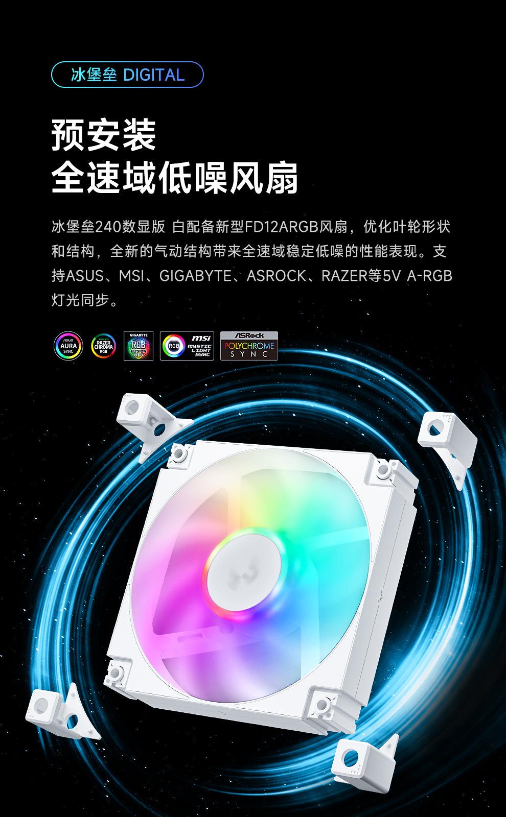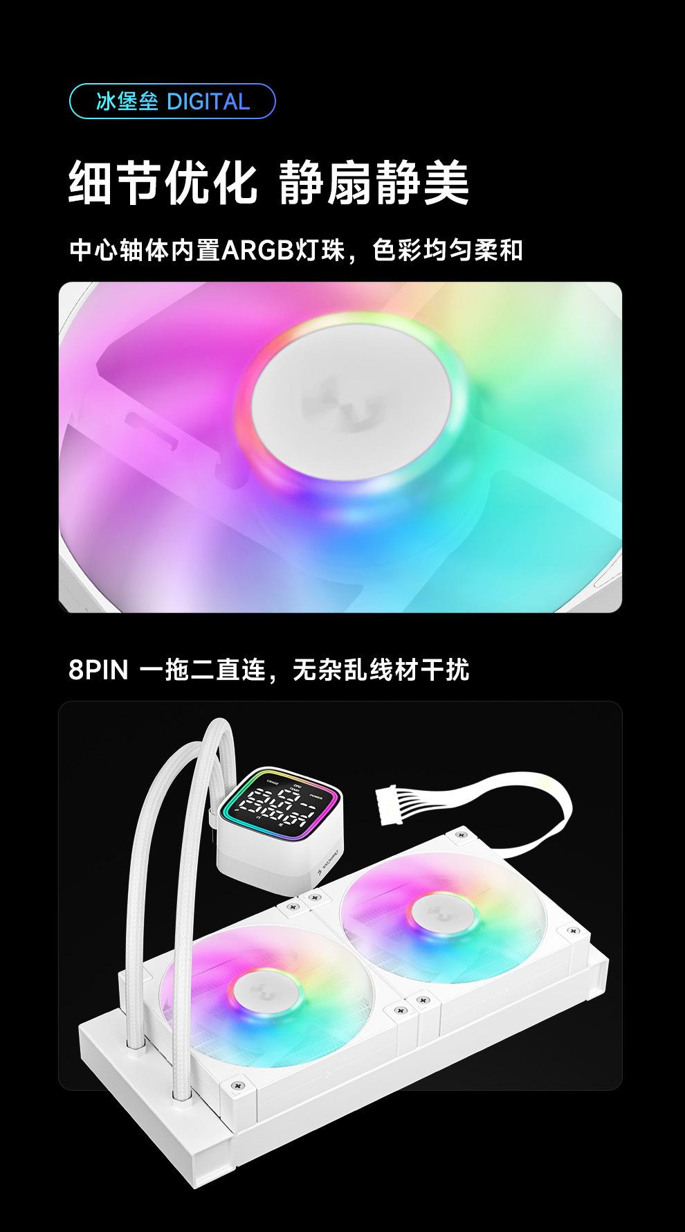 Radiador de CPU para computadora de escritorio Kyushu Fengshen LD240, versión con pantalla digital blanca, refrigerado por agua, luz ARGB, control de temperatura PWM