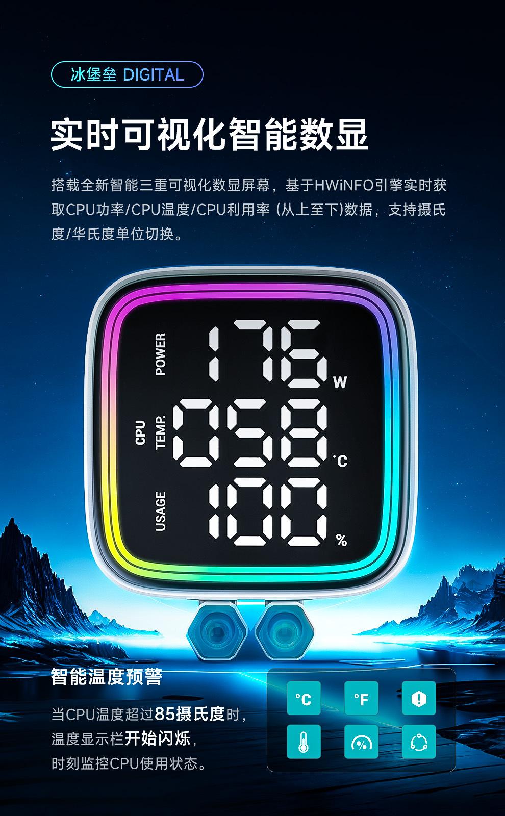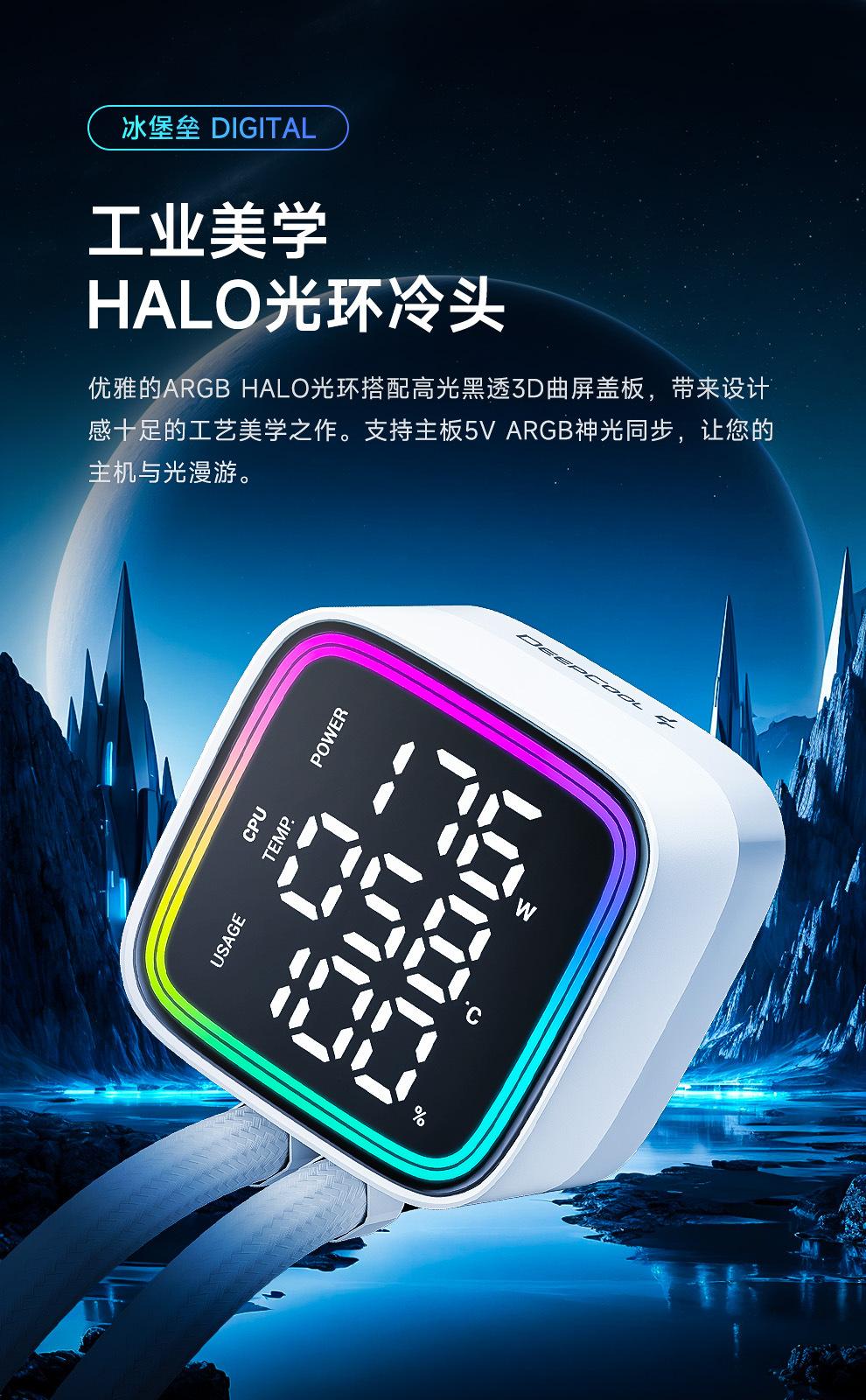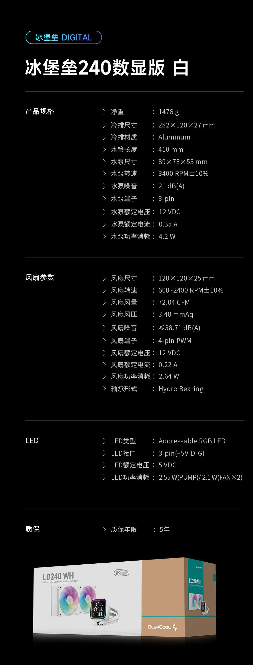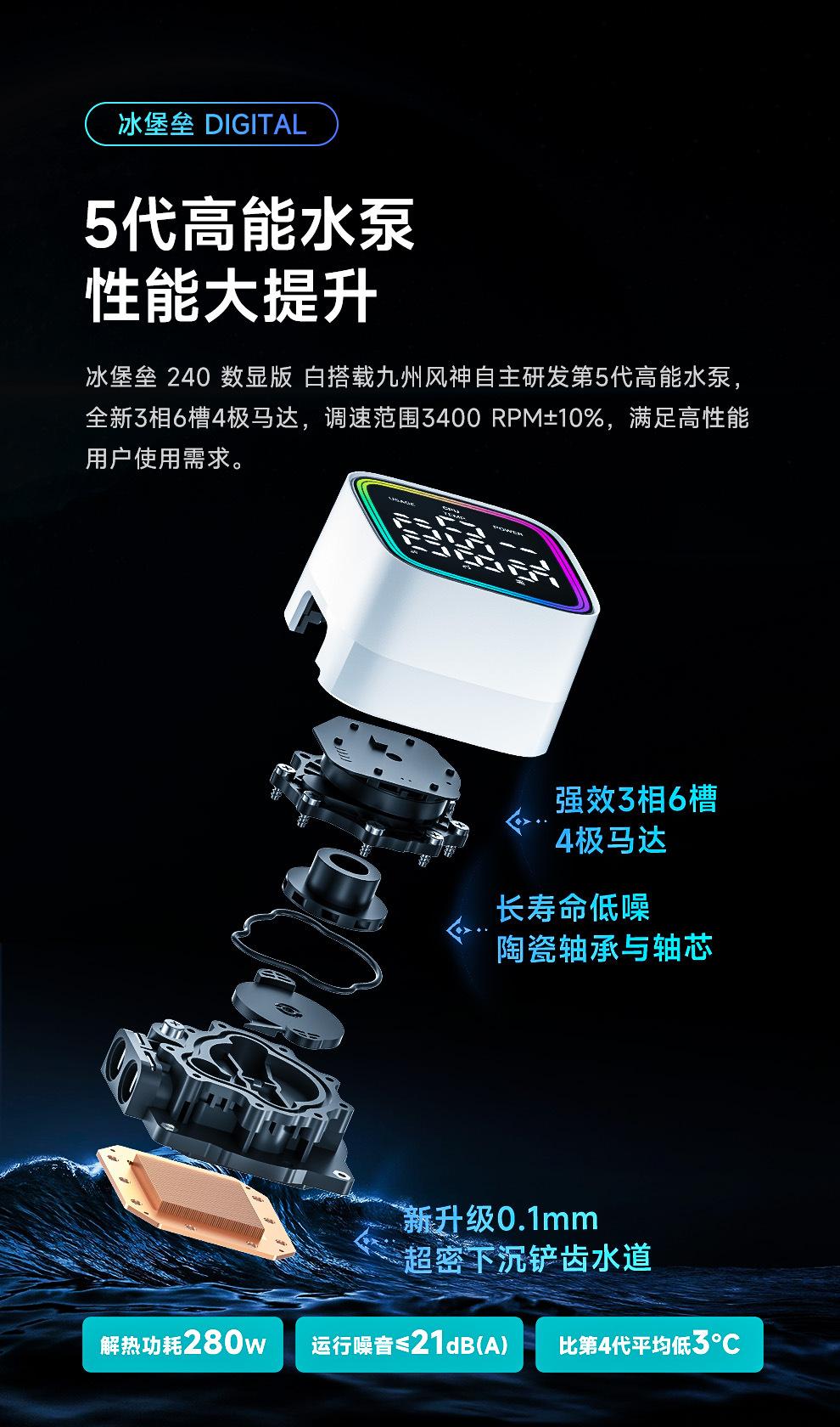 Radiador de CPU para computadora de escritorio Kyushu Fengshen LD240, versión con pantalla digital blanca, refrigerado por agua, luz ARGB, control de temperatura PWM