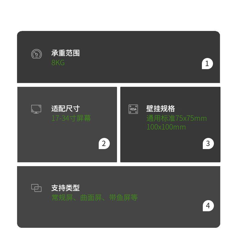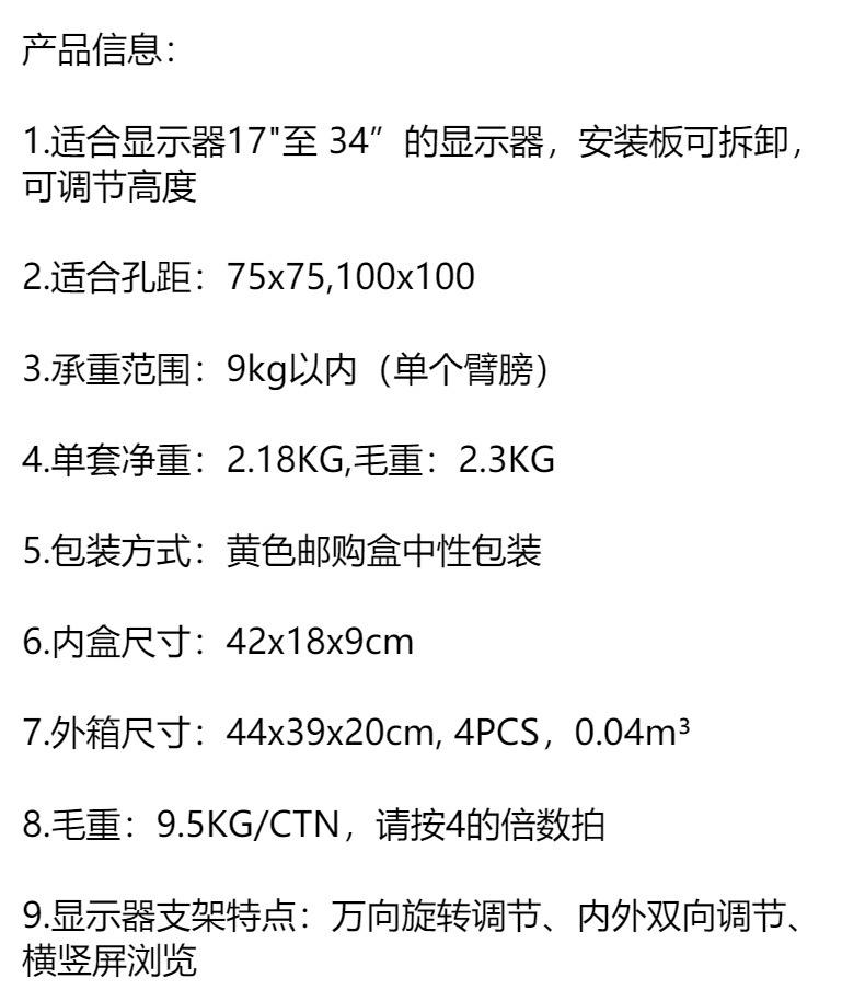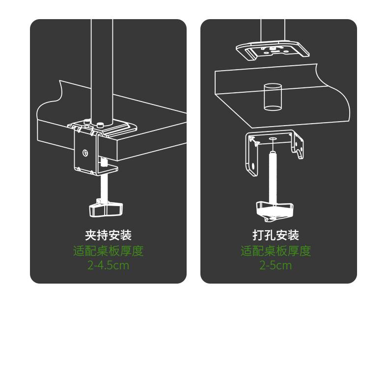Soporte de fijación transfronterizo en stock para agujero redondo de doble propósito, pantalla única, rotación 360, escritorio de elevación libre, montaje en pared