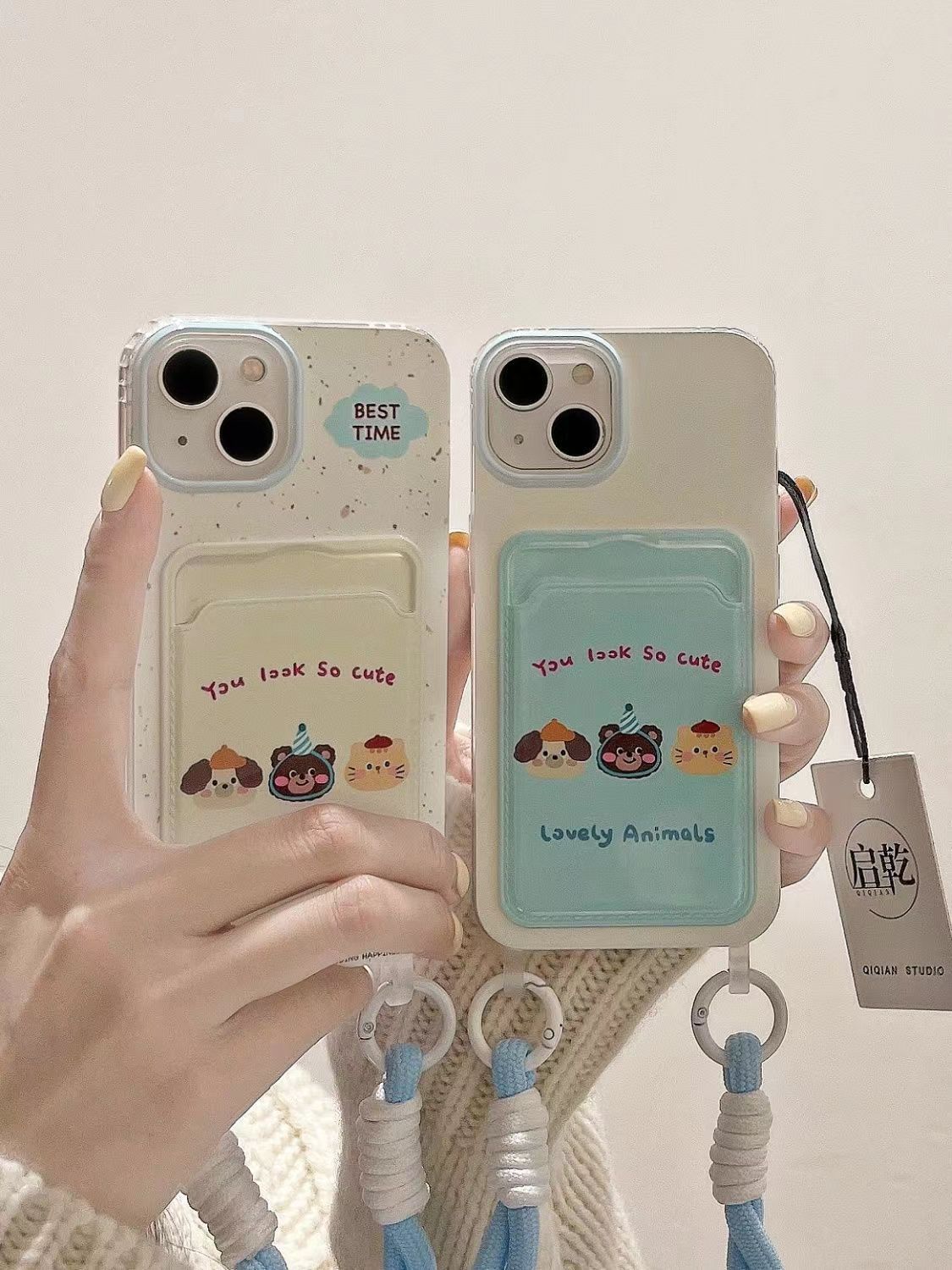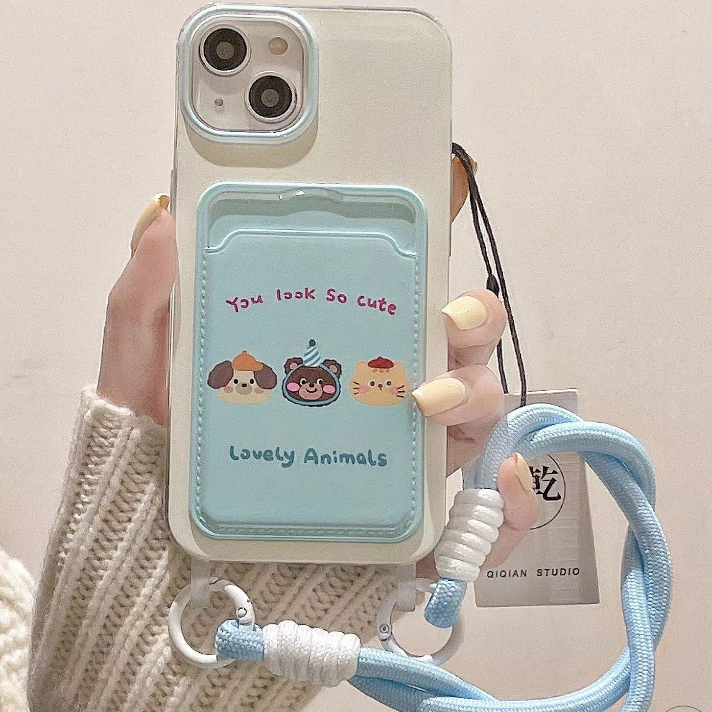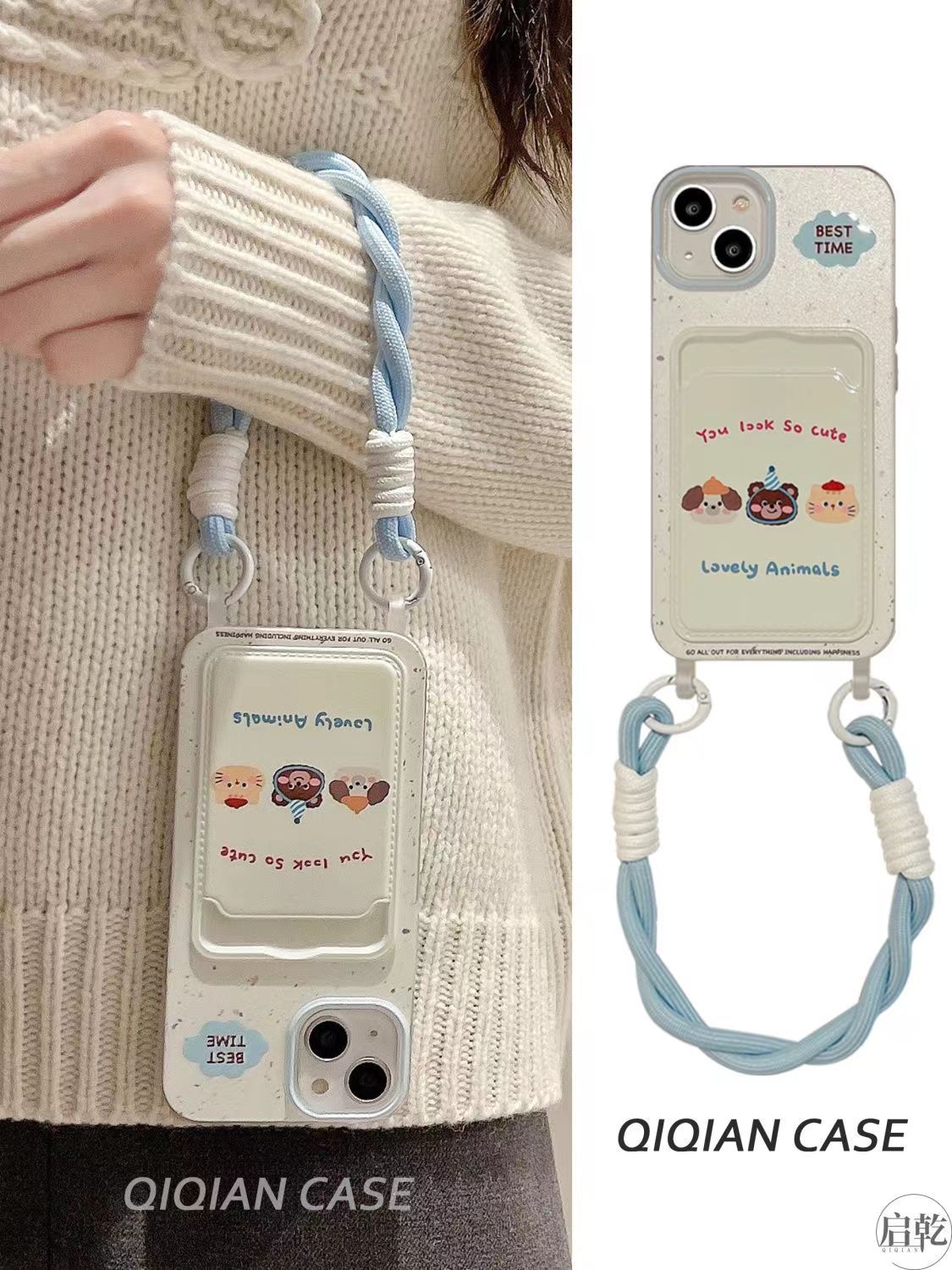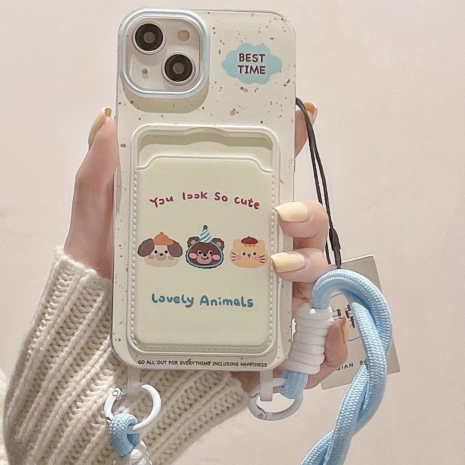 Funda con cordón para tarjetas Three Bear para iPhone 14, Pro Max, Apple 13, 12, Niche 11, XS, creativa