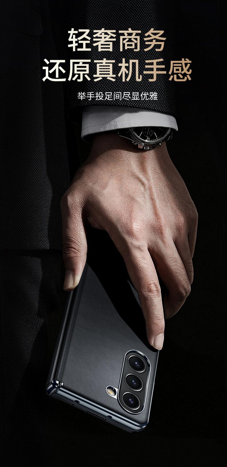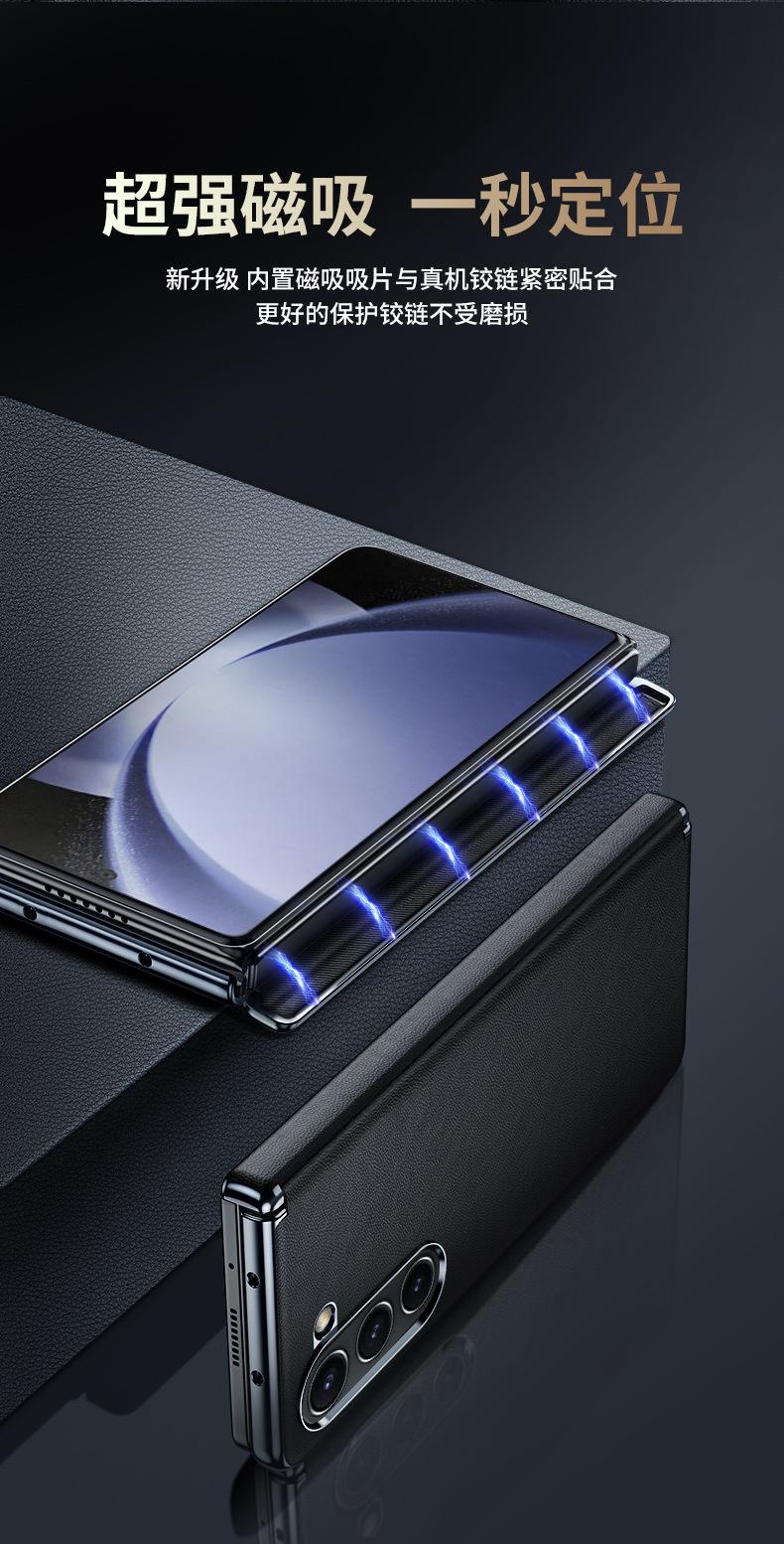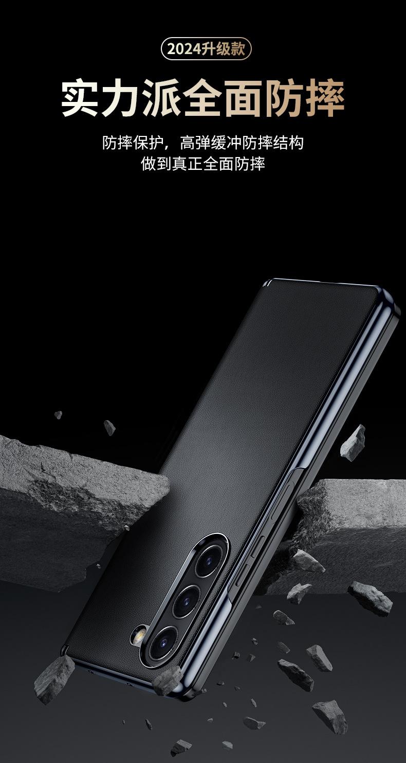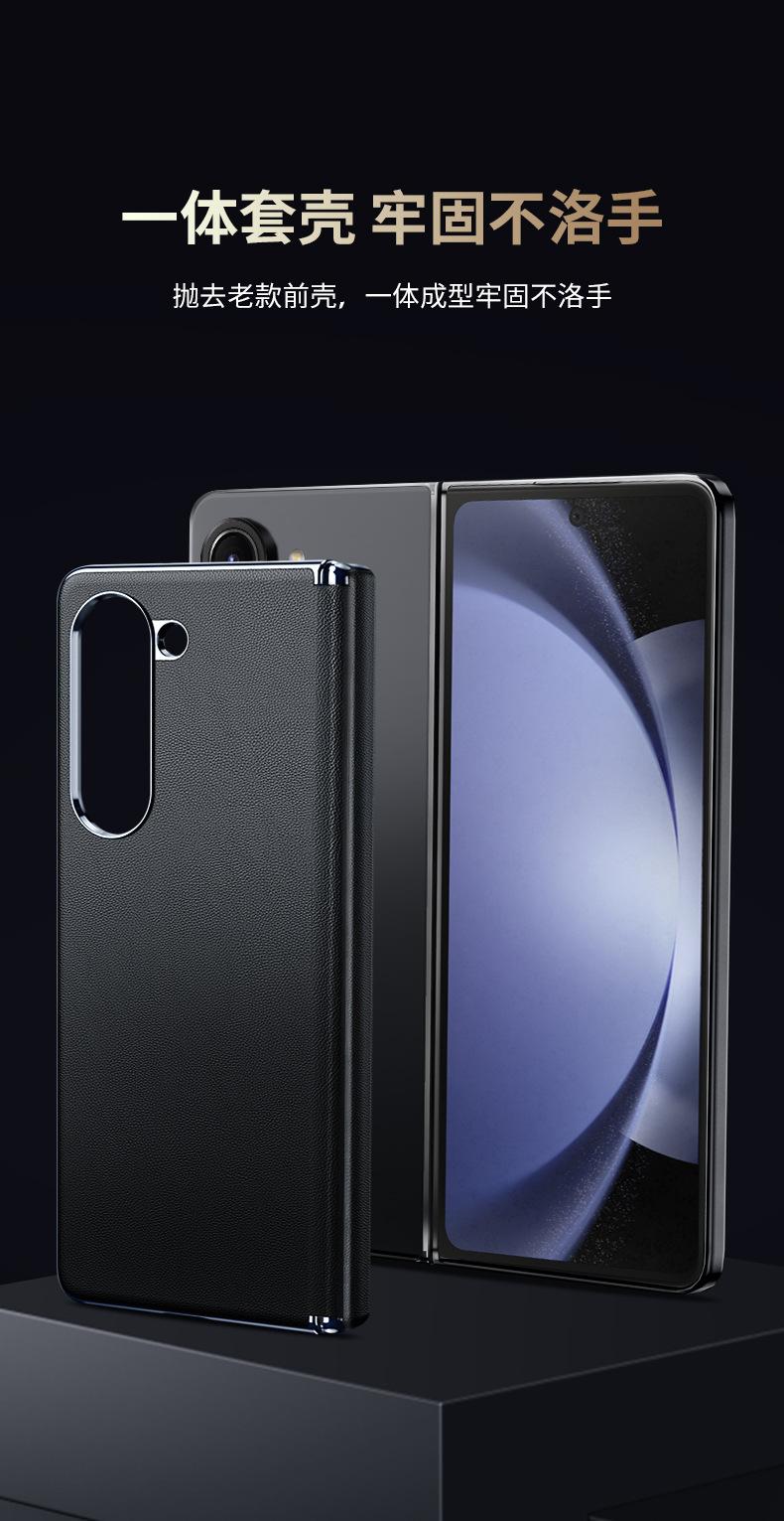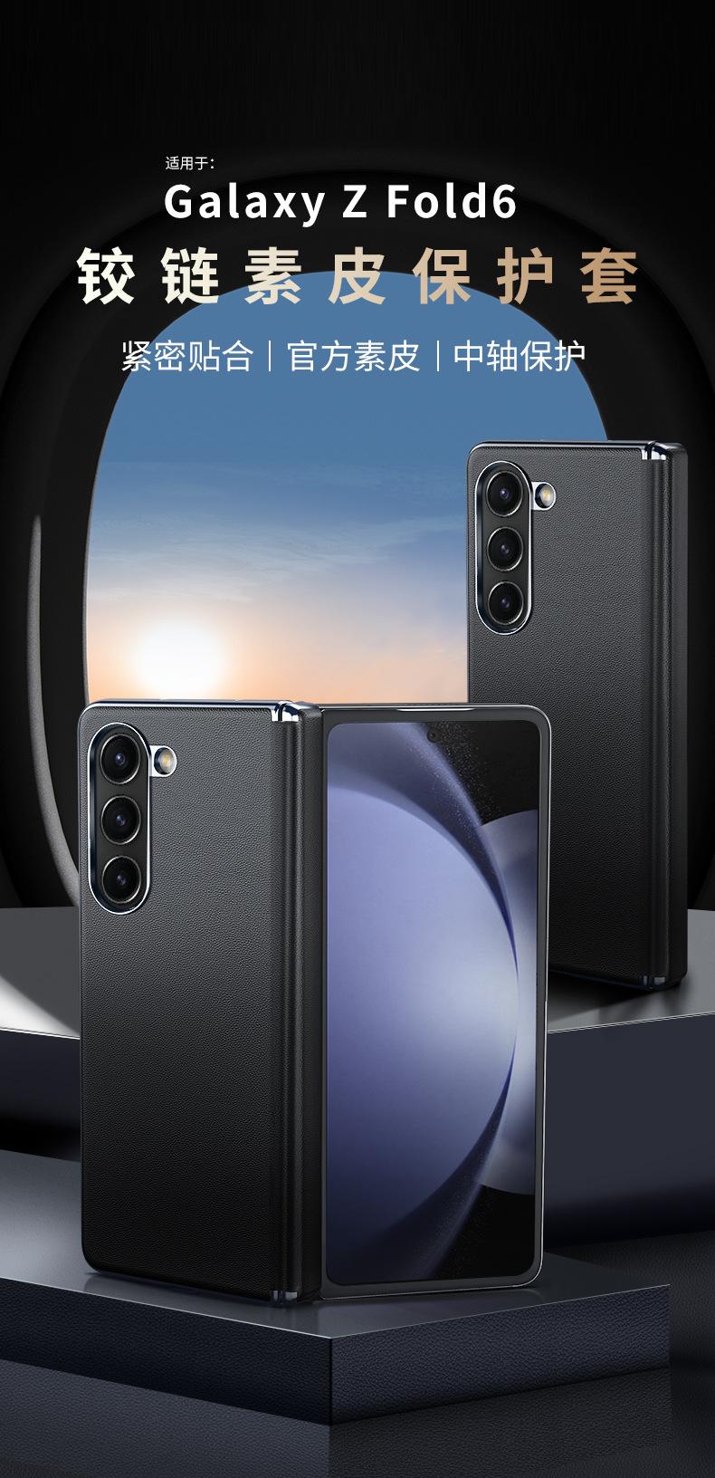 Funda de cuero lisa para Samsung Galaxy Fold6, funda protectora con eje central chapado y pantalla plegable para Fold5