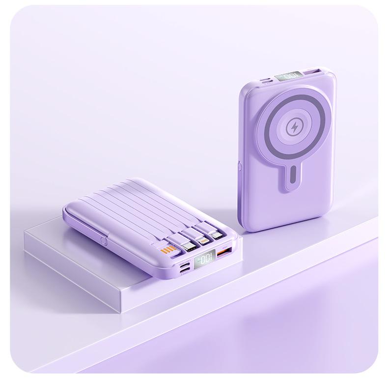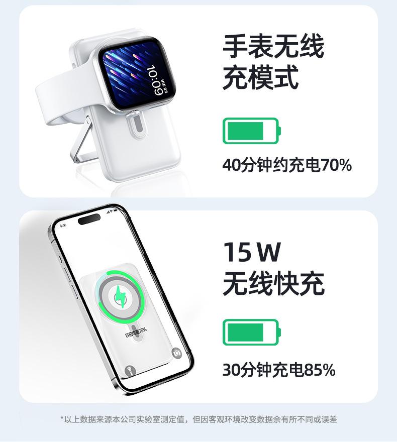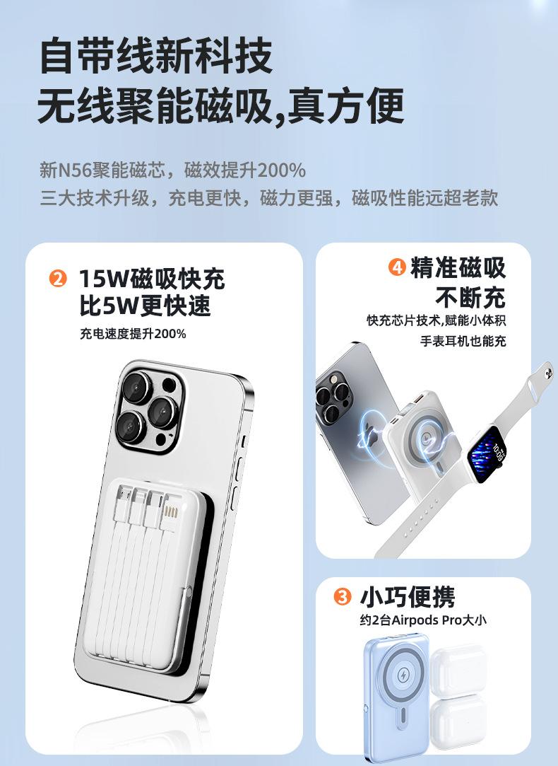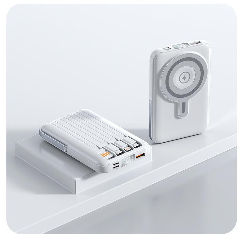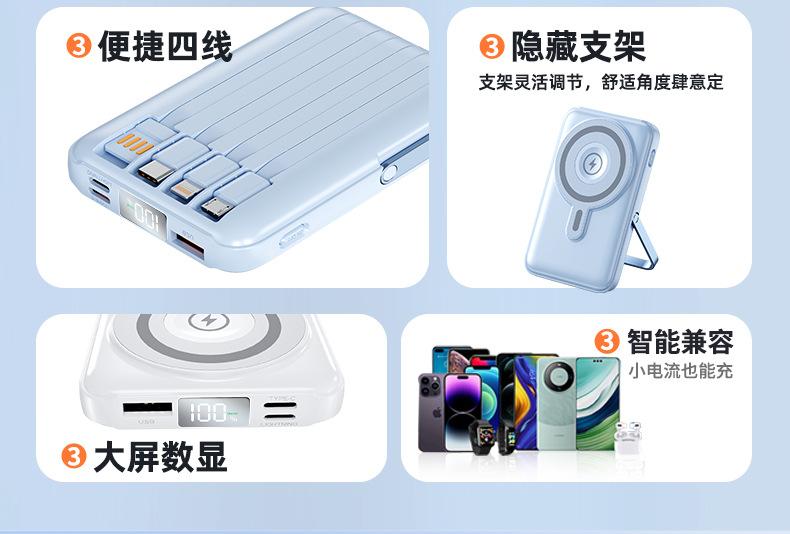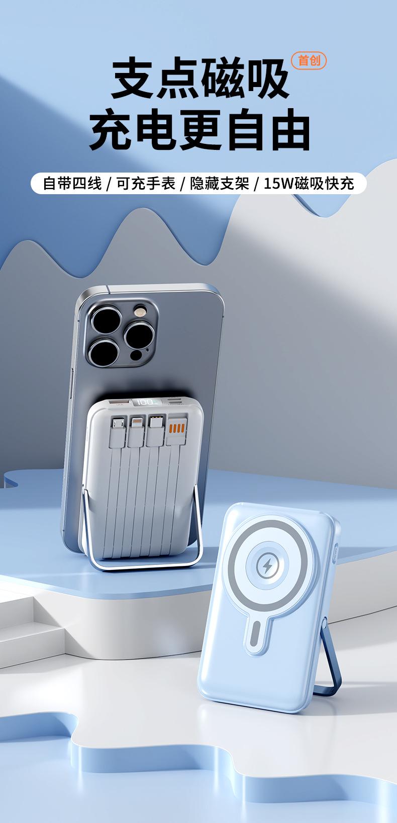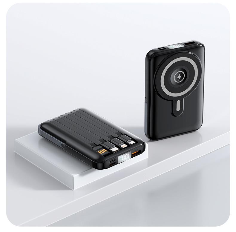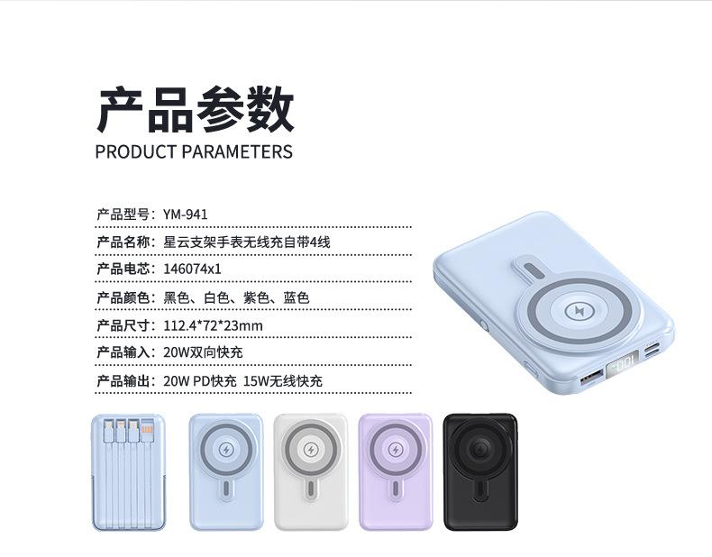 Soporte para carga de reloj banco de energía carga inalámbrica magnética banco de energía 15W viene con banco de energía móvil de cuatro cables