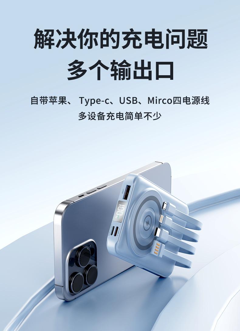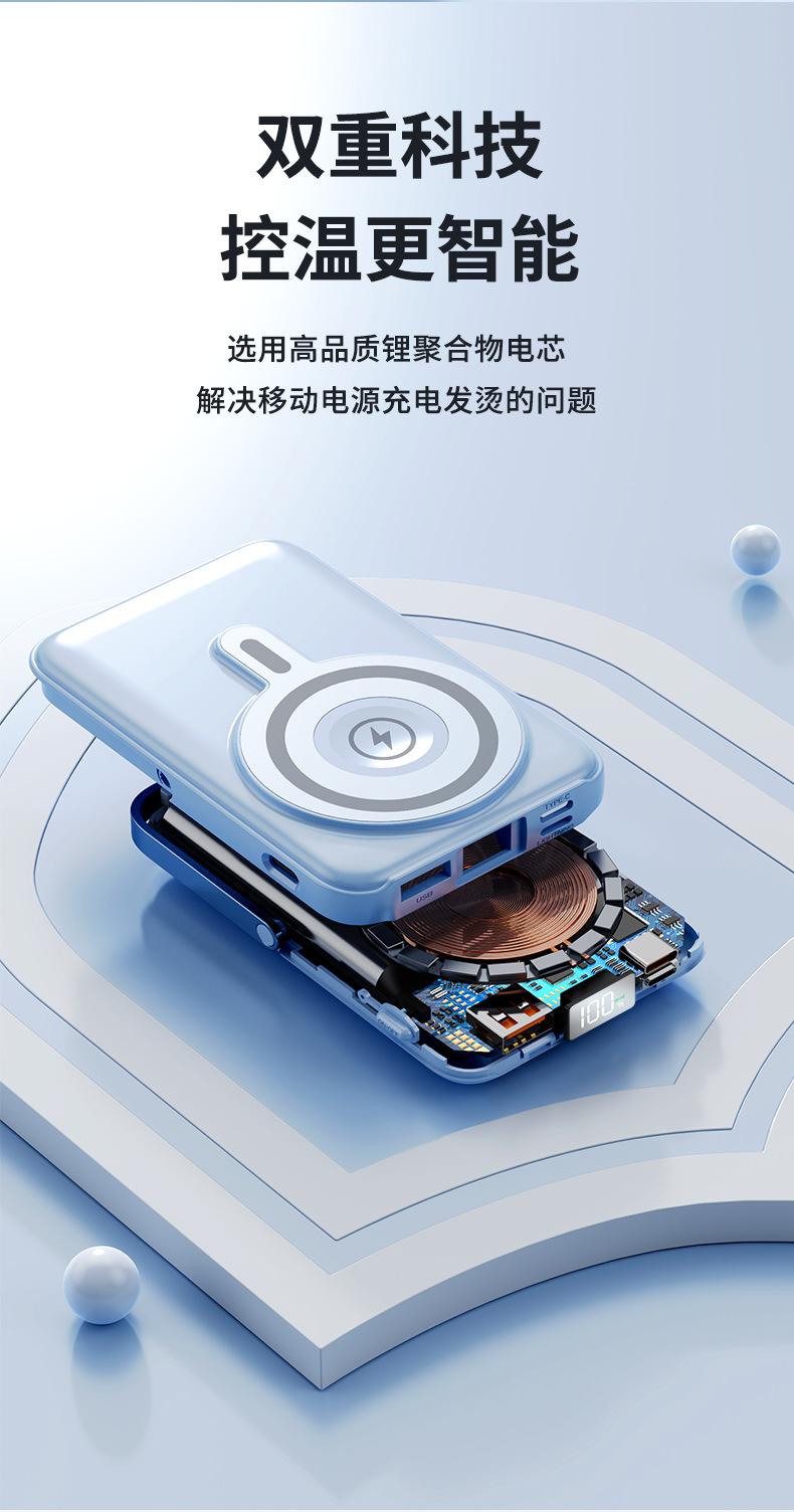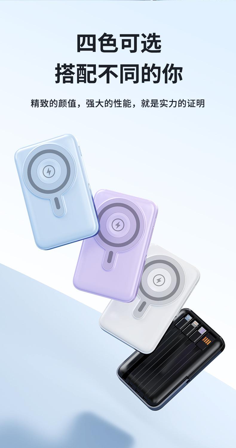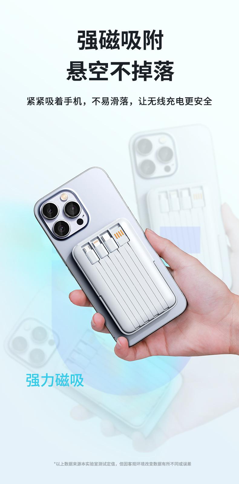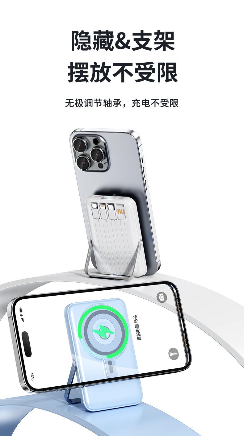 Soporte para carga de reloj banco de energía carga inalámbrica magnética banco de energía 15W viene con banco de energía móvil de cuatro cables
