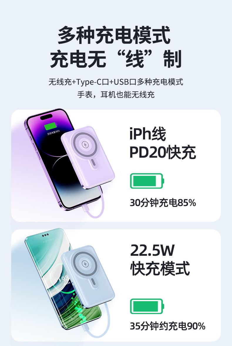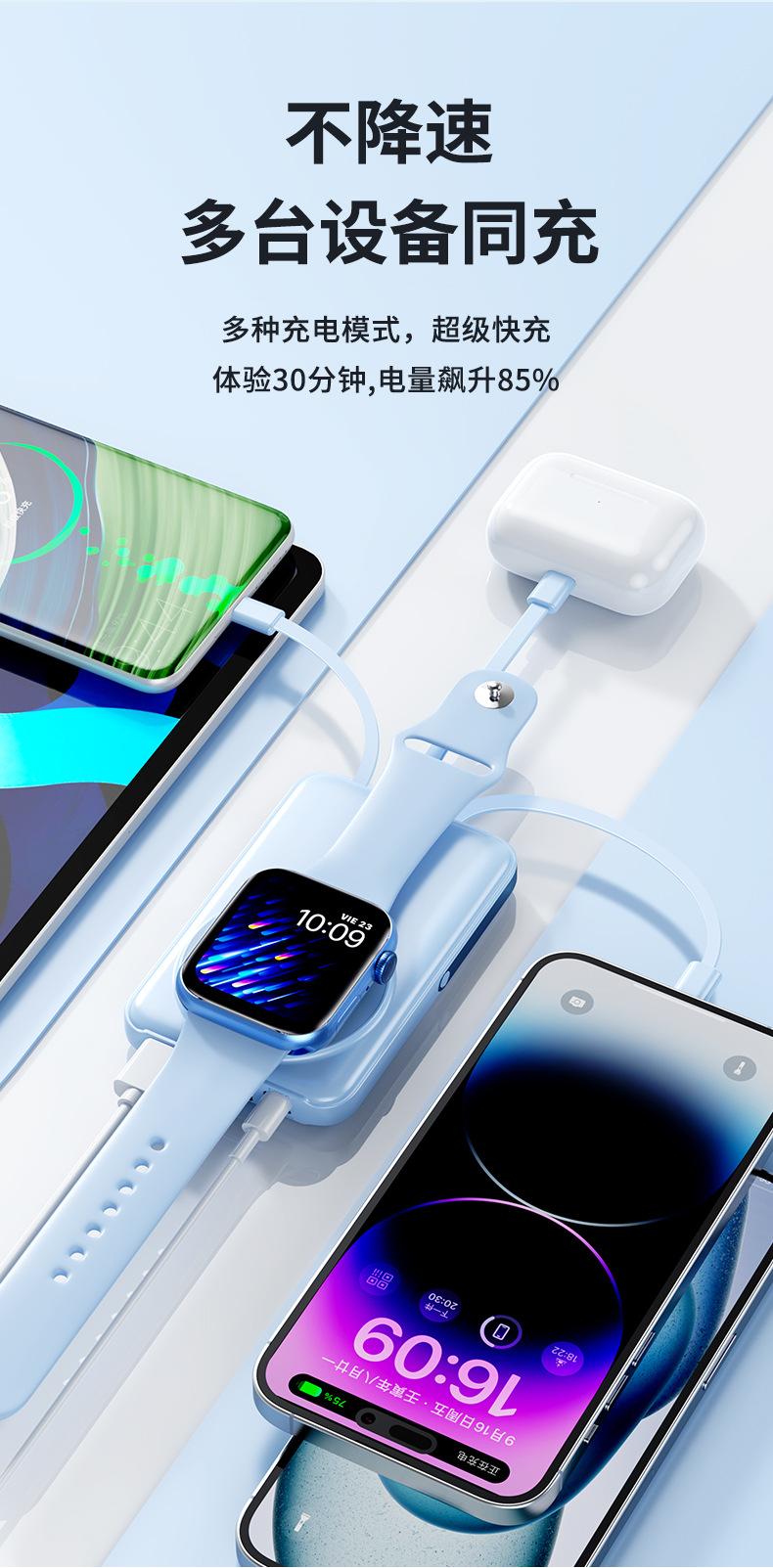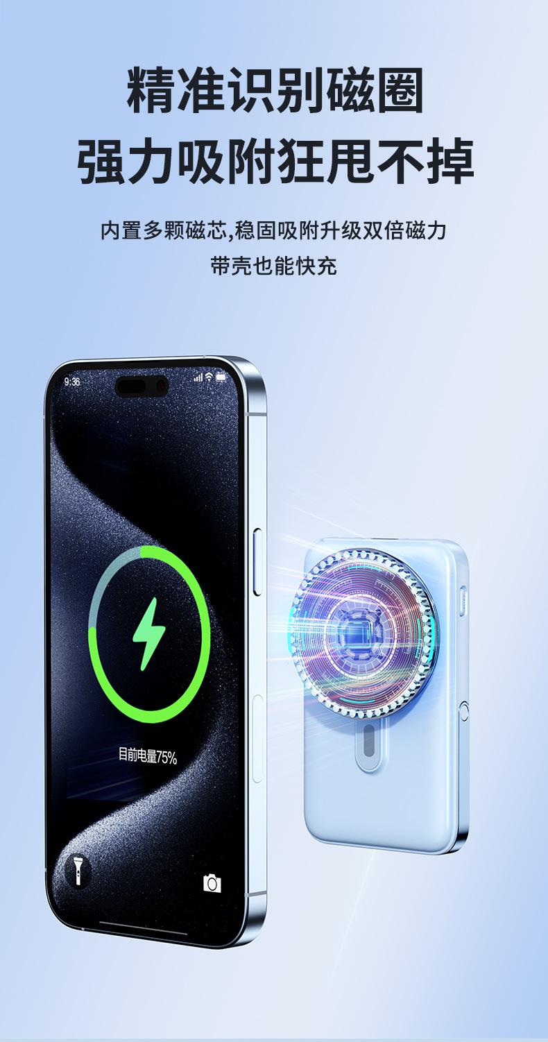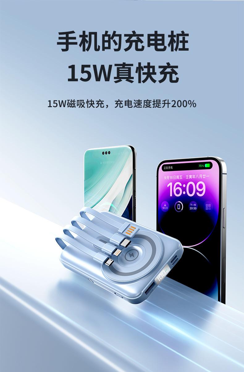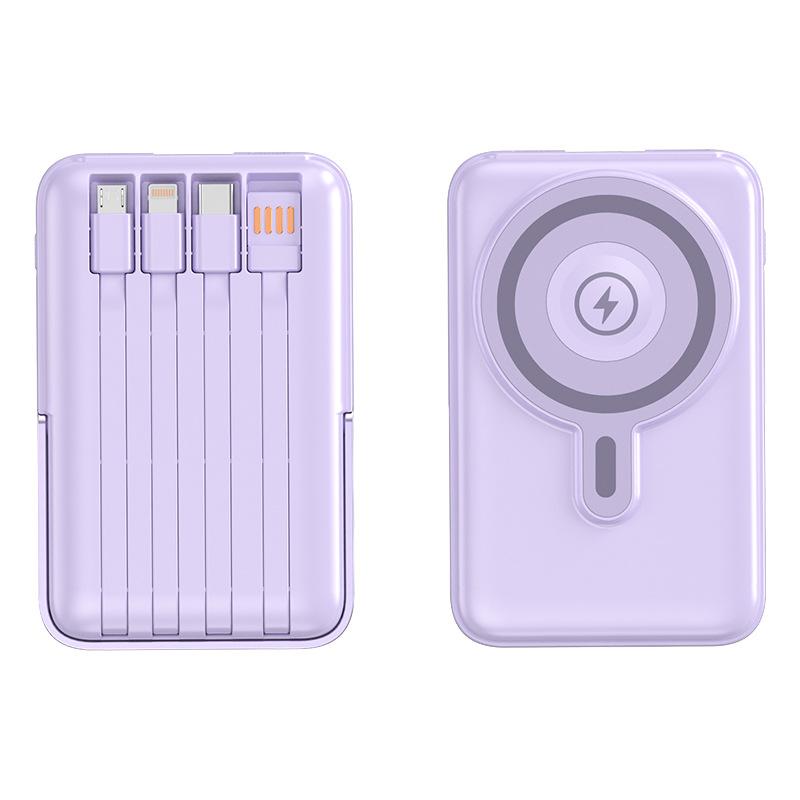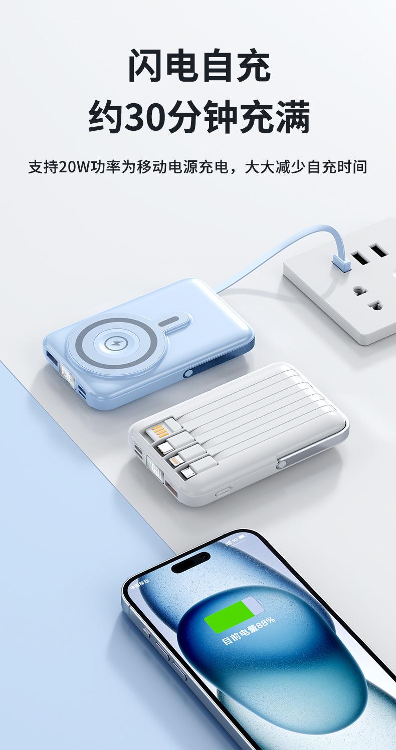 Soporte para carga de reloj banco de energía carga inalámbrica magnética banco de energía 15W viene con banco de energía móvil de cuatro cables
