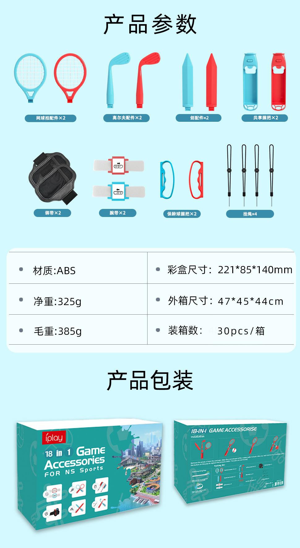 Iplay Ventas Directas de Fábrica Set de Accesorios Deportivos Somatosensoriales 18 en 1 para Switch Set de Juego Deportivo para Switch