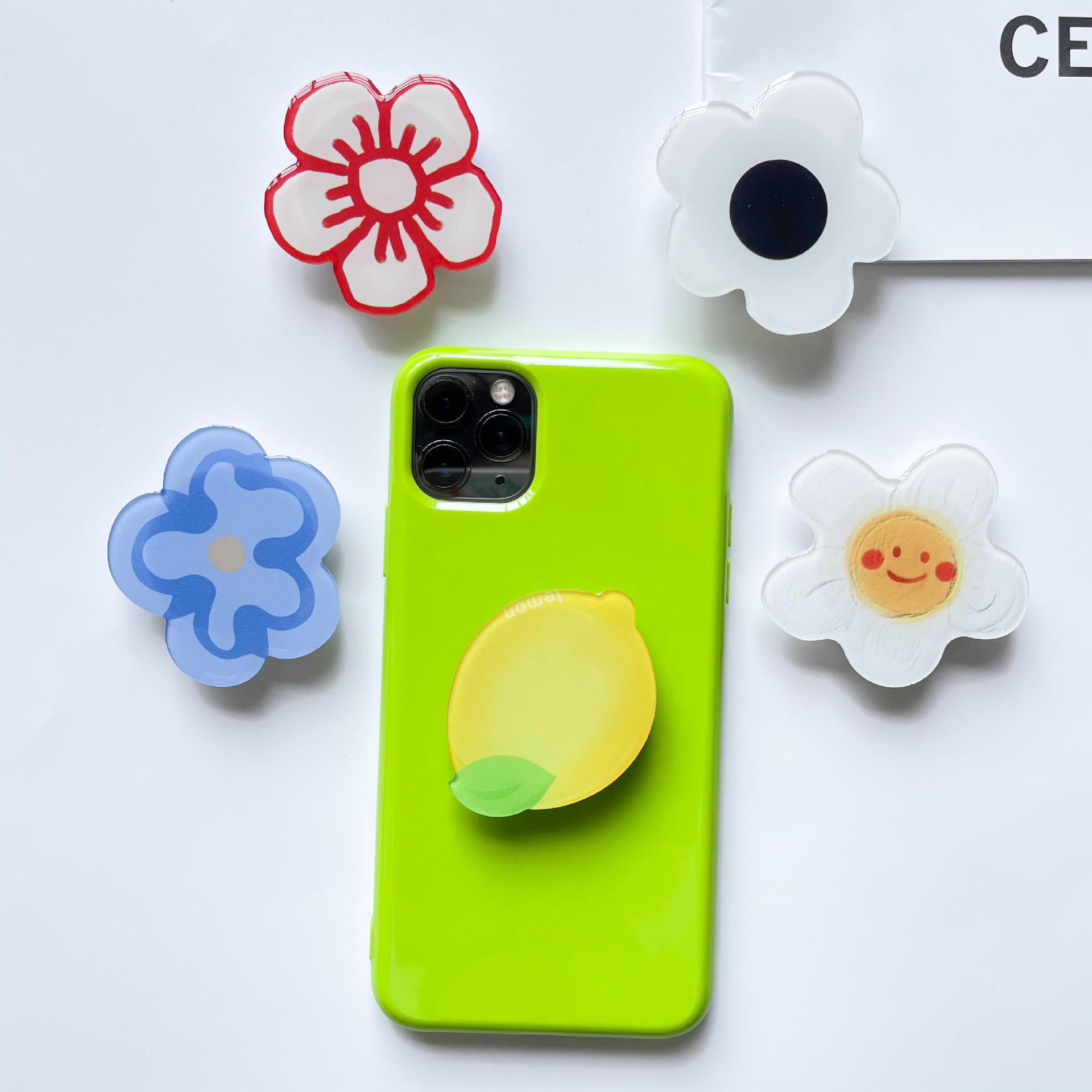 Soporte telescópico para teléfono móvil con forma de flor creativa de limón, acrílico, con pegamento en forma de gota, para airbag, soporte de escritorio