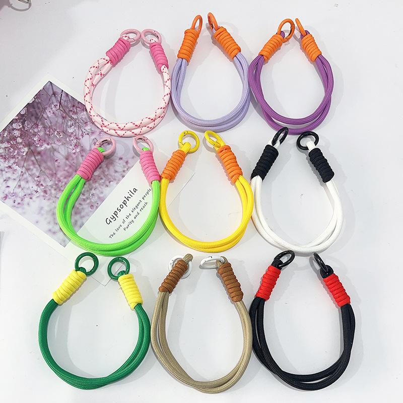Llavero con cordón para teléfono móvil a juego de colores, creativo, corto, tejido a mano, para funda de teléfono móvil, llavero, bolsa, cuerda para colgar