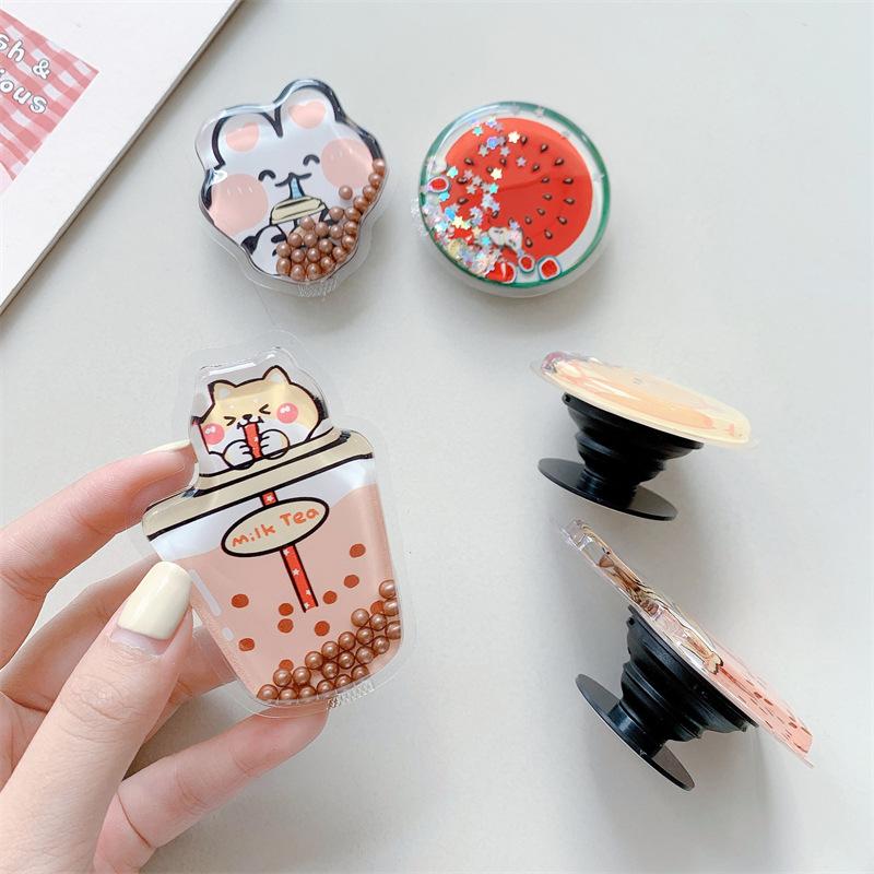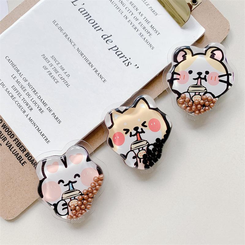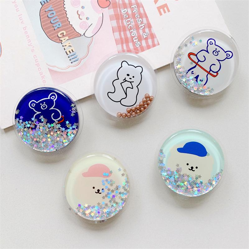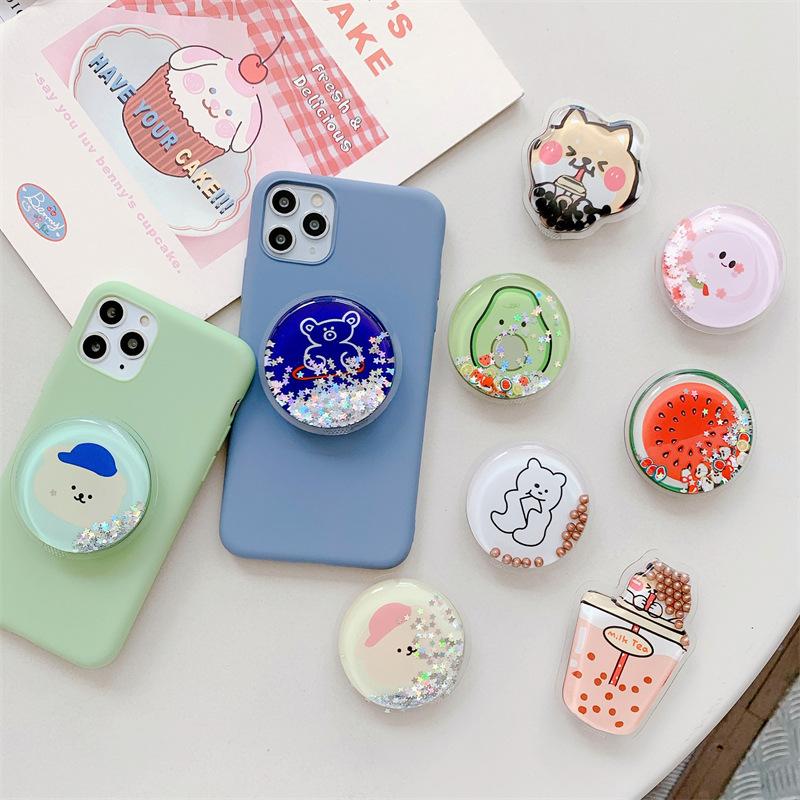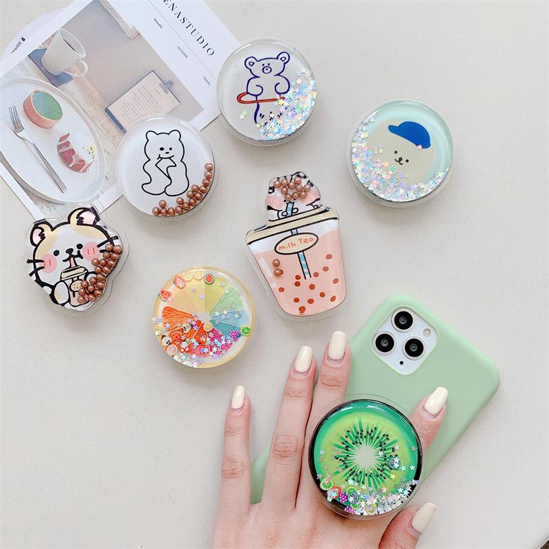 Bolsa de aceite arena movediza oso de dibujos animados soporte de airbag para teléfono móvil perezoso retráctil soporte de escritorio pasta soporte para funda de teléfono móvil