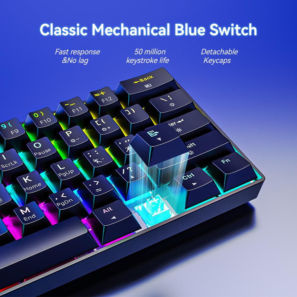 Ventajas: Pequeño y portátil, compacto, con teclas de combinación multifunción, el eje azul ofrece un sonido nítido, una lectura clara y una mejor experiencia de escritura. Su excelente relación calidad-precio y su diseño personalizado lo convierten en la opción ideal para usuarios de oficina, gaming y oficinas móviles.
