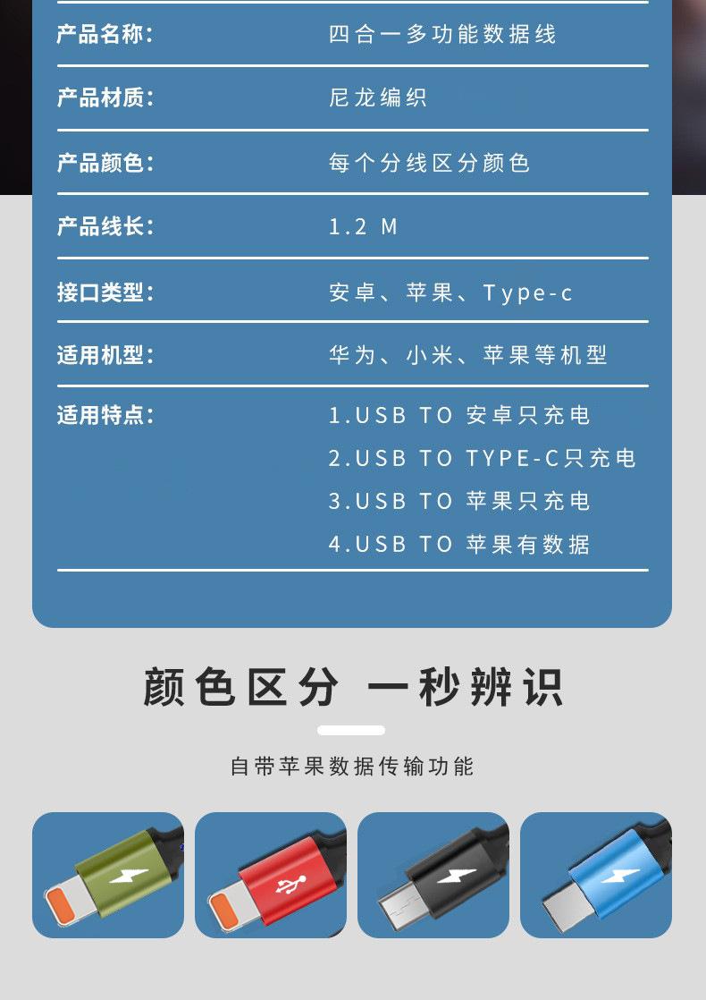 【Nombre del producto】: Cable de datos multifunción cuatro en uno
