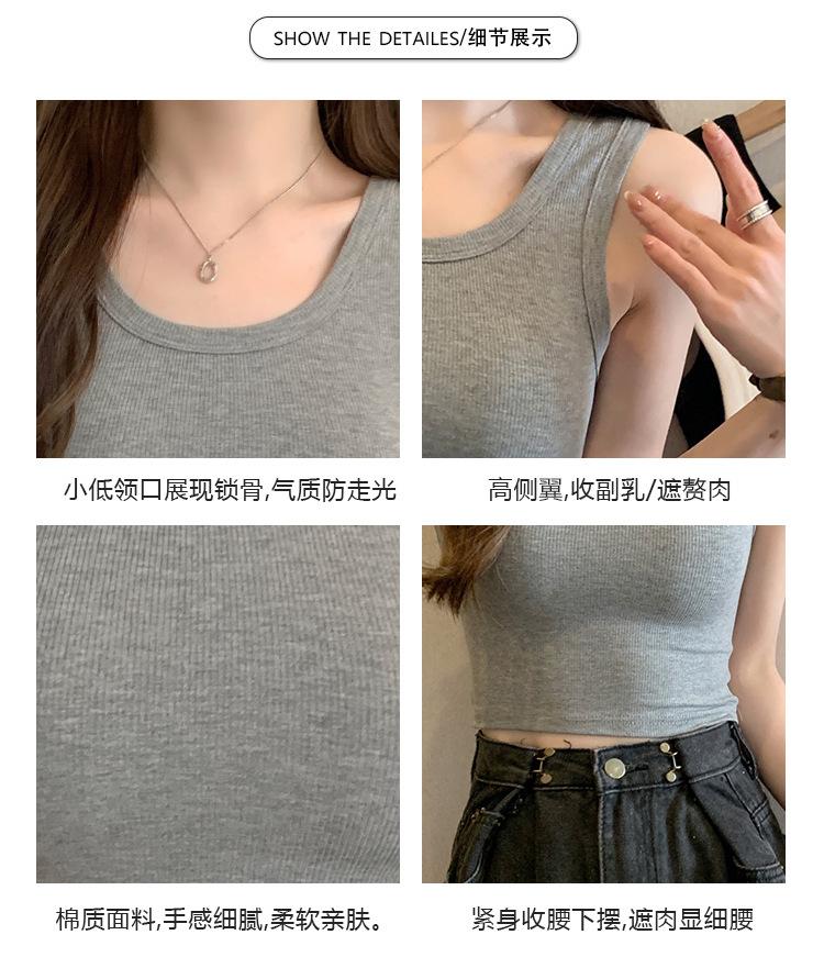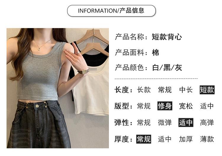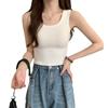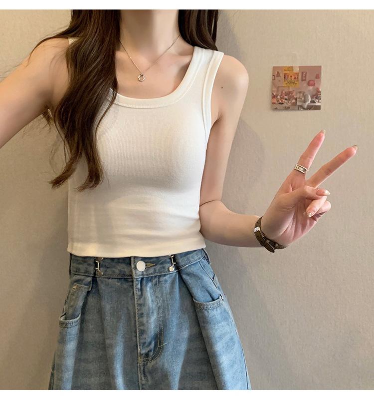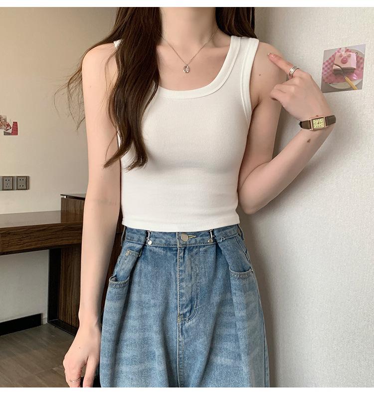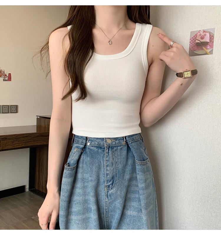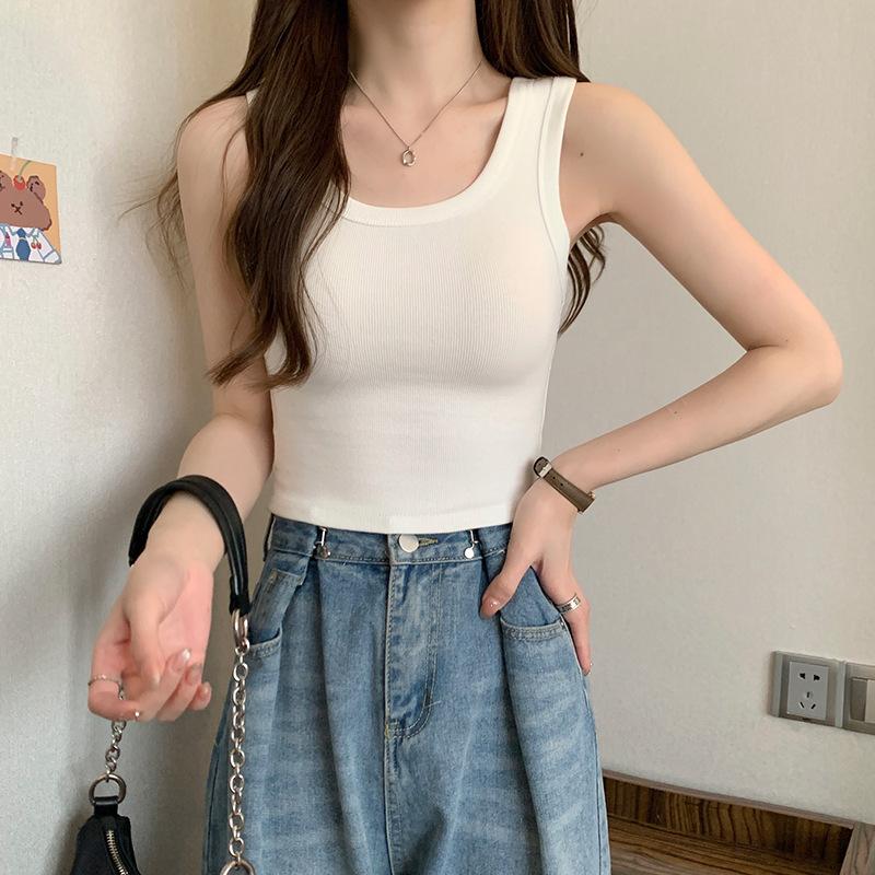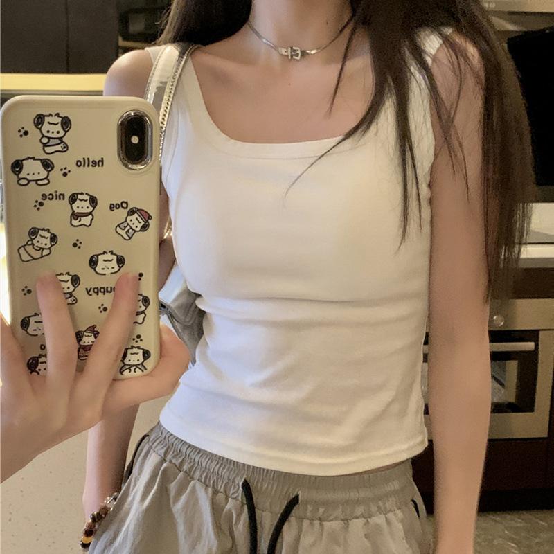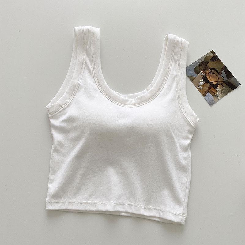 Algodón Puro Blanco Chaleco Pequeño con Almohadilla en el Pecho Top de Moda Estilo Hong Kong para Mujer Ajustado sin Mangas Interior Tipo Sling a la Moda Combinable