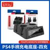 2. Coloque el control de PS4 boca abajo en el producto e inserte su interfaz MICRO en la ranura de carga del producto correctamente para cargarlo. También puede cargar dos controles de PS4 simultáneamente. La ranura de carga del producto muestra el estado de carga mediante la luz indicadora del mango. Ver la luz de carga en el mango indica que el producto está cargando la batería.