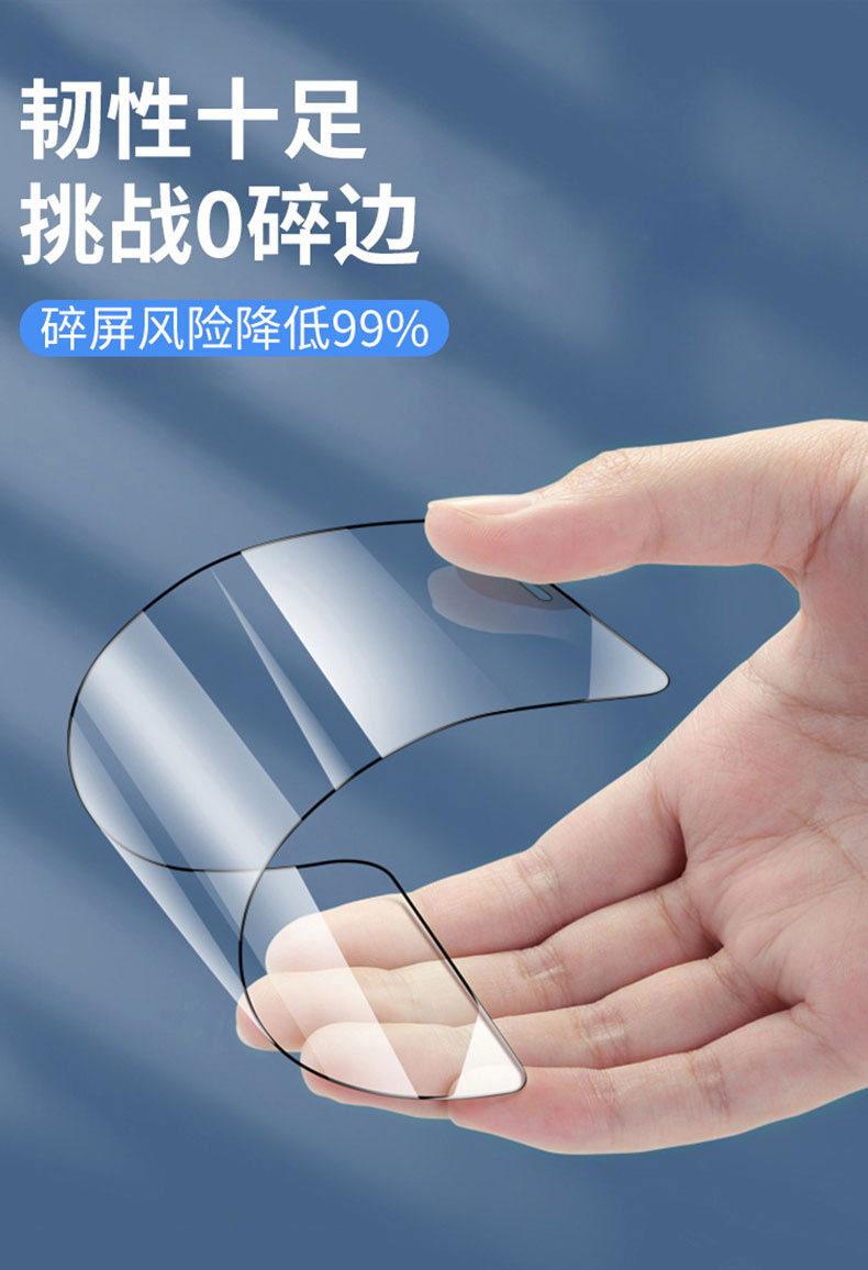 Consejos: Este producto es una película templada antiestática de alto aluminio 9D, que utiliza vidrio templado de alto aluminio 0.33 con borde de arco grande 2.5D, con placa inferior (Placas base personalizadas están disponibles), pegamento AB antiestático, alta transmisión de luz.