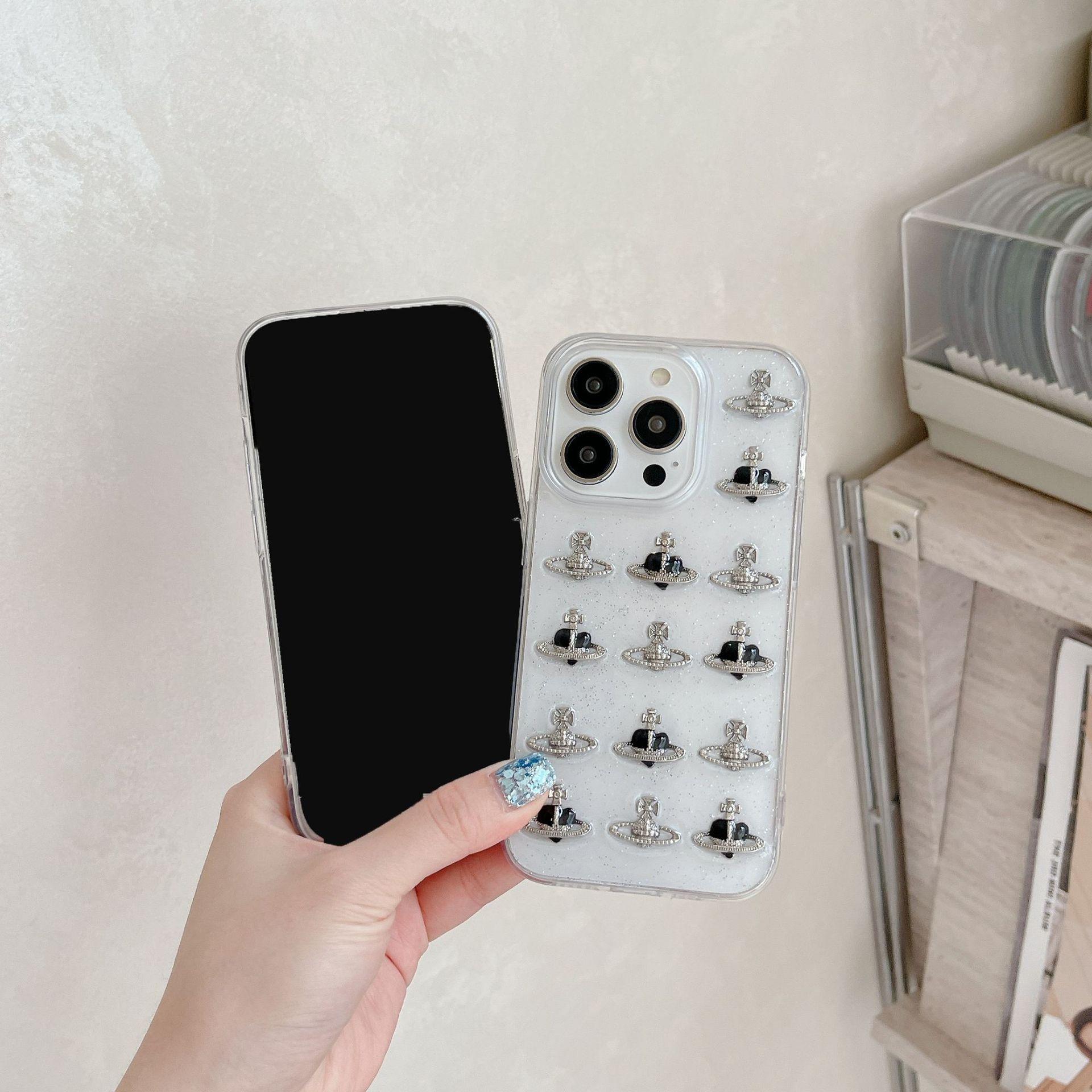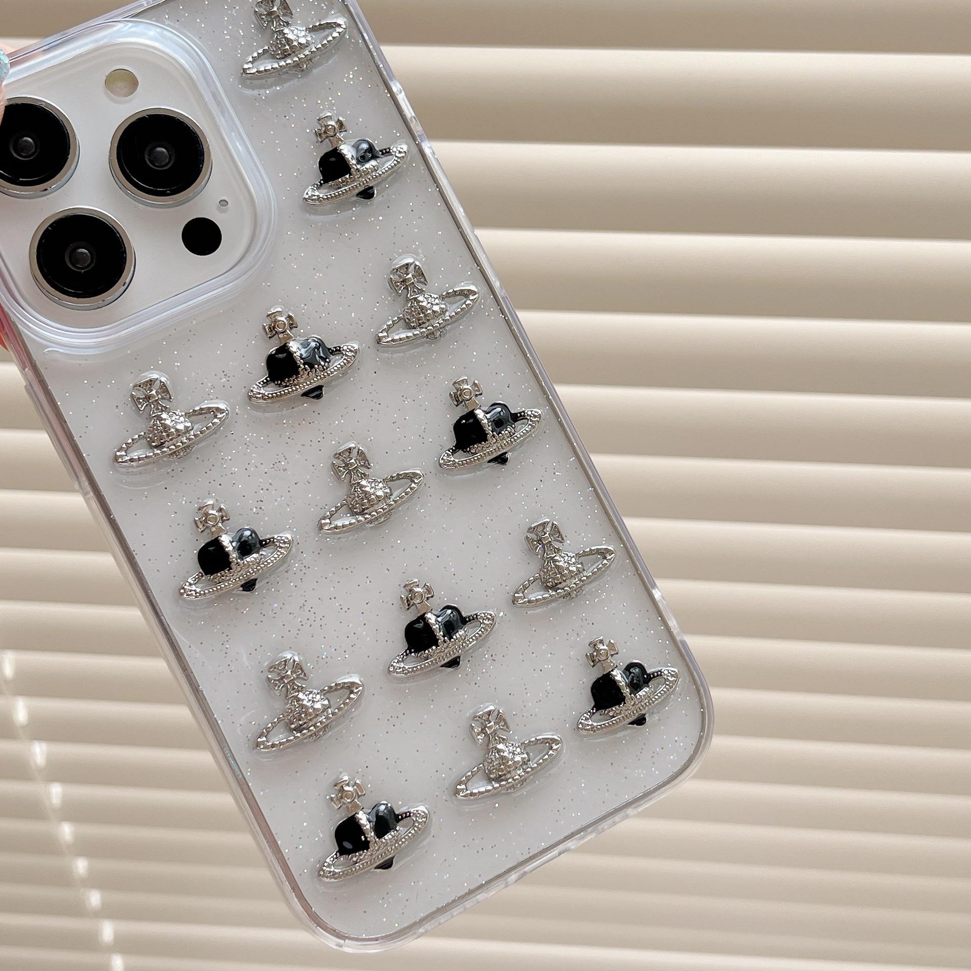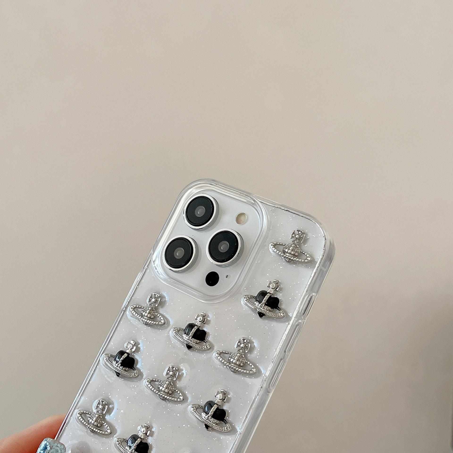 Funda para iPhone 15 con pegamento y purpurina, estéreo Love Planet 13/12, funda protectora creativa 11
