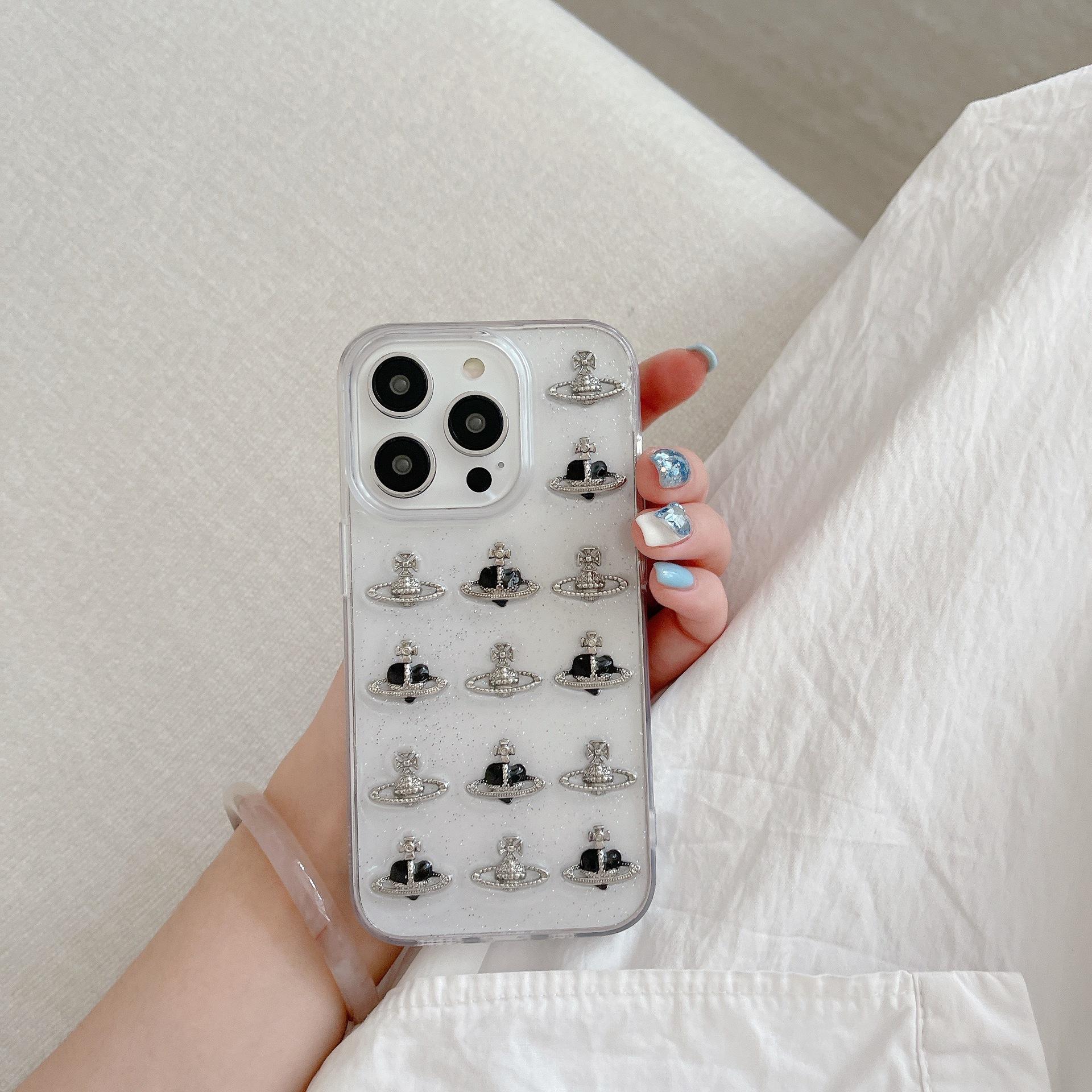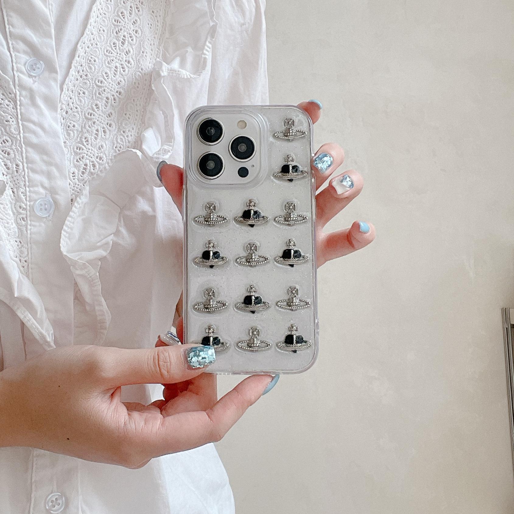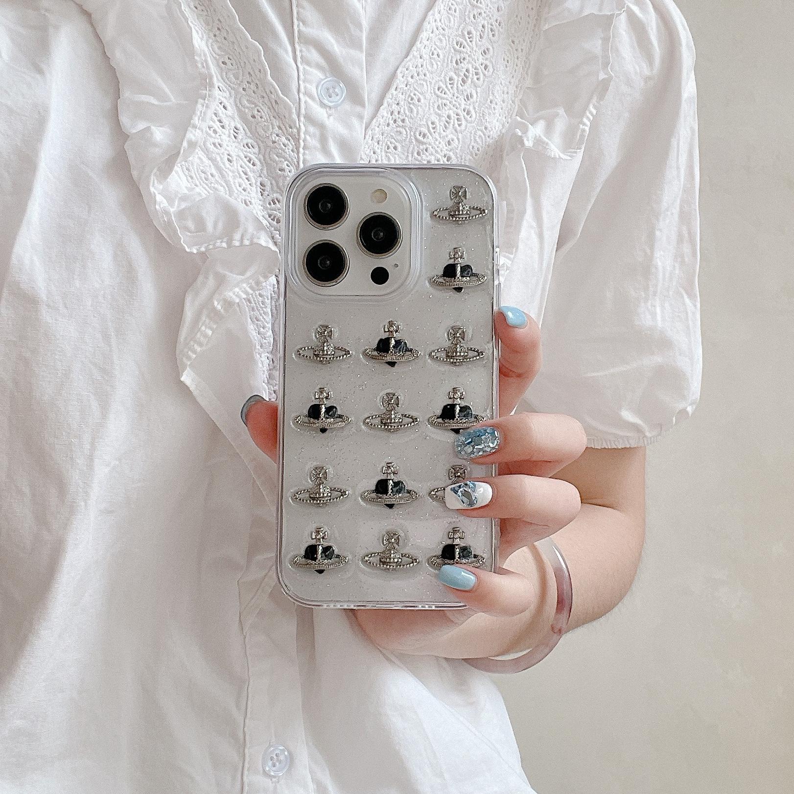 Funda para iPhone 15 con pegamento y purpurina, estéreo Love Planet 13/12, funda protectora creativa 11