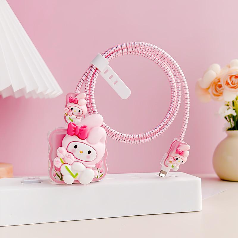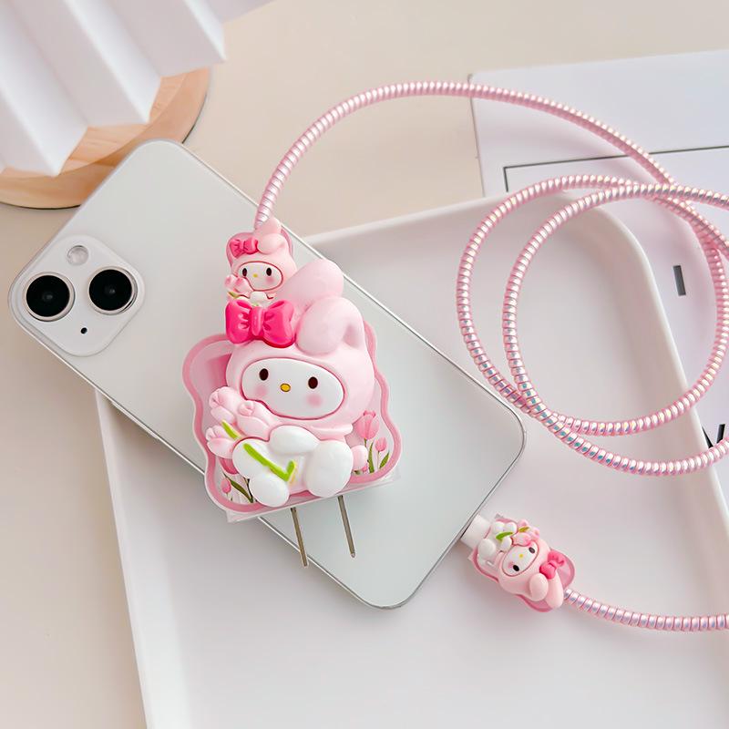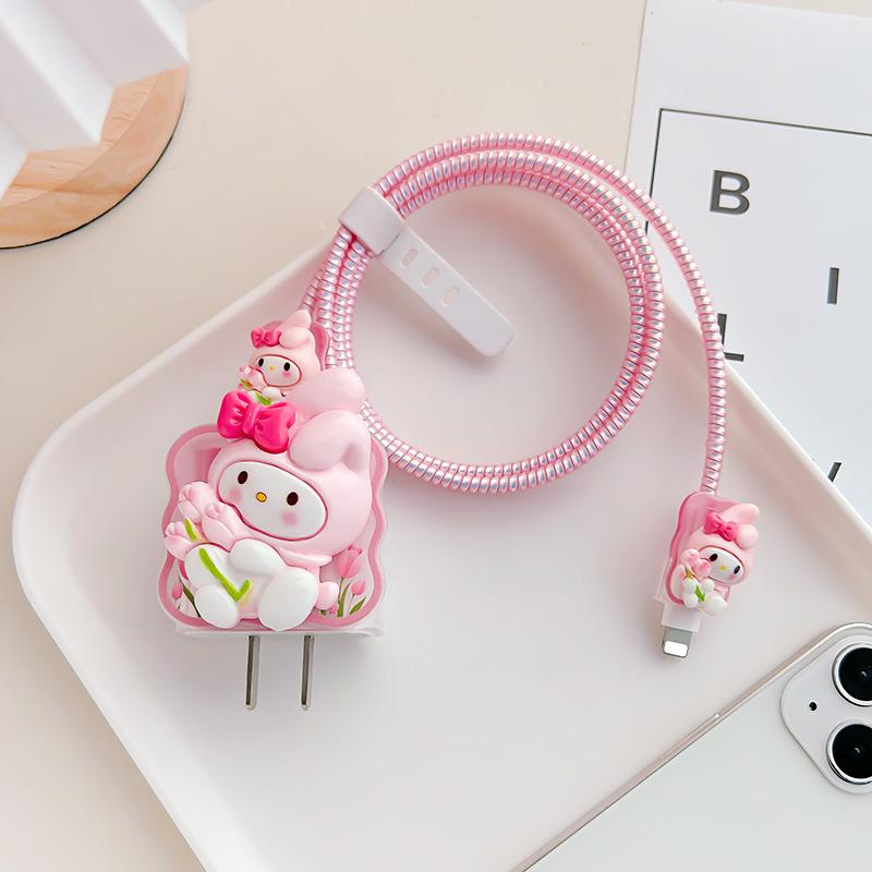 Modelo de Ola Adecuado para Cubierta Protectora de Cargador Apple Carga Rápida 20W Cable de Datos Mordedor de Cable Tulipán Melodía