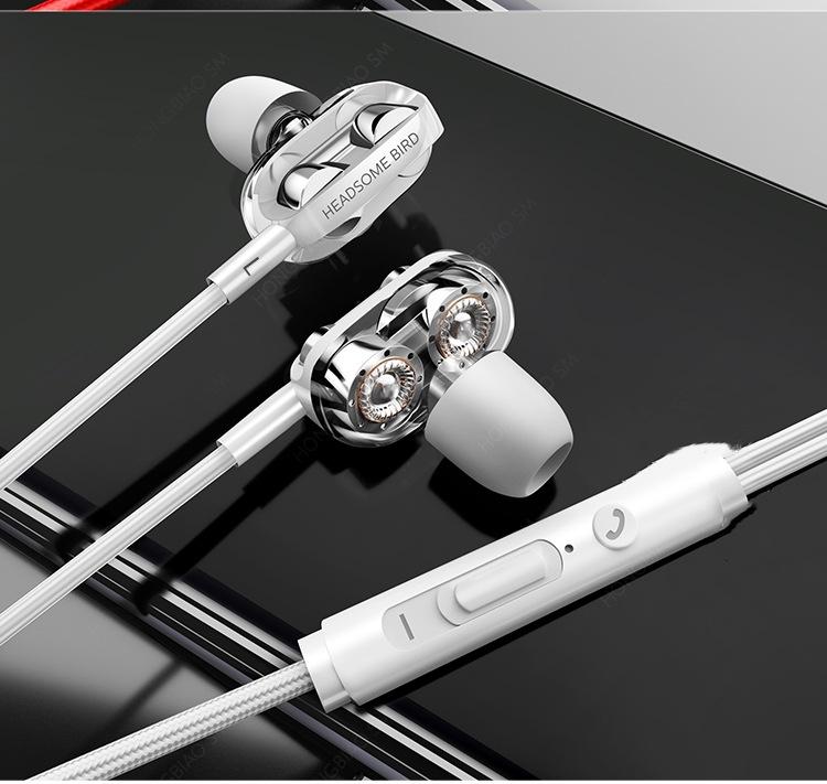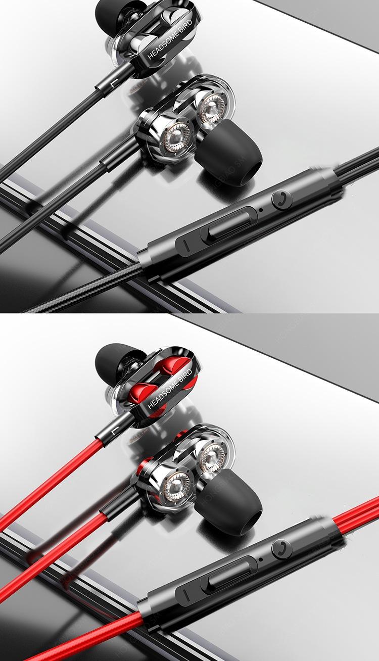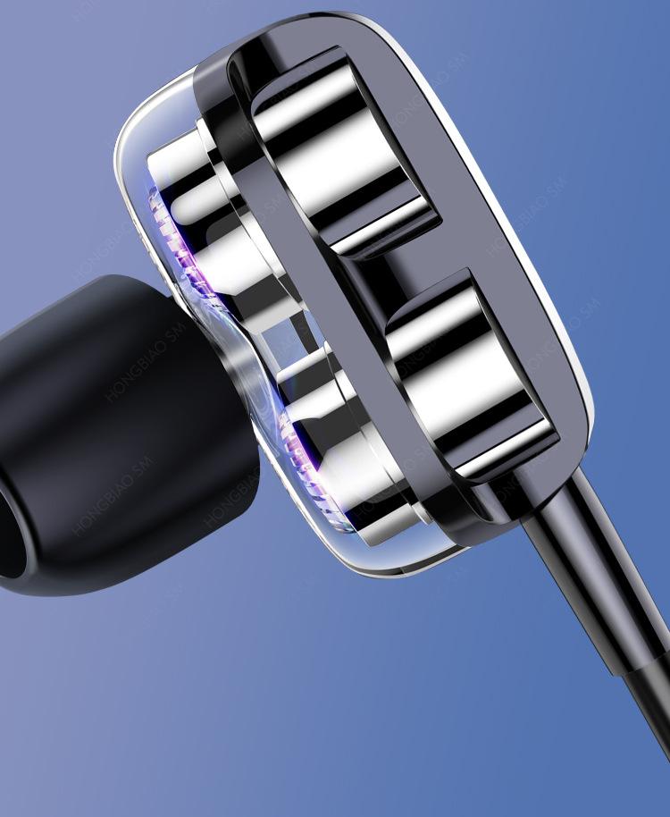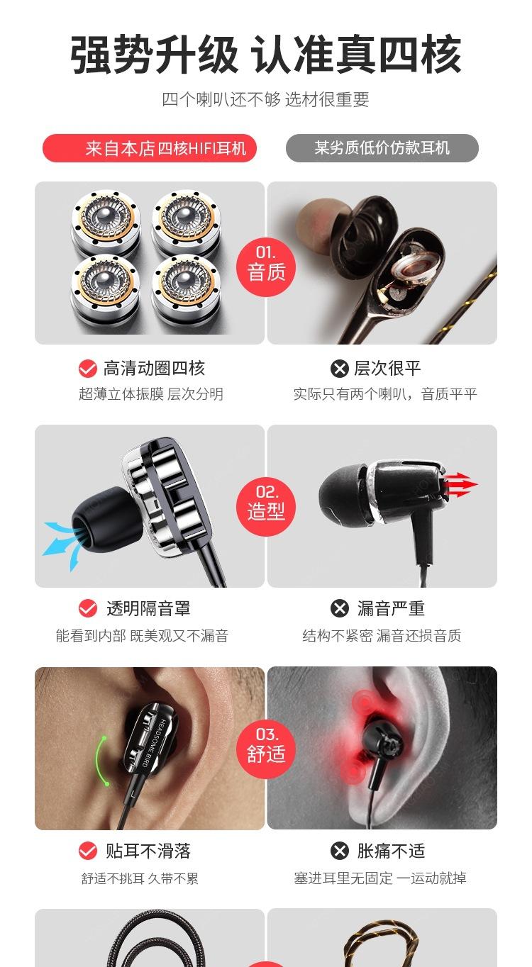 Audífonos para Subwoofer de Cuatro Núcleos Doble Anillo Juego de Pollo K-Song Audífonos In-Ear Subwoofer con Control de Cable y Micrófono