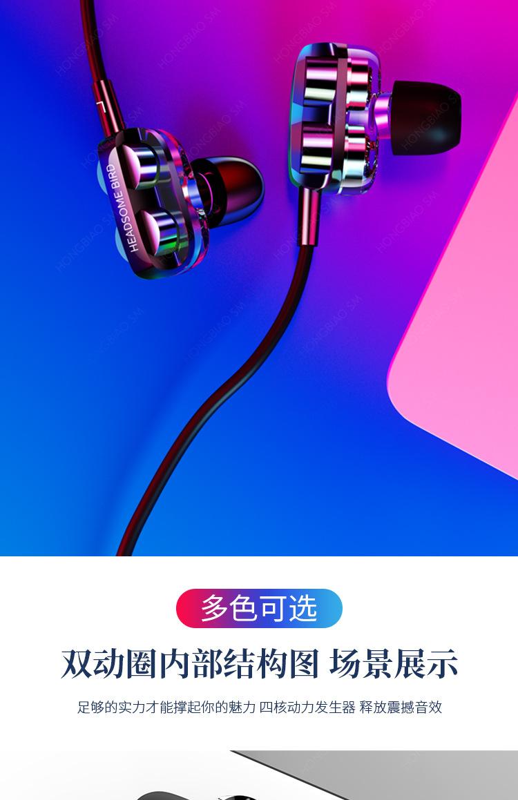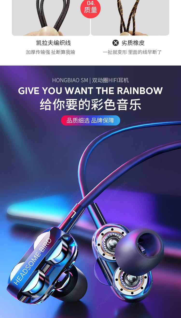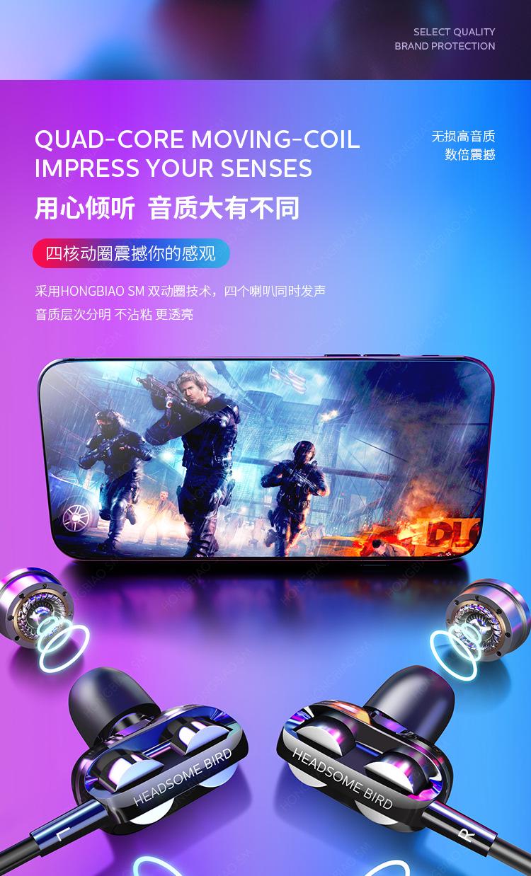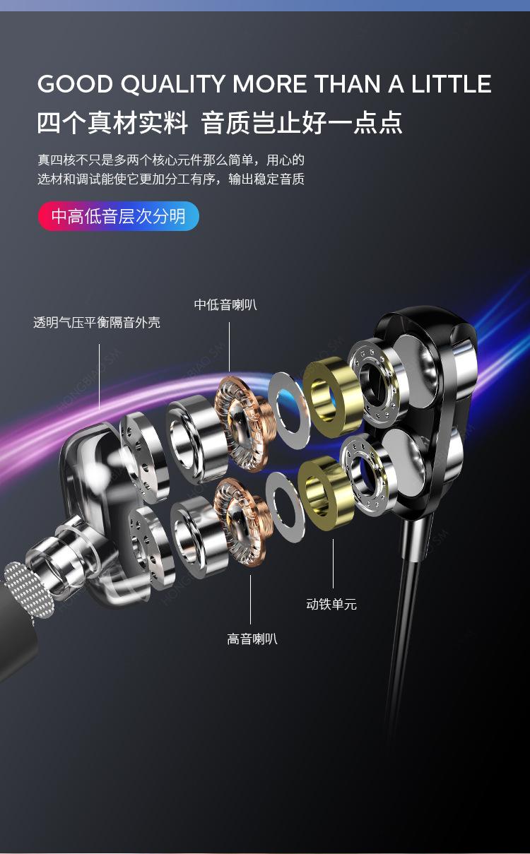 Audífonos para Subwoofer de Cuatro Núcleos Doble Anillo Juego de Pollo K-Song Audífonos In-Ear Subwoofer con Control de Cable y Micrófono