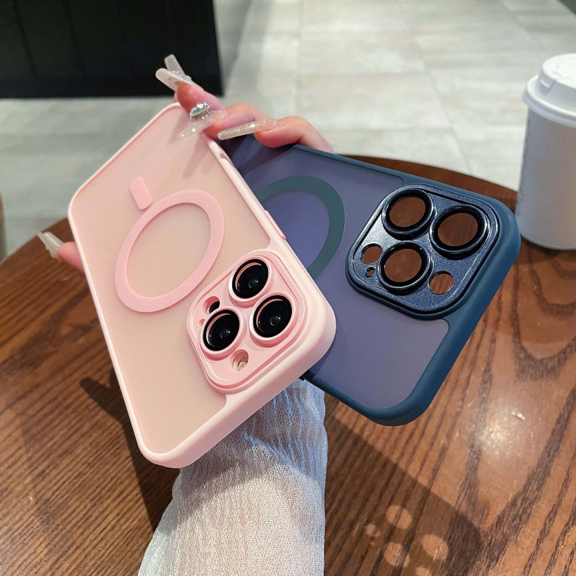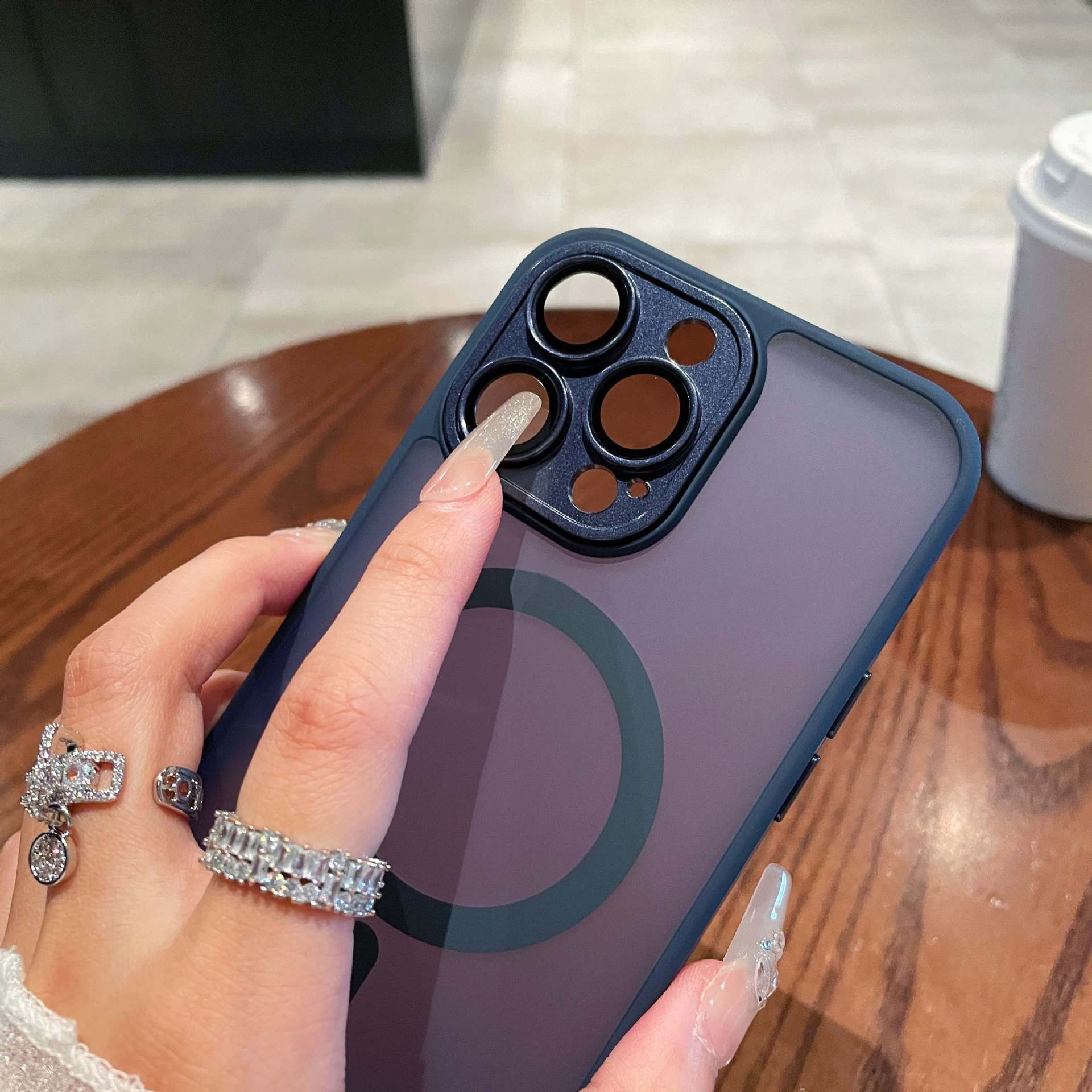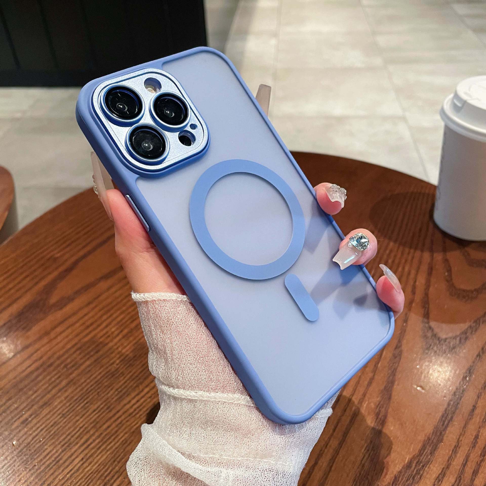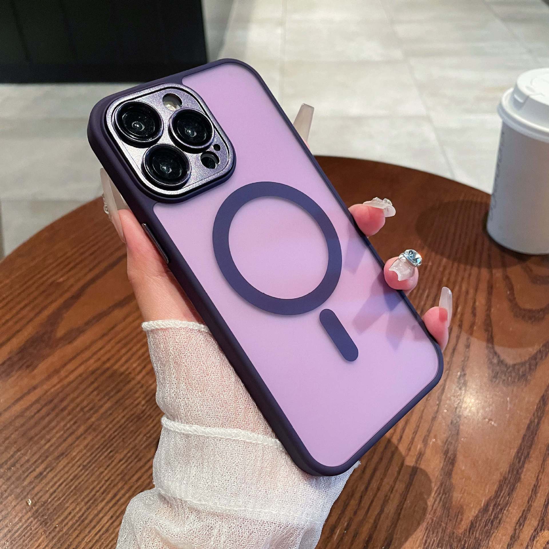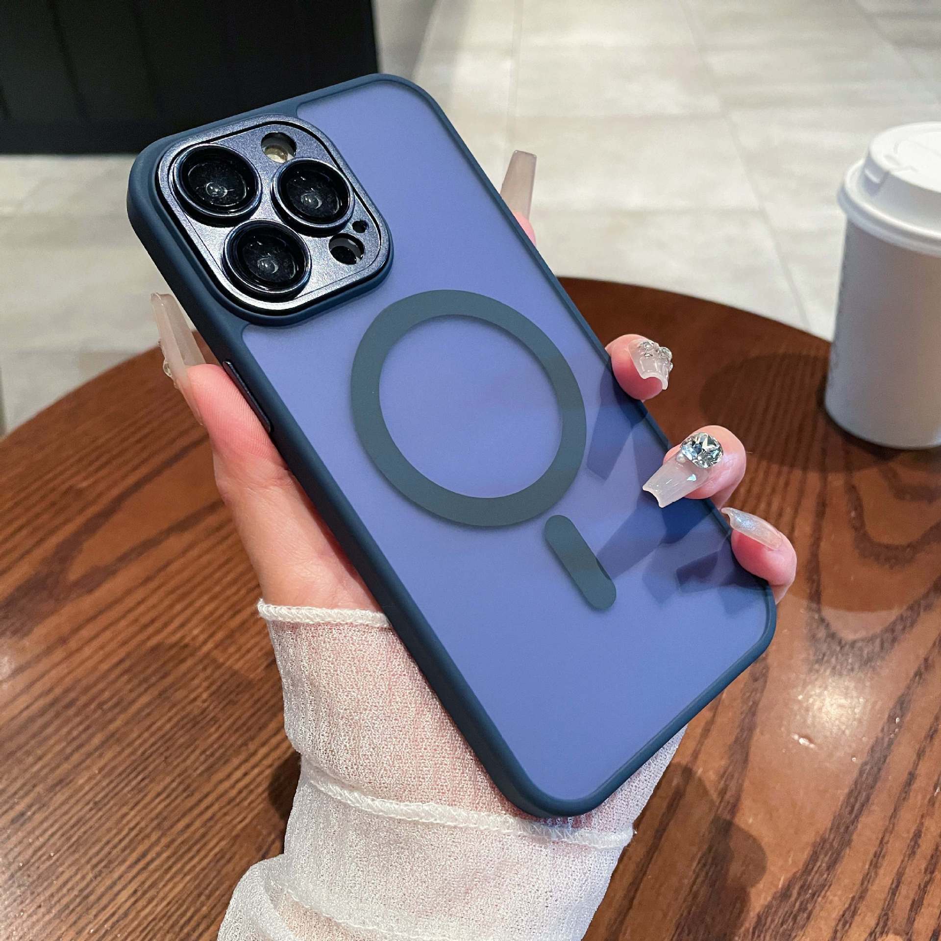 Adecuado para funda magnética para teléfono móvil iPhone15 tacto esmerilado semitransparente Apple 14PROMAX lente funda protectora todo incluido