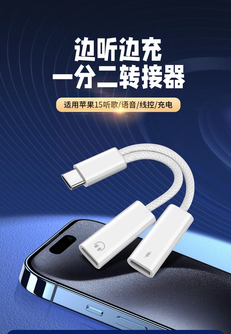 Adaptador convertidor Lightning a USB-C tipo C, adaptador 2 en 1 para auriculares Apple de 15 pulgadas.