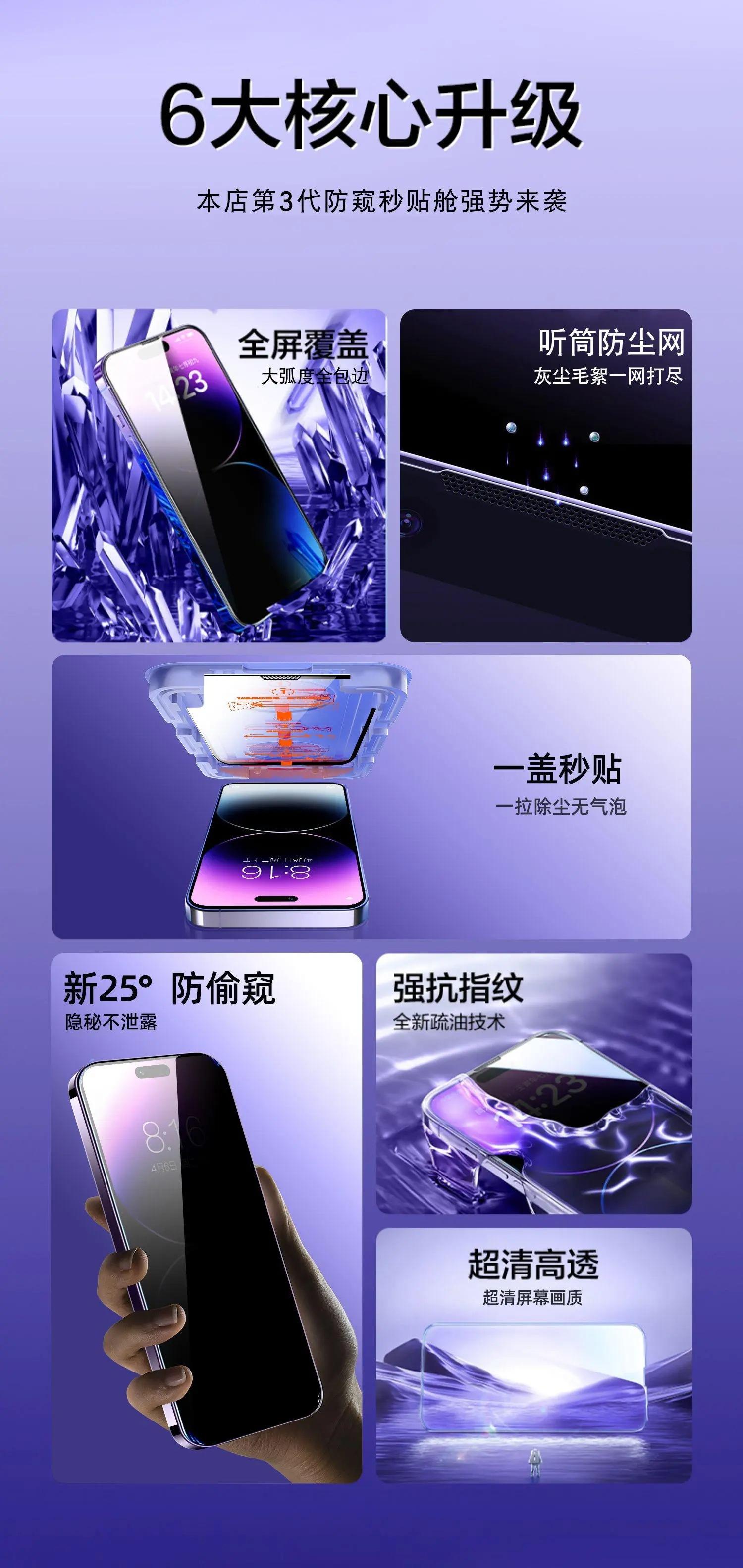 Almacén libre de polvo para iPhone Apple 16 película templada anti-peeping 13 teléfono móvil HD 15 segundos película protección de pantalla completa
