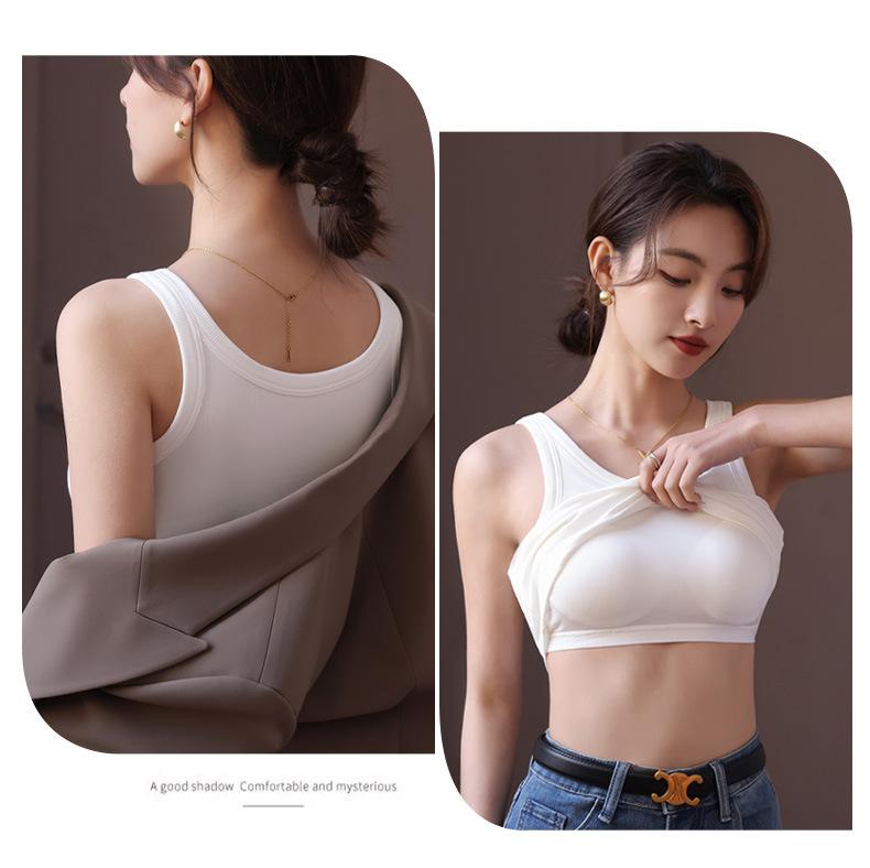 Tirantes roscados con chaleco con almohadilla para el pecho Ropa exterior de una pieza para mujer Ropa interior Base para senos grandes Sujetador sin uso Verano