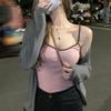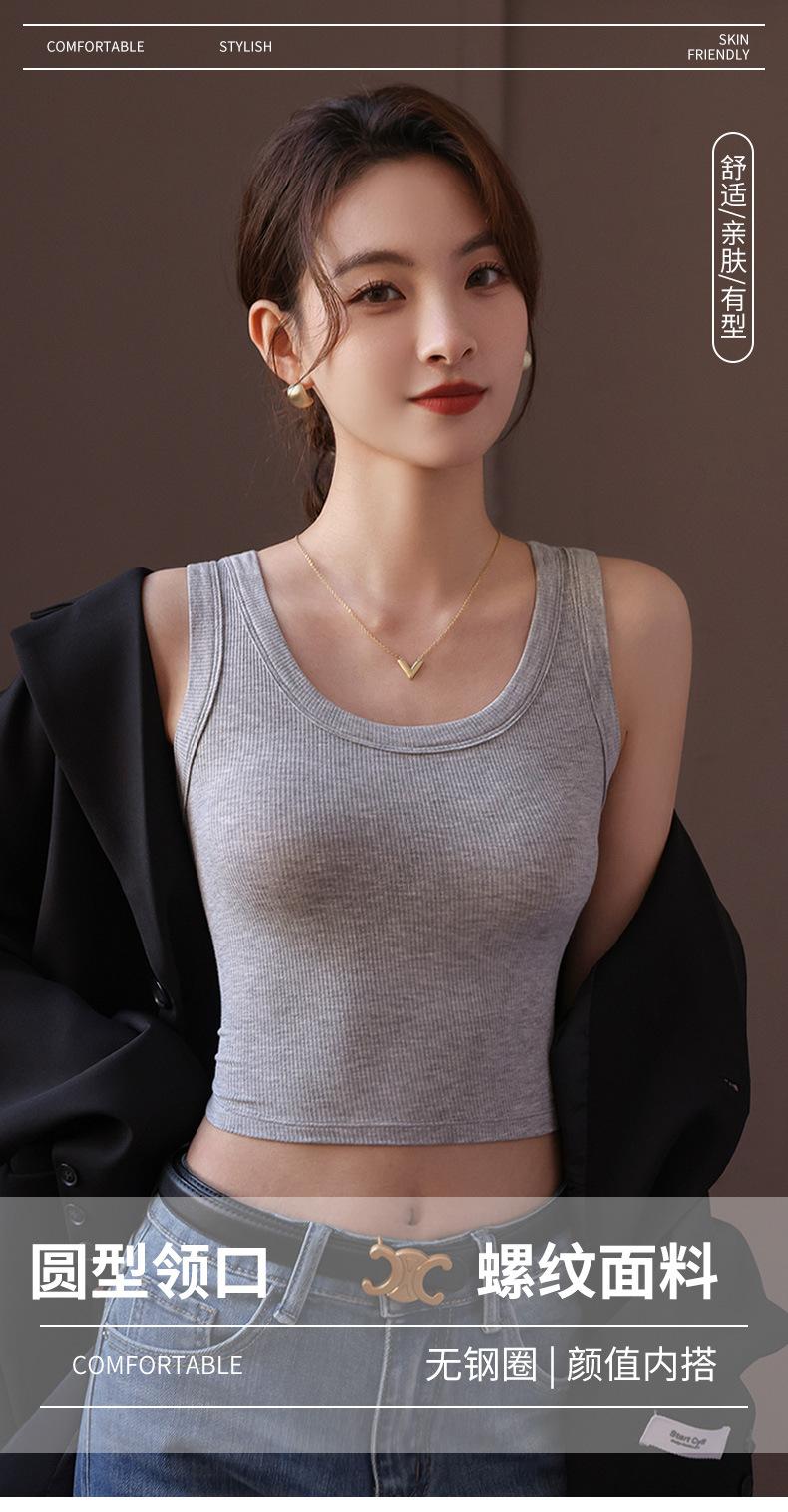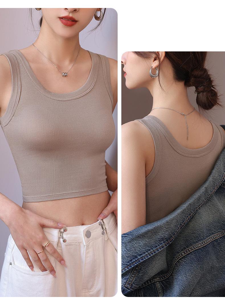 Camisola corta con rosca para mujer, chaleco de verano, anti-correr, sin mangas, base ajustada.