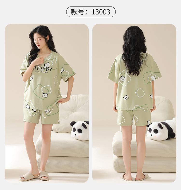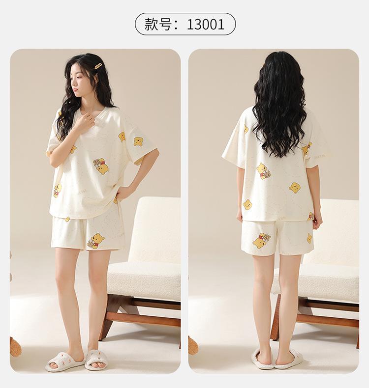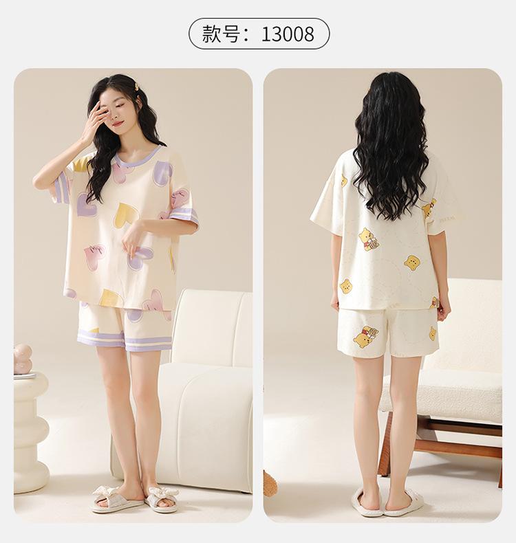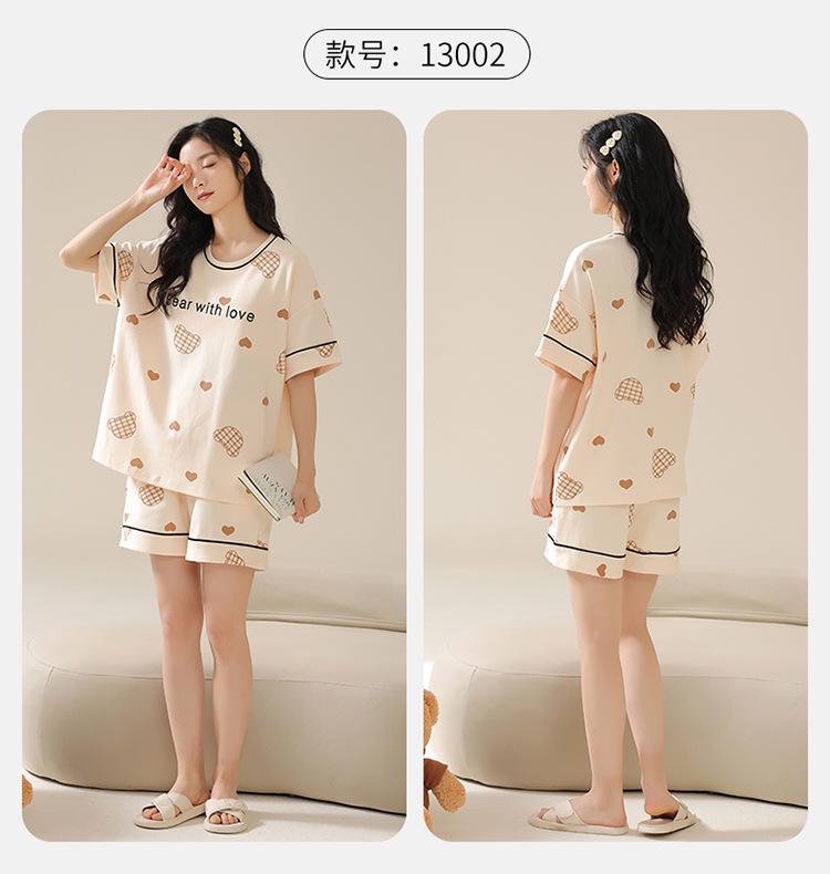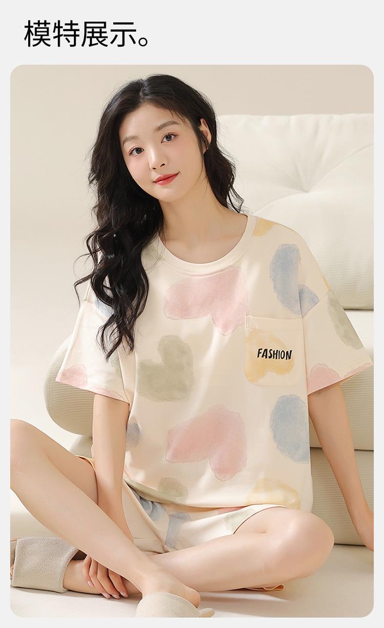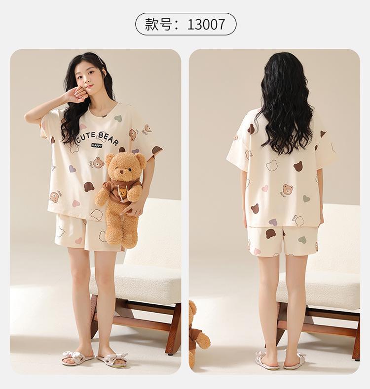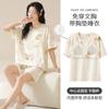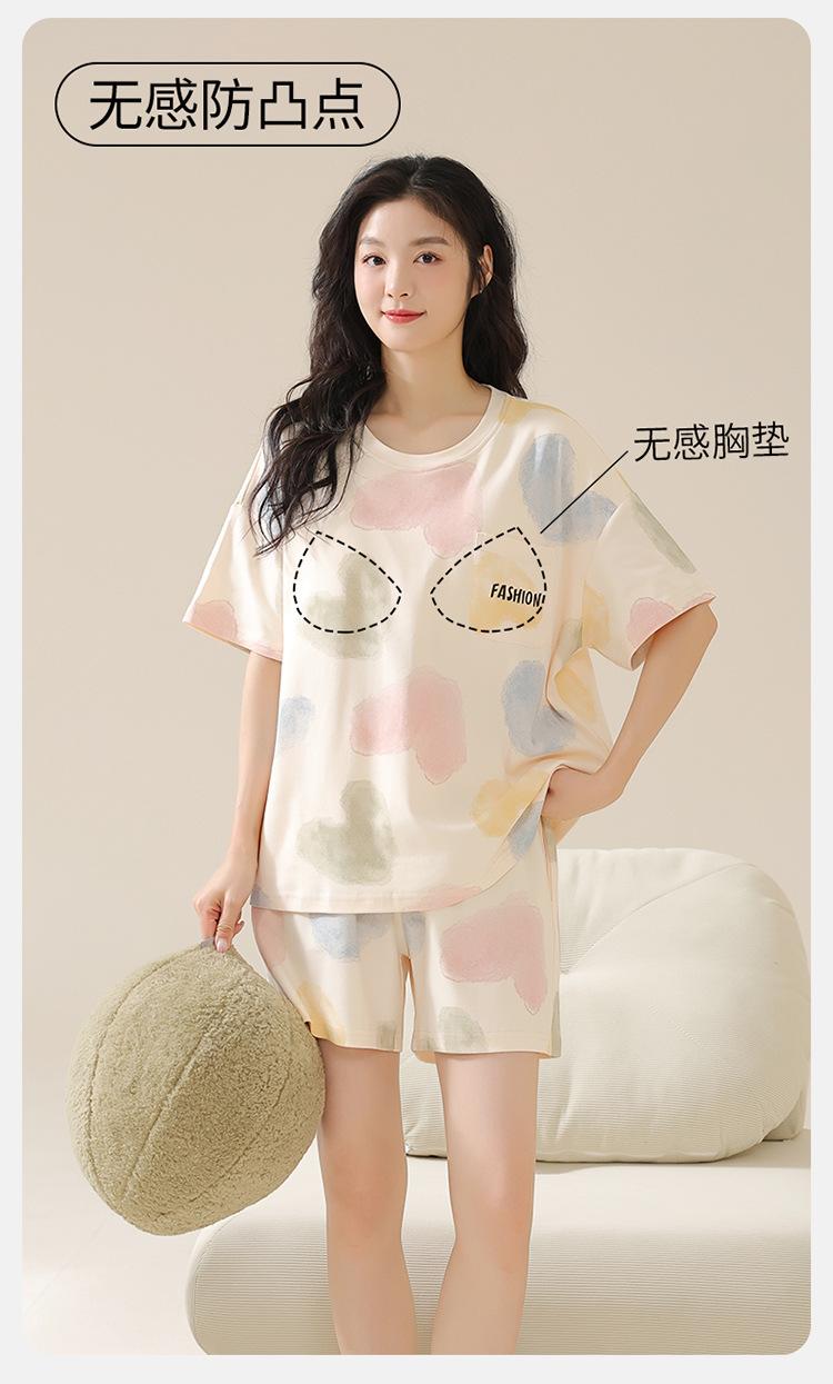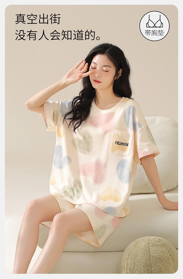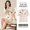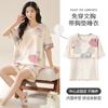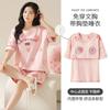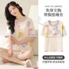 Pijama Delgada para Mujer en Verano con Almohadillas para el Busto Algodón Puro Traje de Manga Corta Dibujos Animados Lindo Jersey Ropa para el Hogar Se Puede Usar Afuera en Verano