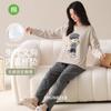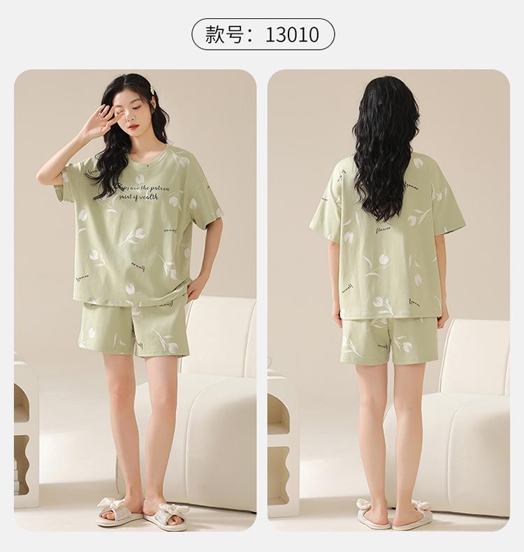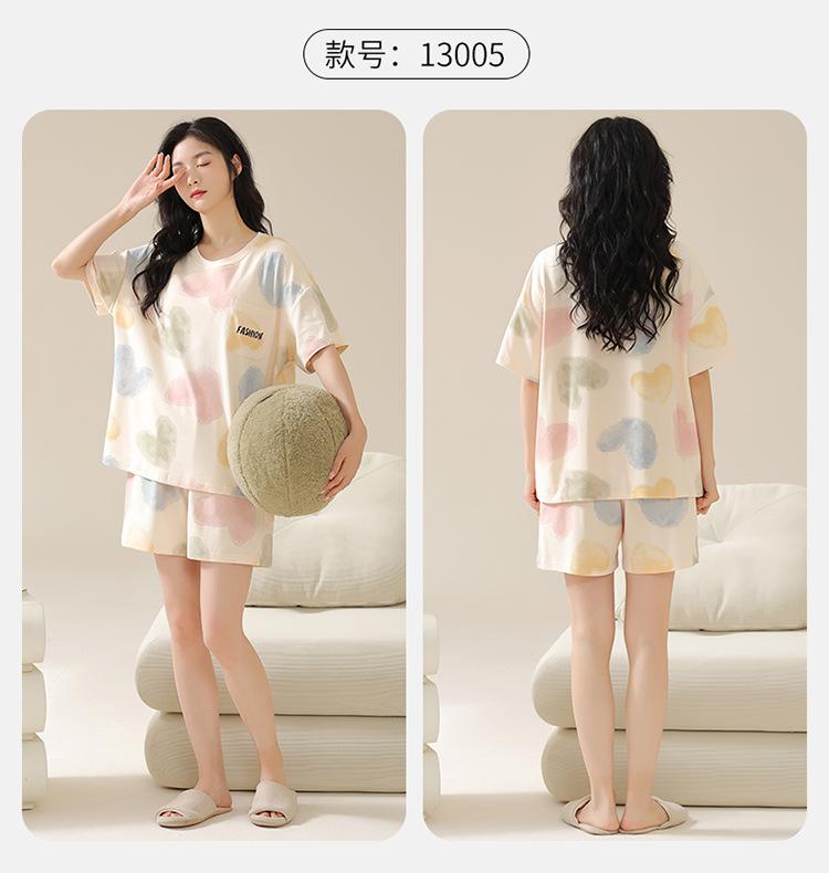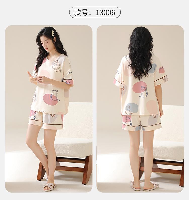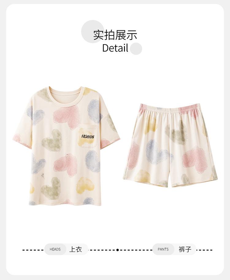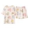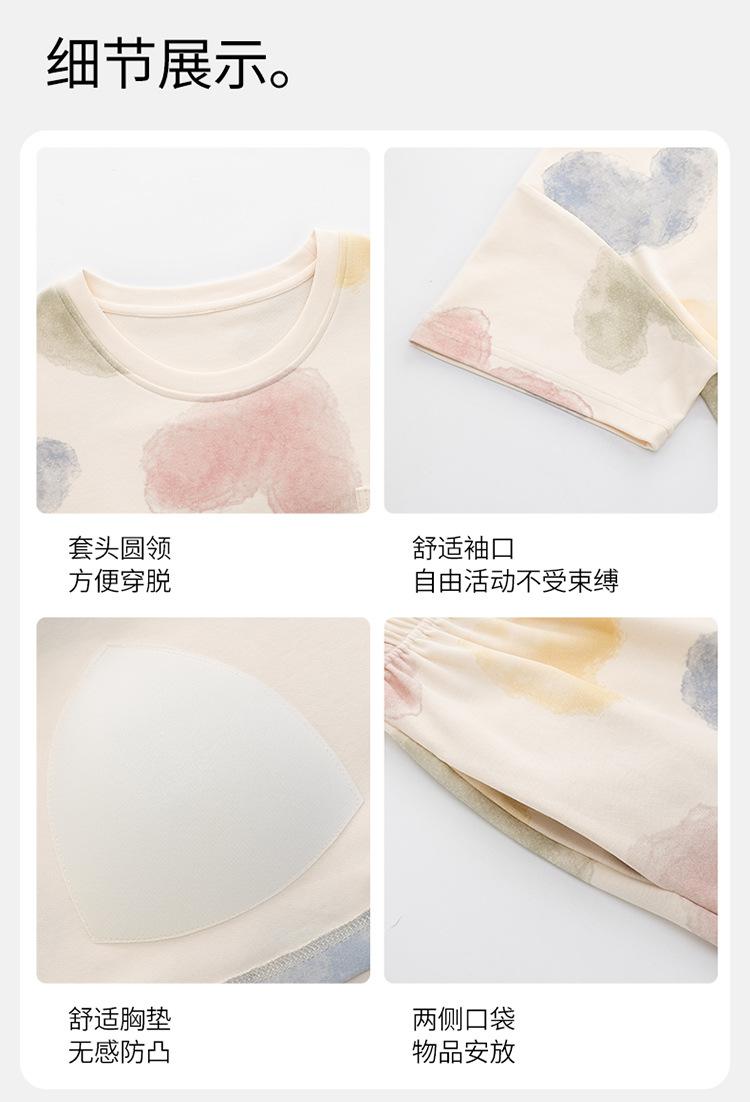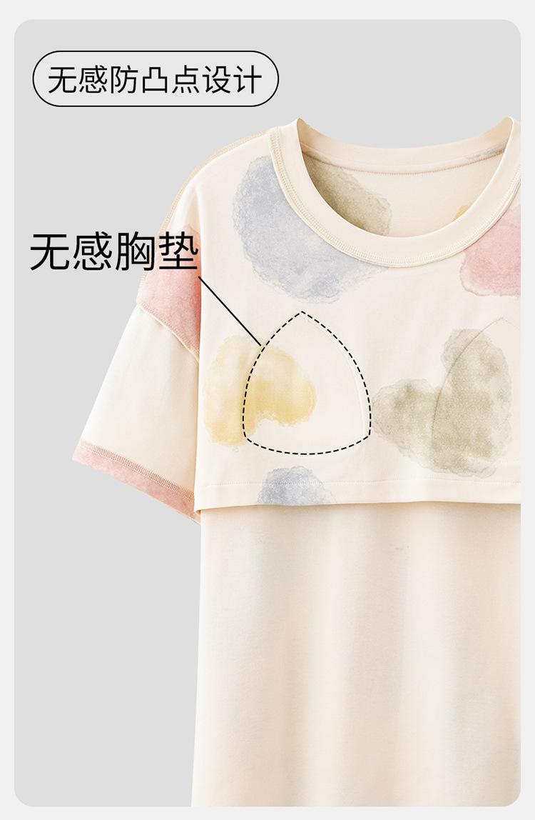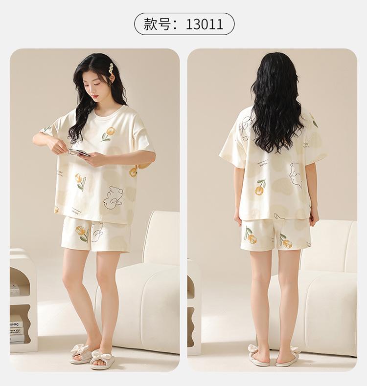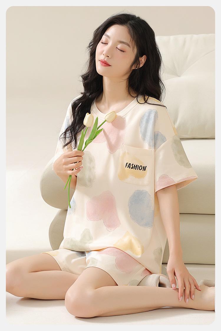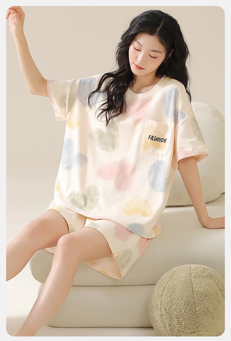 Pijama Delgada para Mujer en Verano con Almohadillas para el Busto Algodón Puro Traje de Manga Corta Dibujos Animados Lindo Jersey Ropa para el Hogar Se Puede Usar Afuera en Verano