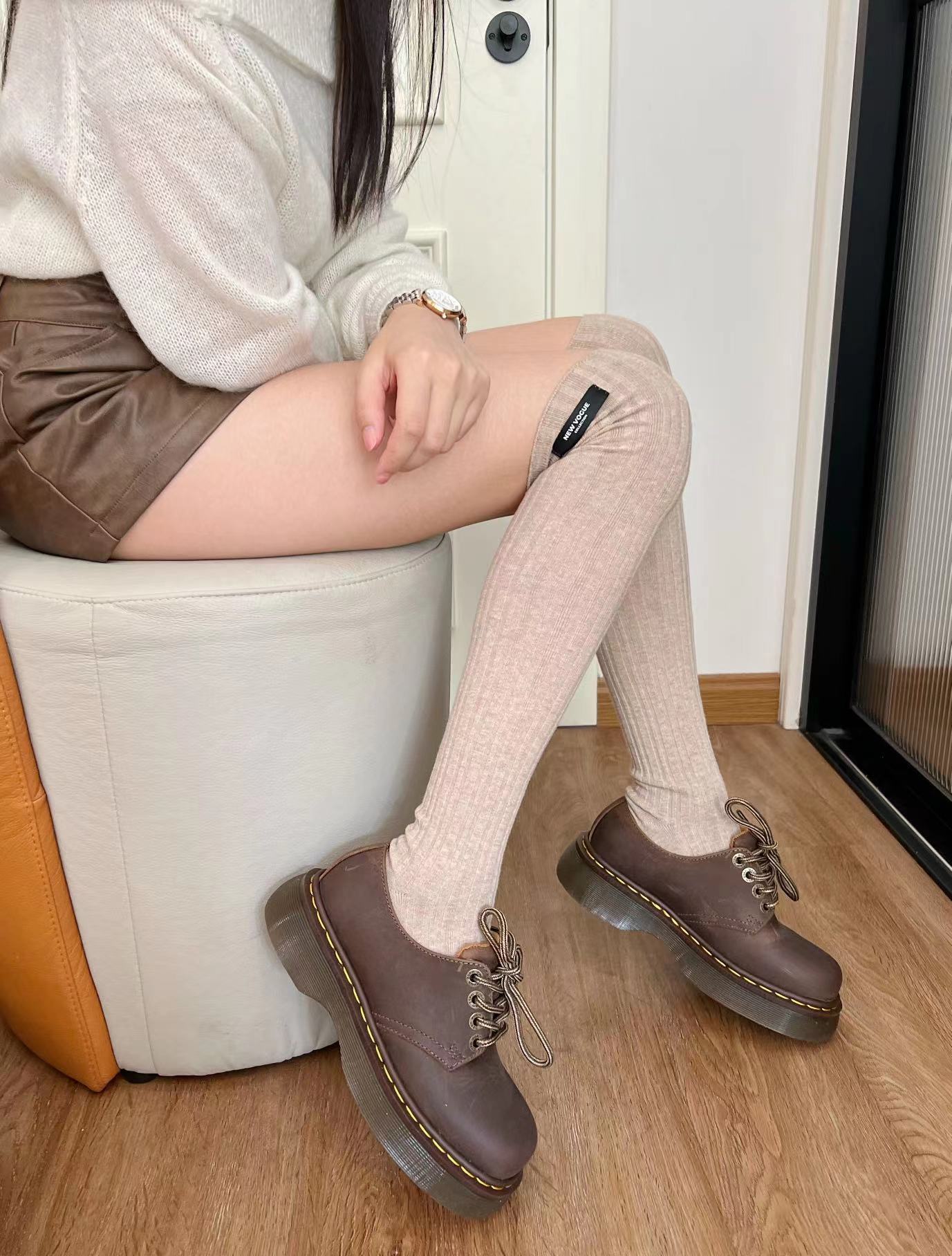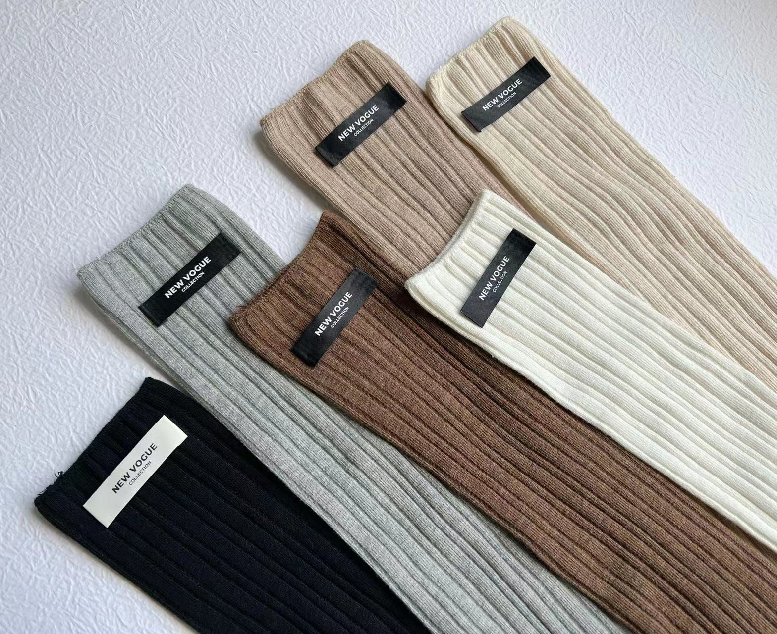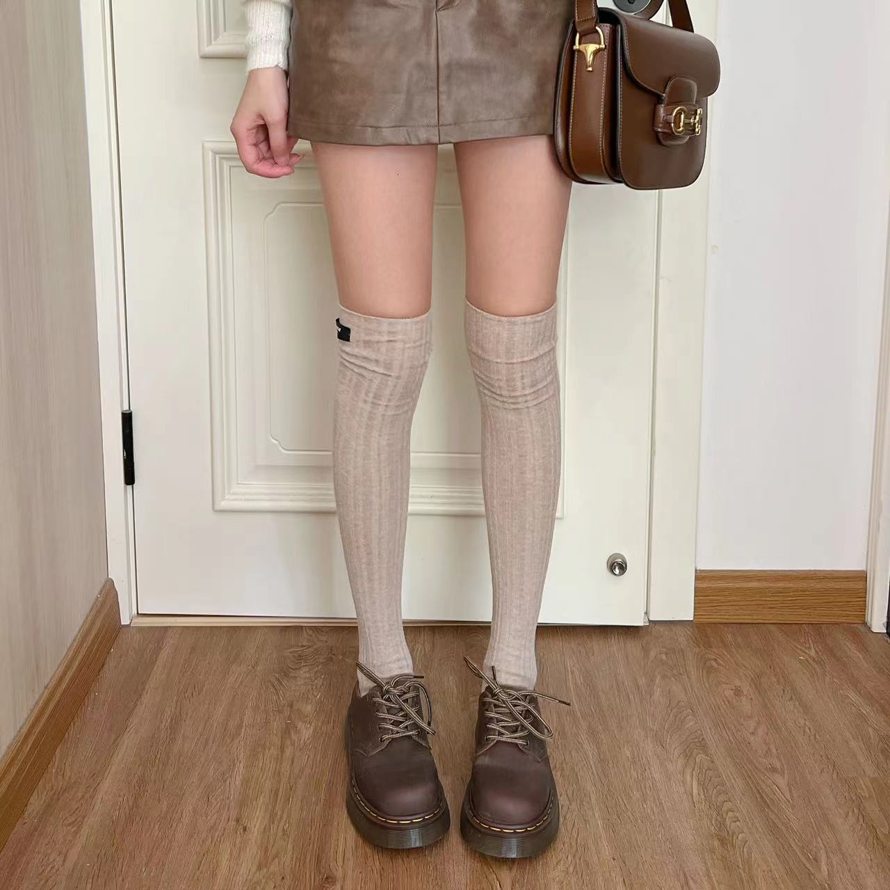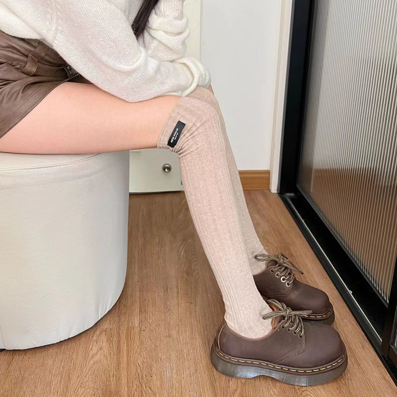 Calcetines de pantorrilla de otoño e invierno, calcetines de muslo de marca estilo miu, calcetines apilados, calcetines de rayas verticales de color liso que combinan con todo, calcetines por encima de la rodilla