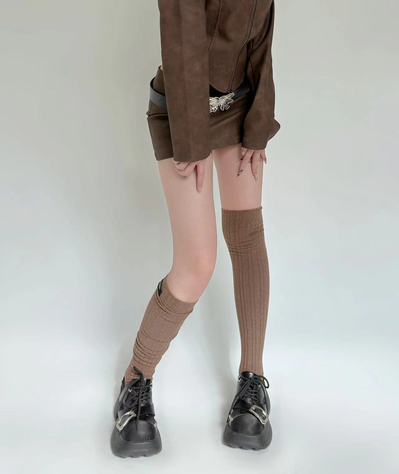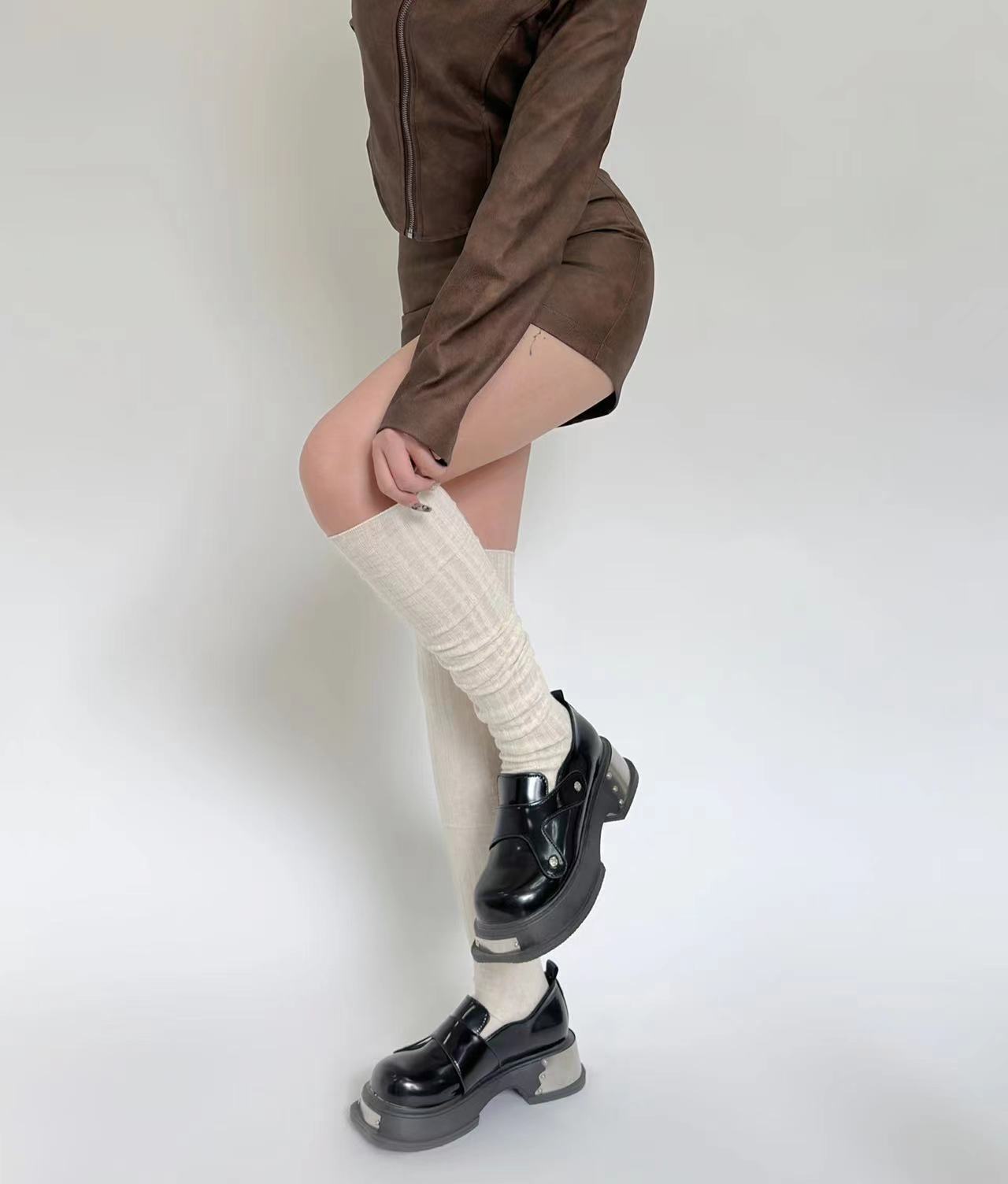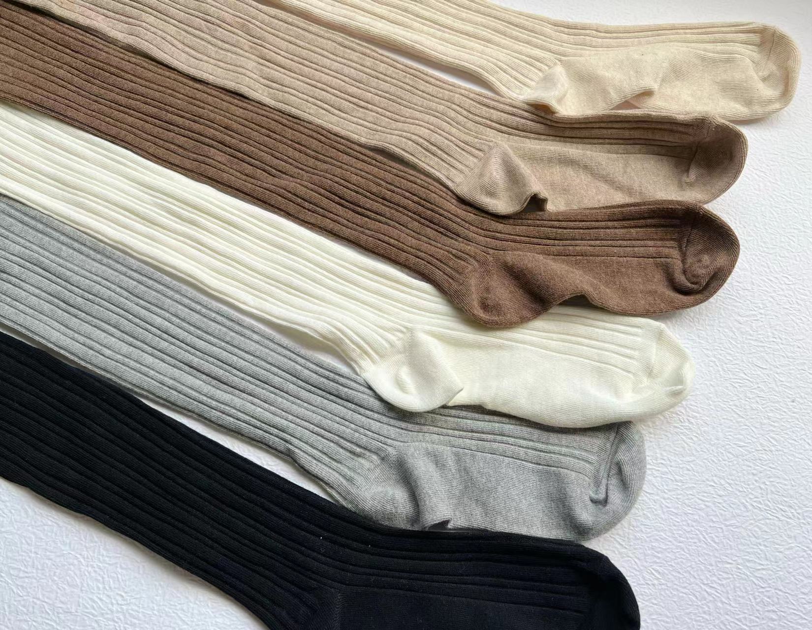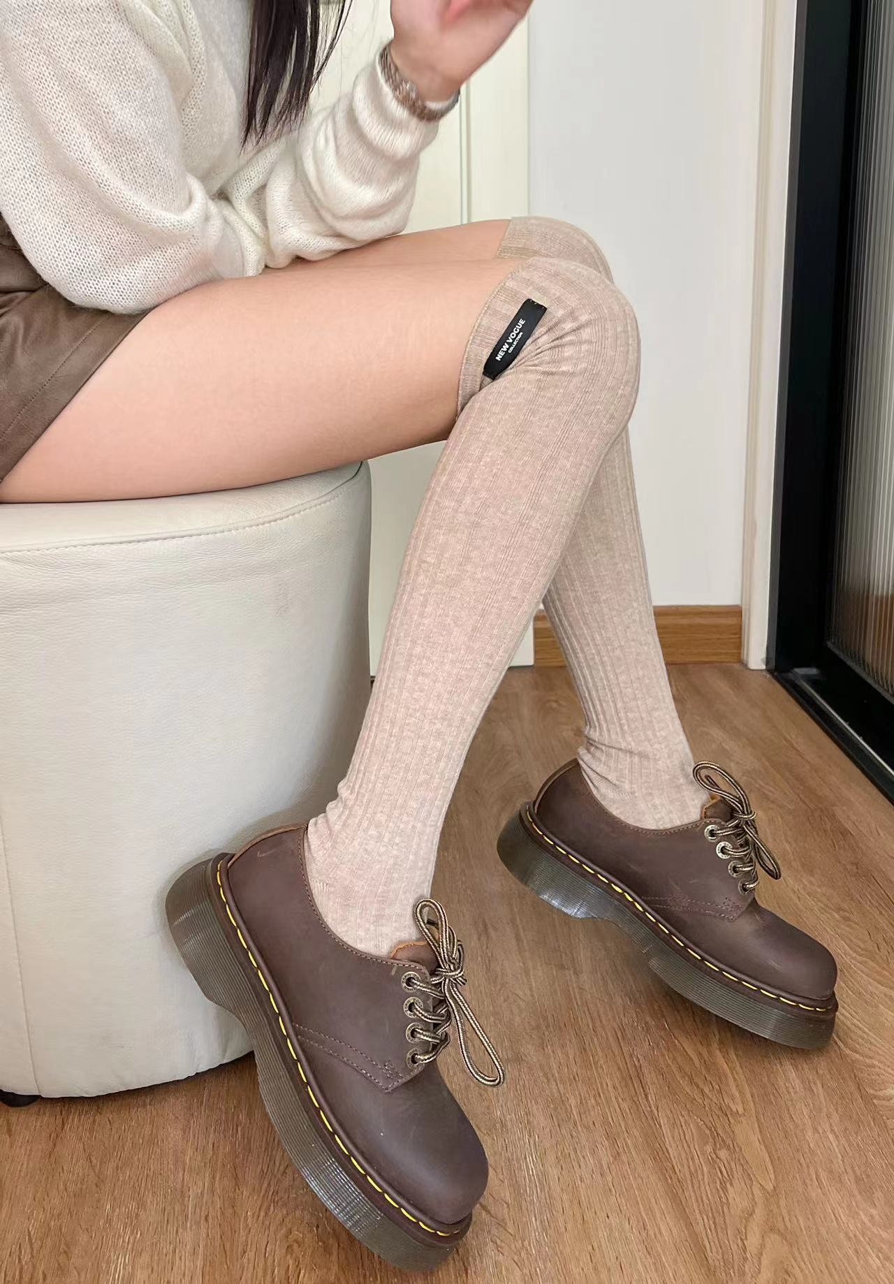 Calcetines de pantorrilla de otoño e invierno, calcetines de muslo de marca estilo miu, calcetines apilados, calcetines de rayas verticales de color liso que combinan con todo, calcetines por encima de la rodilla