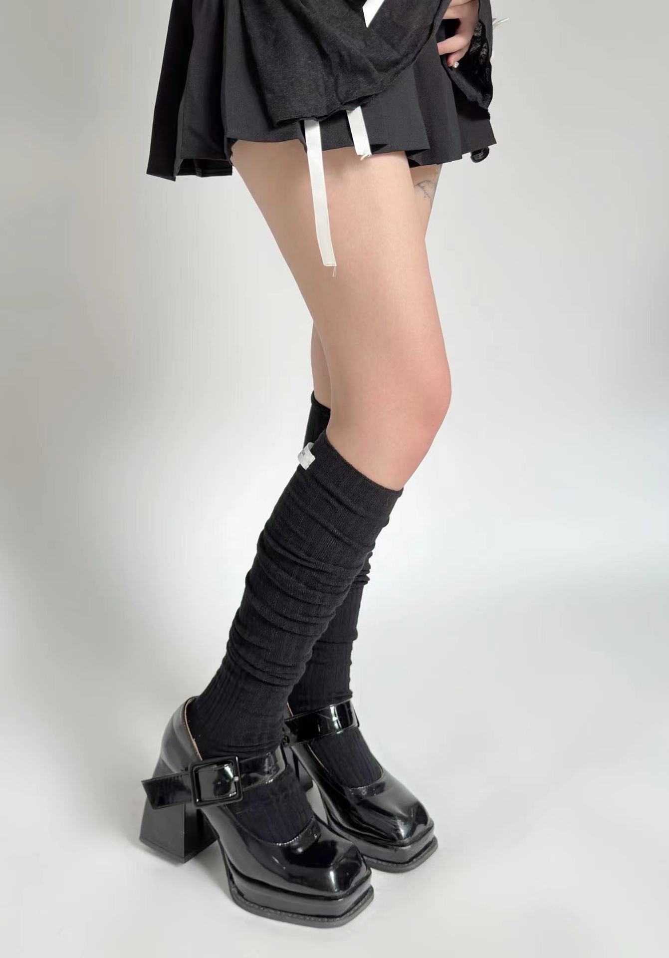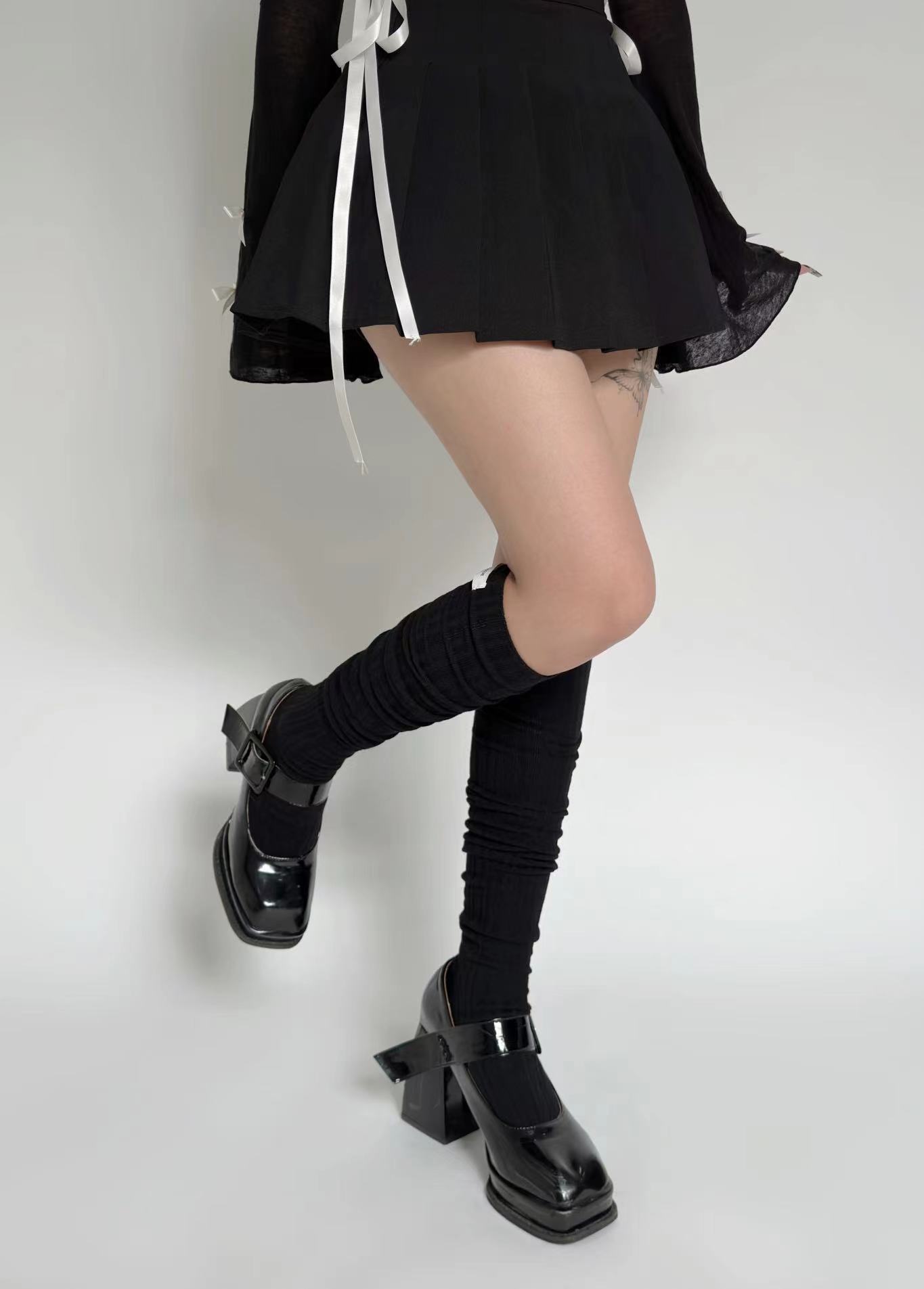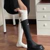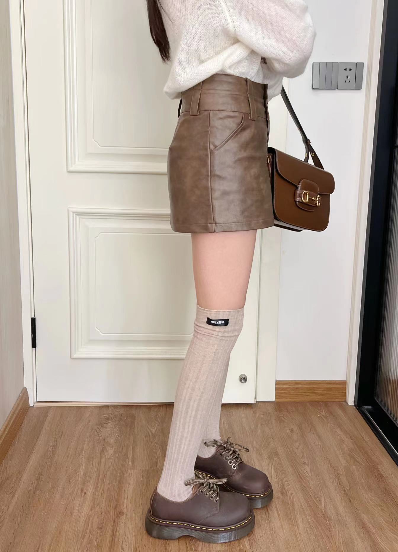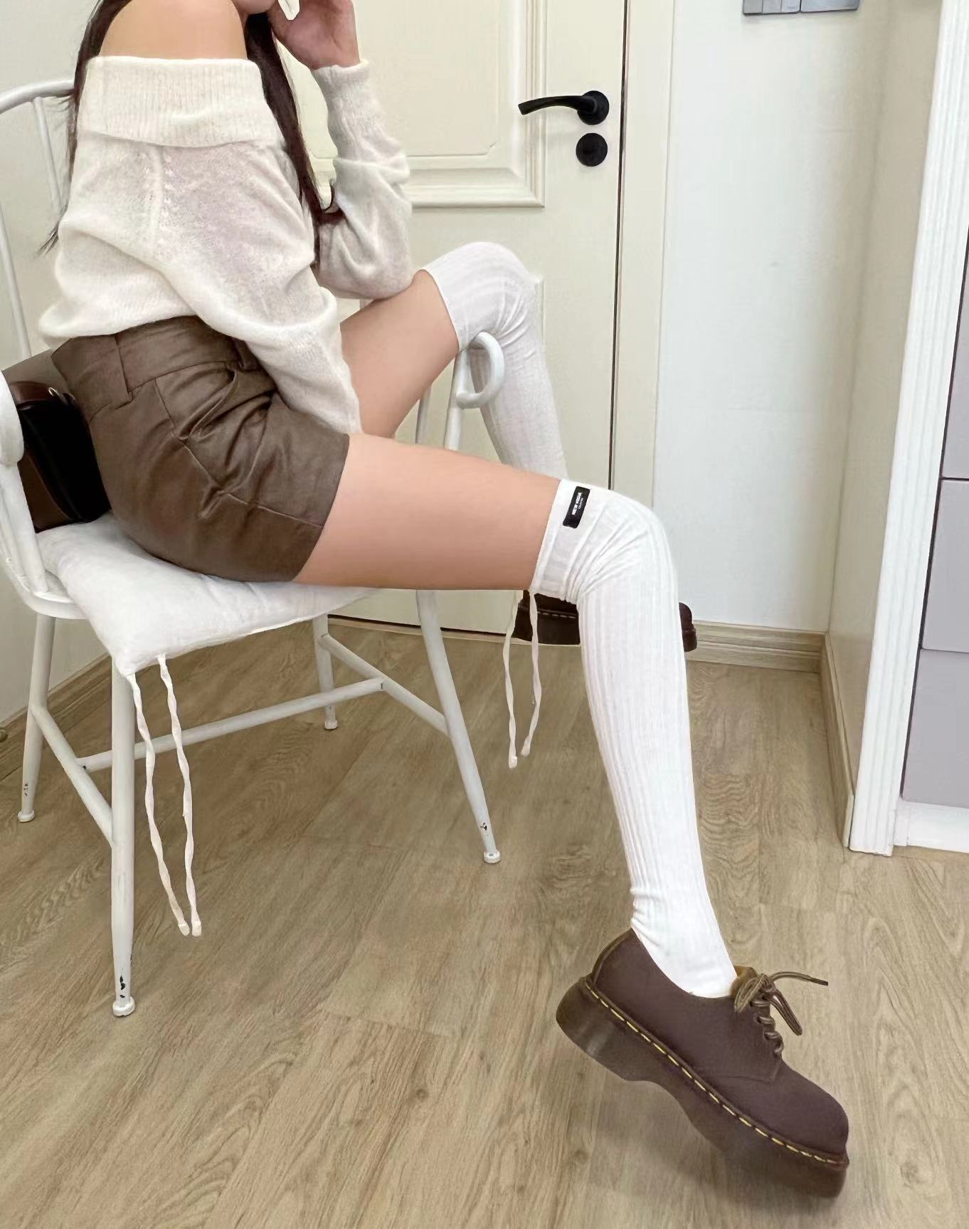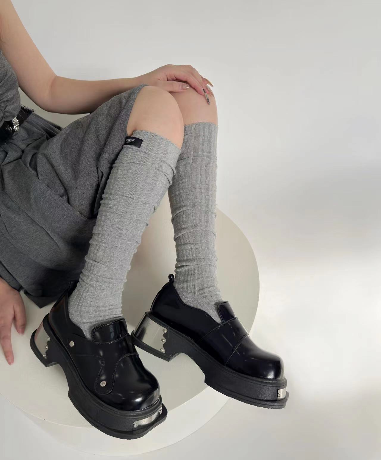 Calcetines de pantorrilla de otoño e invierno, calcetines de muslo de marca estilo miu, calcetines apilados, calcetines de rayas verticales de color liso que combinan con todo, calcetines por encima de la rodilla
