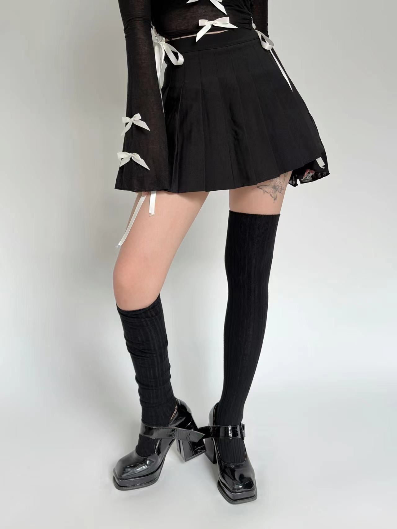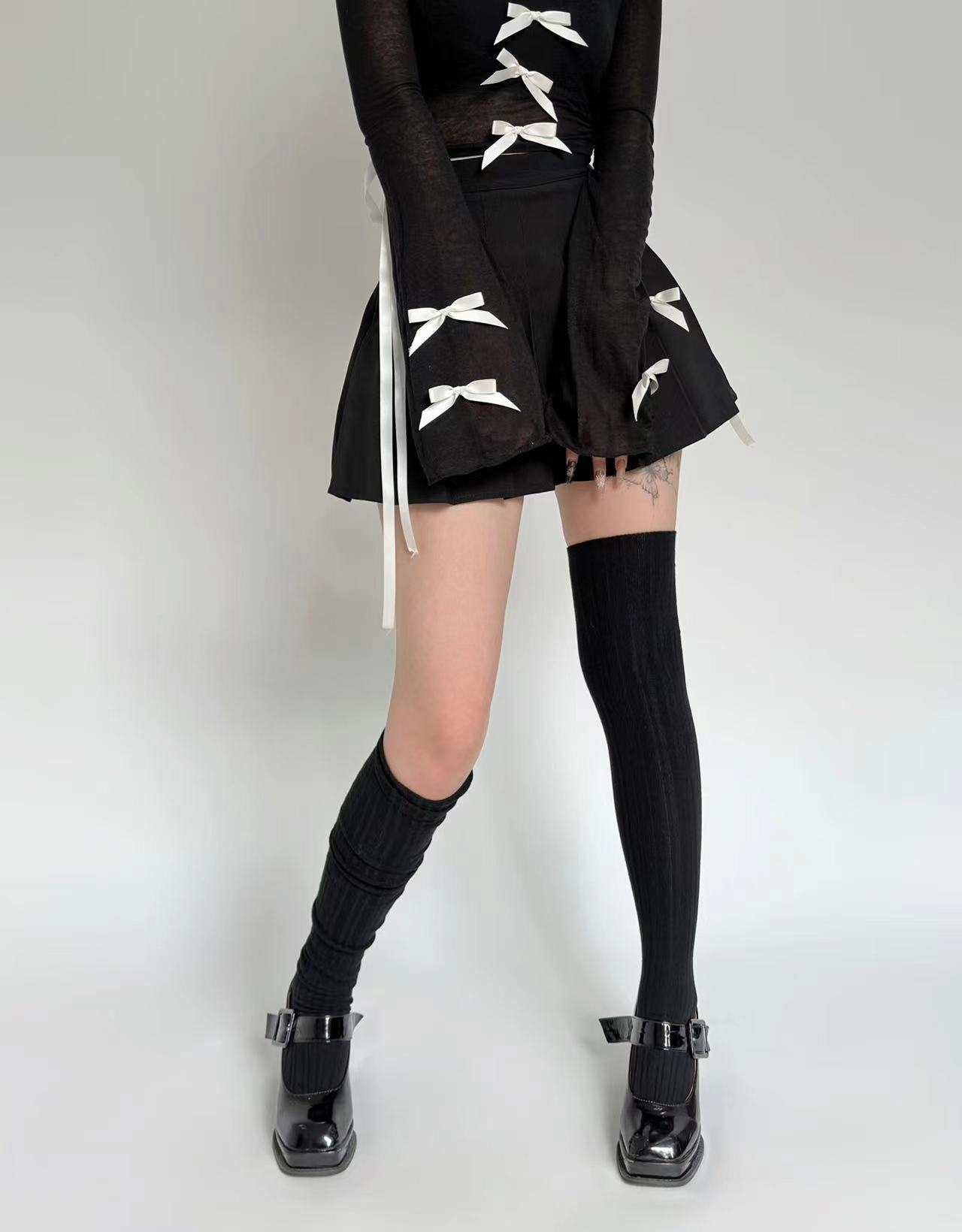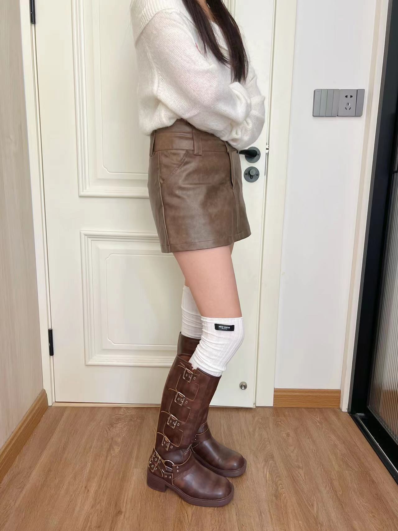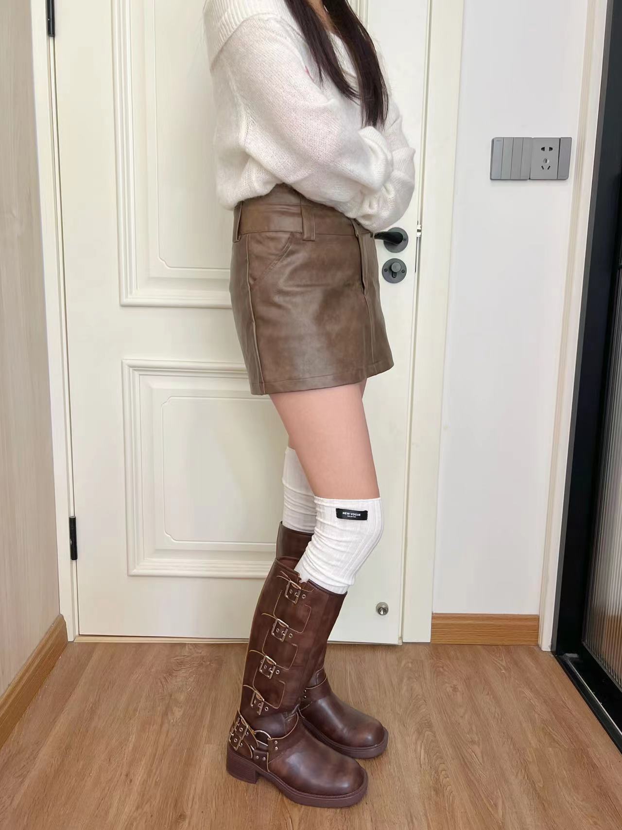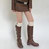 Calcetines de pantorrilla de otoño e invierno, calcetines de muslo de marca estilo miu, calcetines apilados, calcetines de rayas verticales de color liso que combinan con todo, calcetines por encima de la rodilla