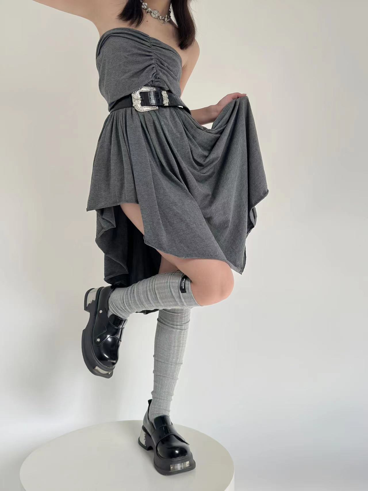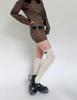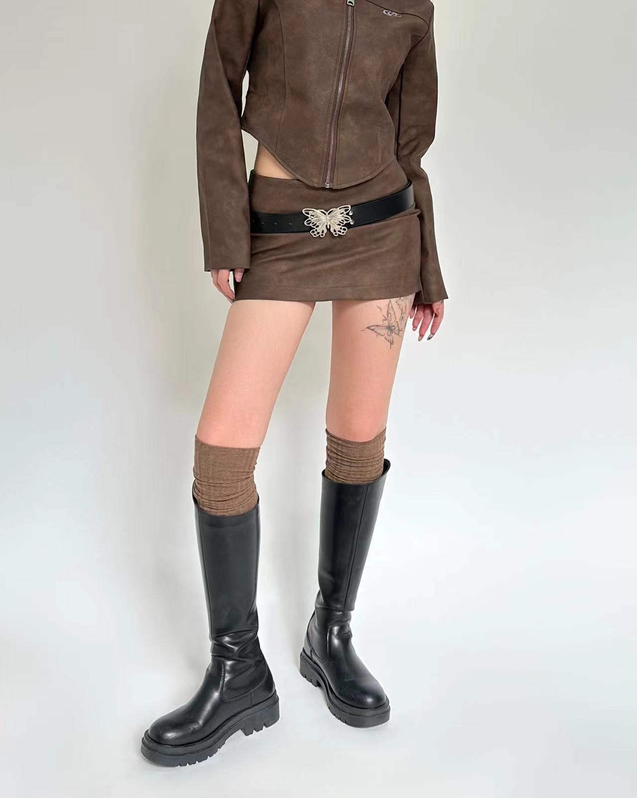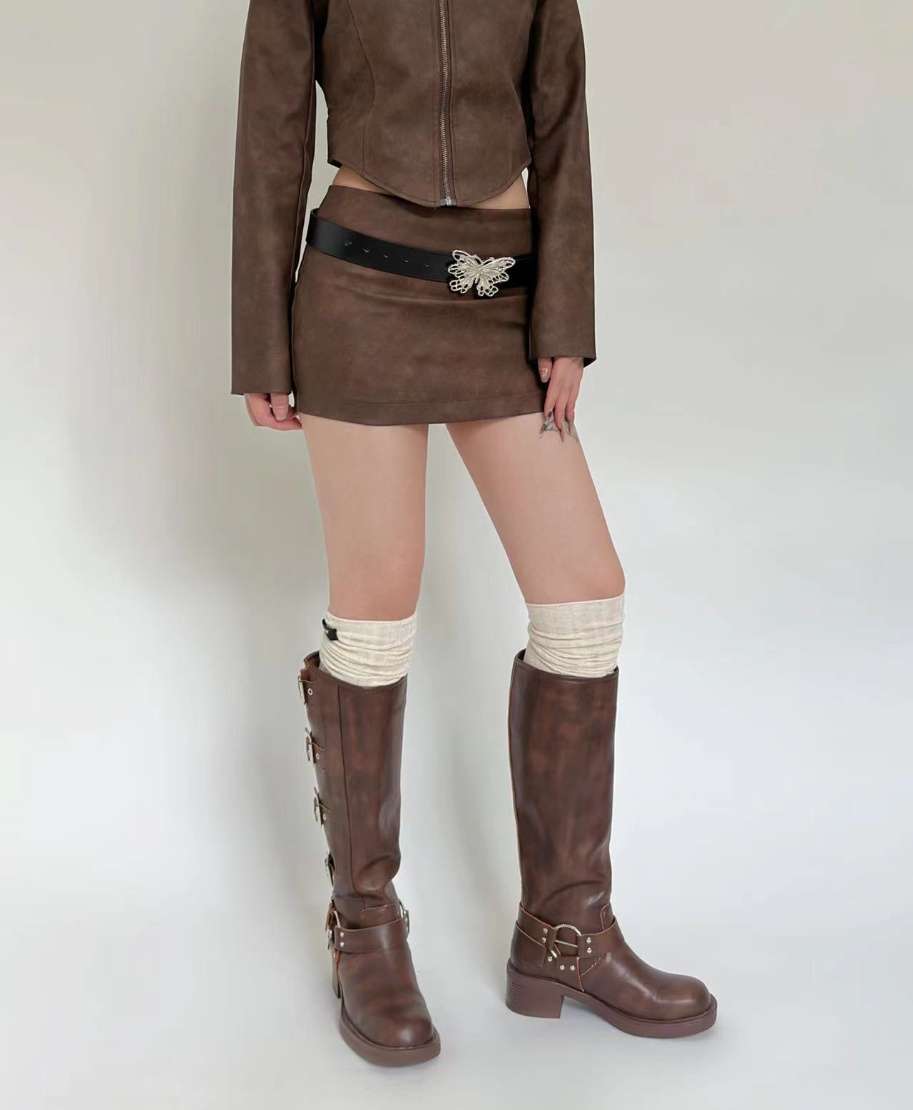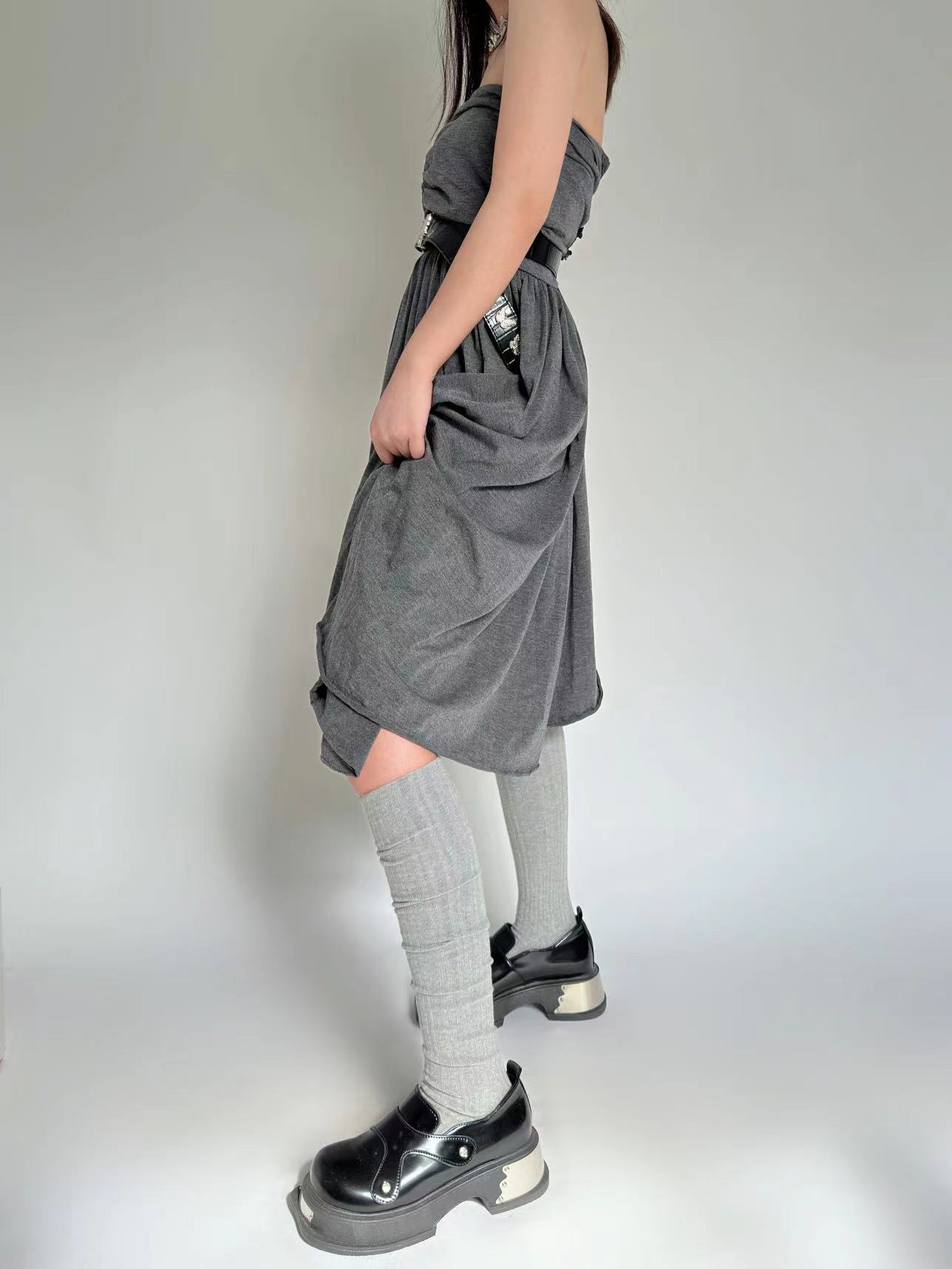 Calcetines de pantorrilla de otoño e invierno, calcetines de muslo de marca estilo miu, calcetines apilados, calcetines de rayas verticales de color liso que combinan con todo, calcetines por encima de la rodilla