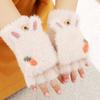 Guantes invierno lindos dibujos animados orejas de conejo zanahoria forro polar guantes convertibles estudiante escritura medio dedo cubierta