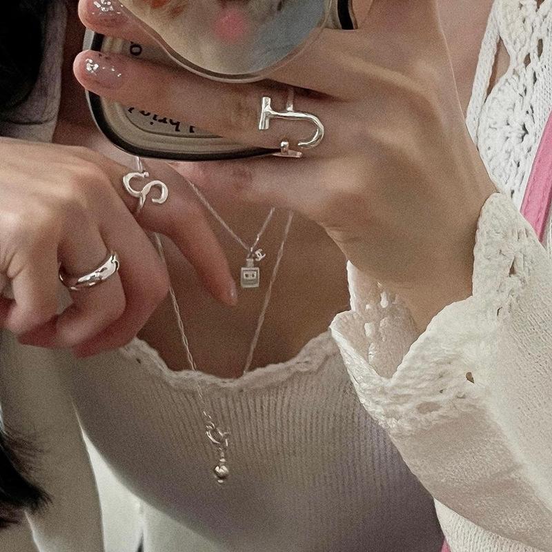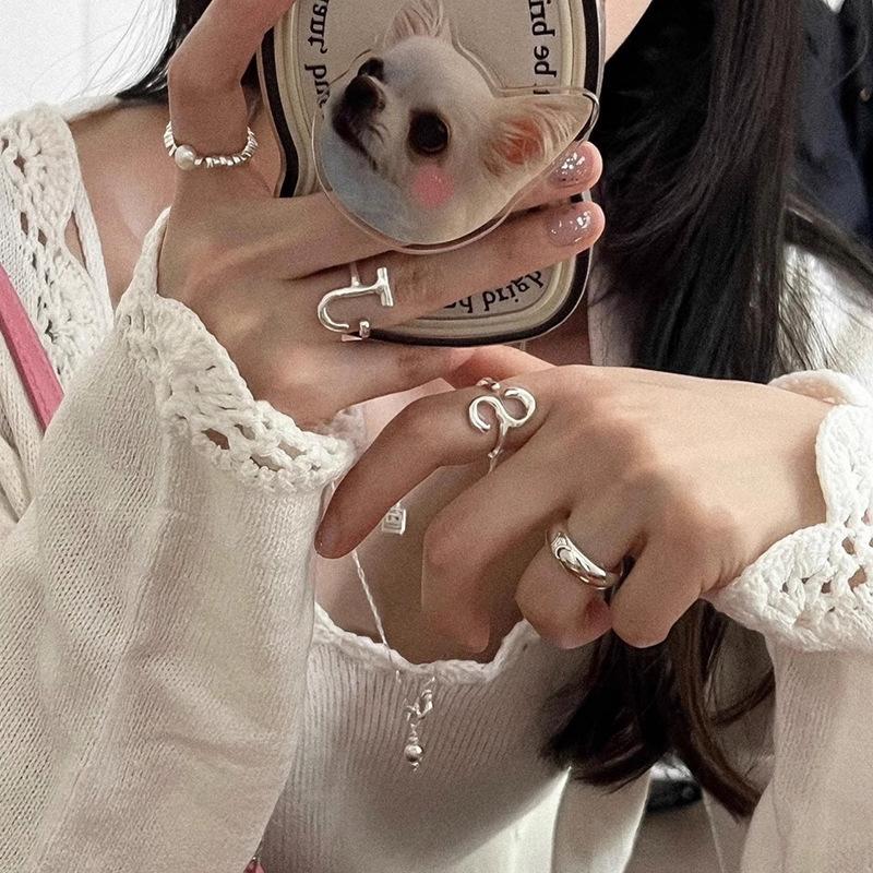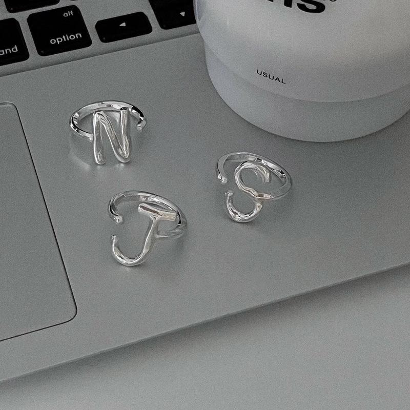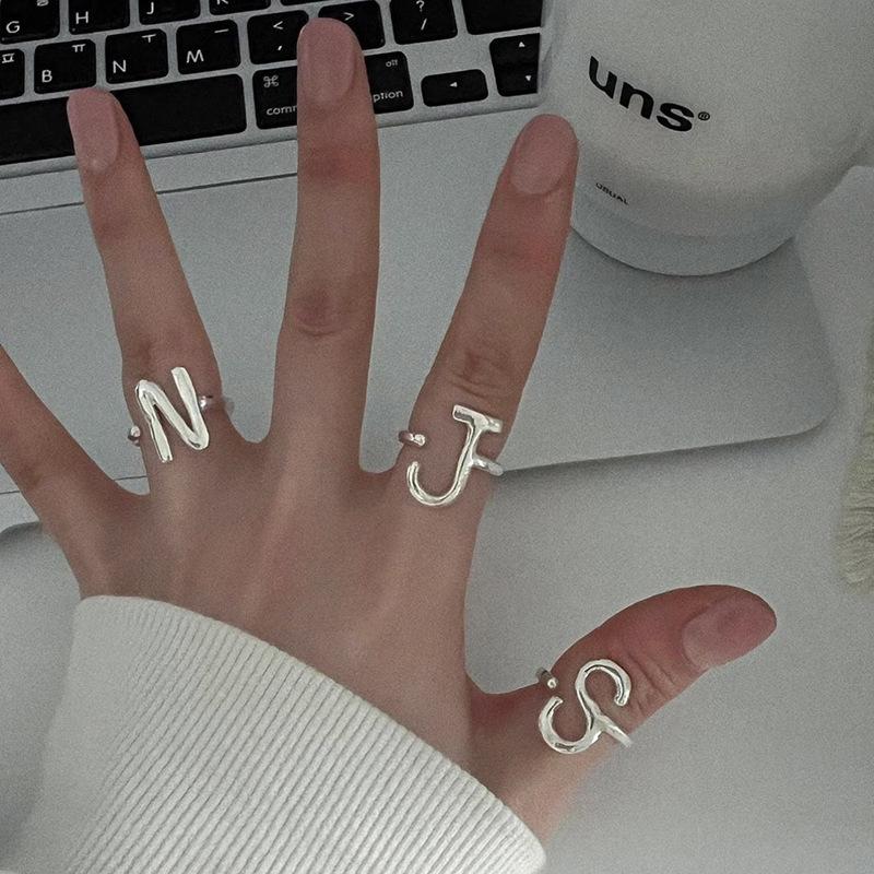 Anillo Minimalista con Letra Inglesa de Diseño Nicho Versión Coreana para Mujer, de Temperamento Versátil Moderno y Único de Alta Gama Abierto