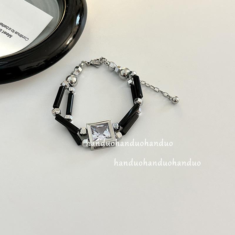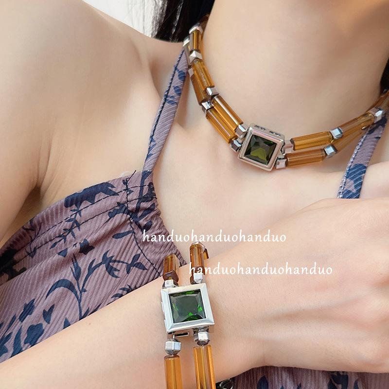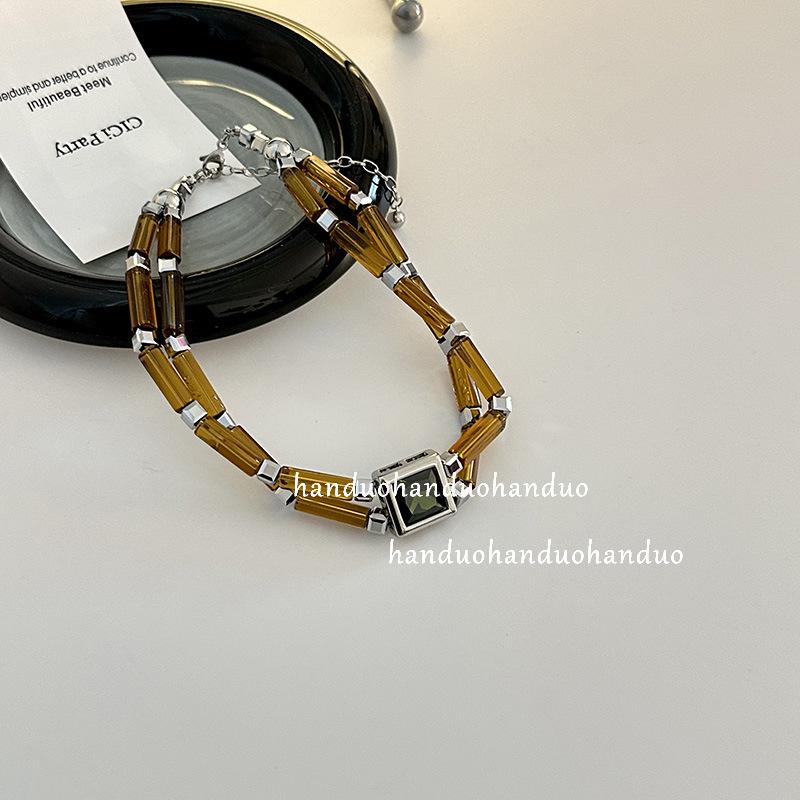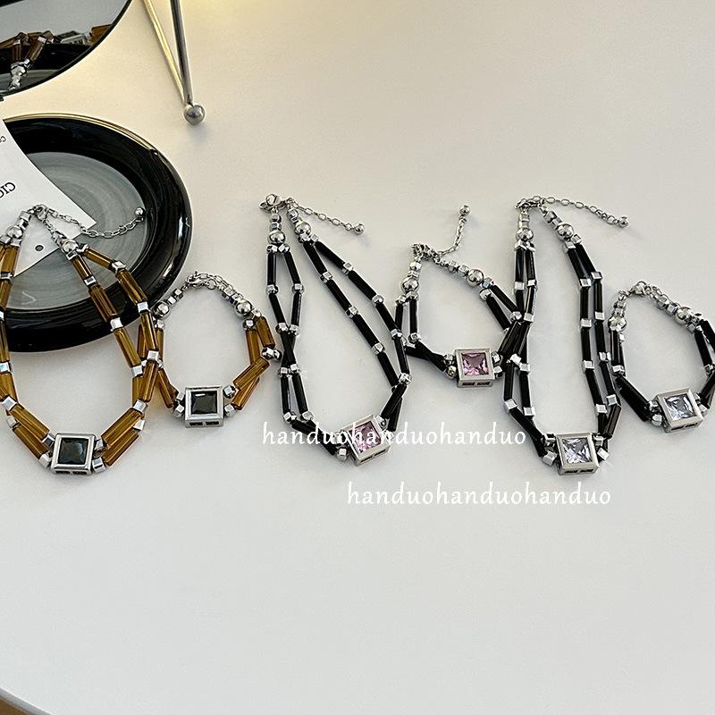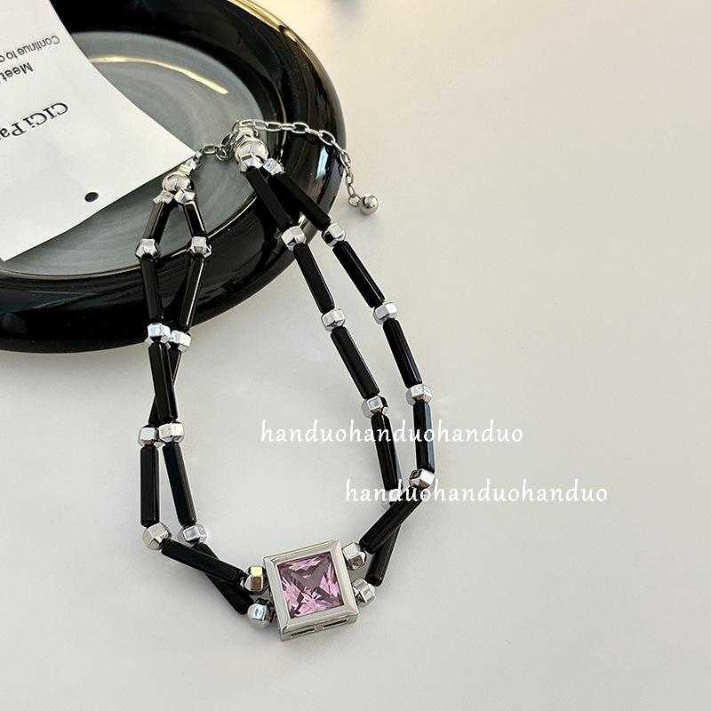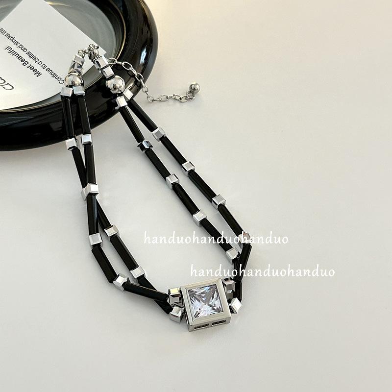 Collar de bambú negro para mujer, diseño de nicho de lujo ligero, collar de alta calidad, cadena de clavícula, nicho cuadrado, moda de alta calidad