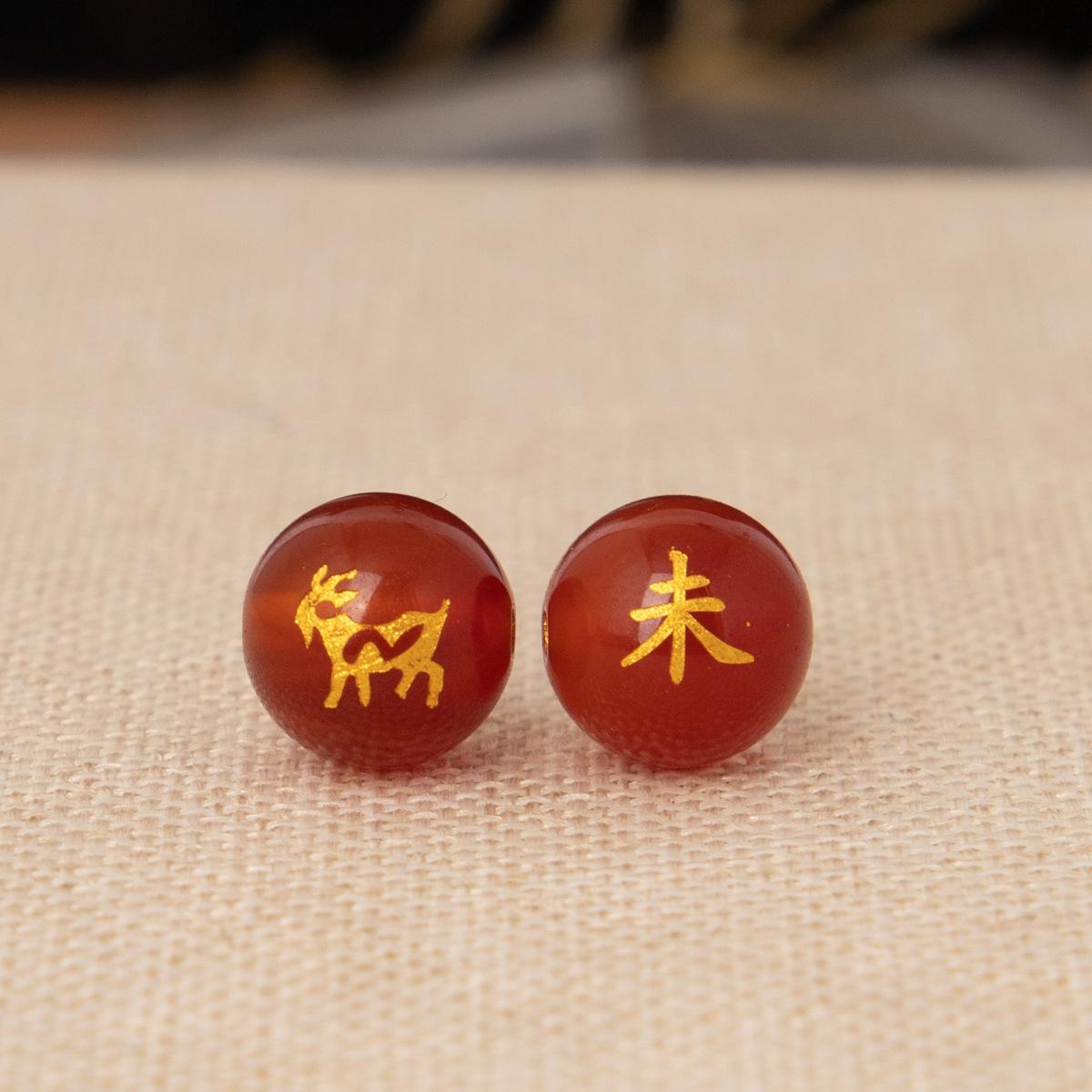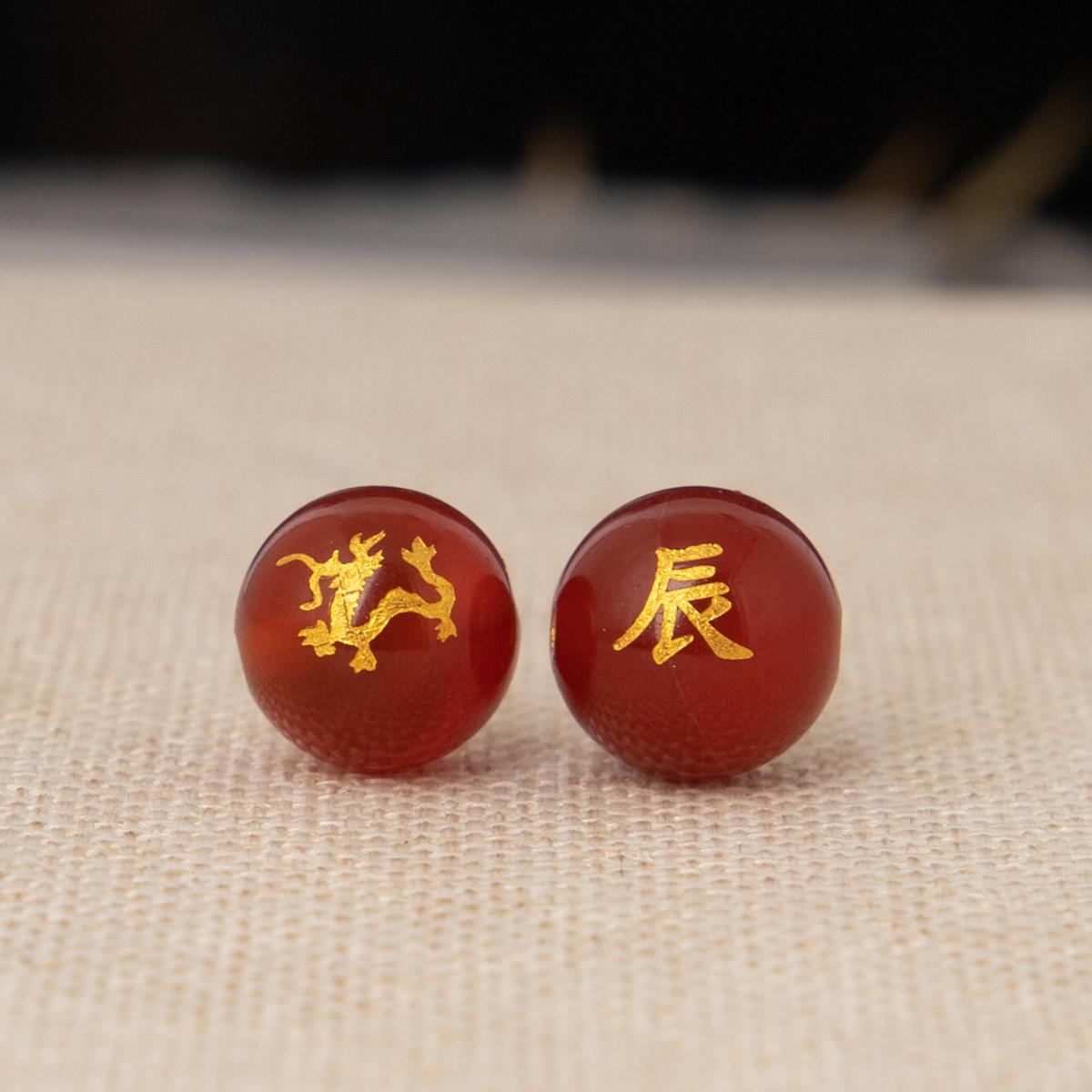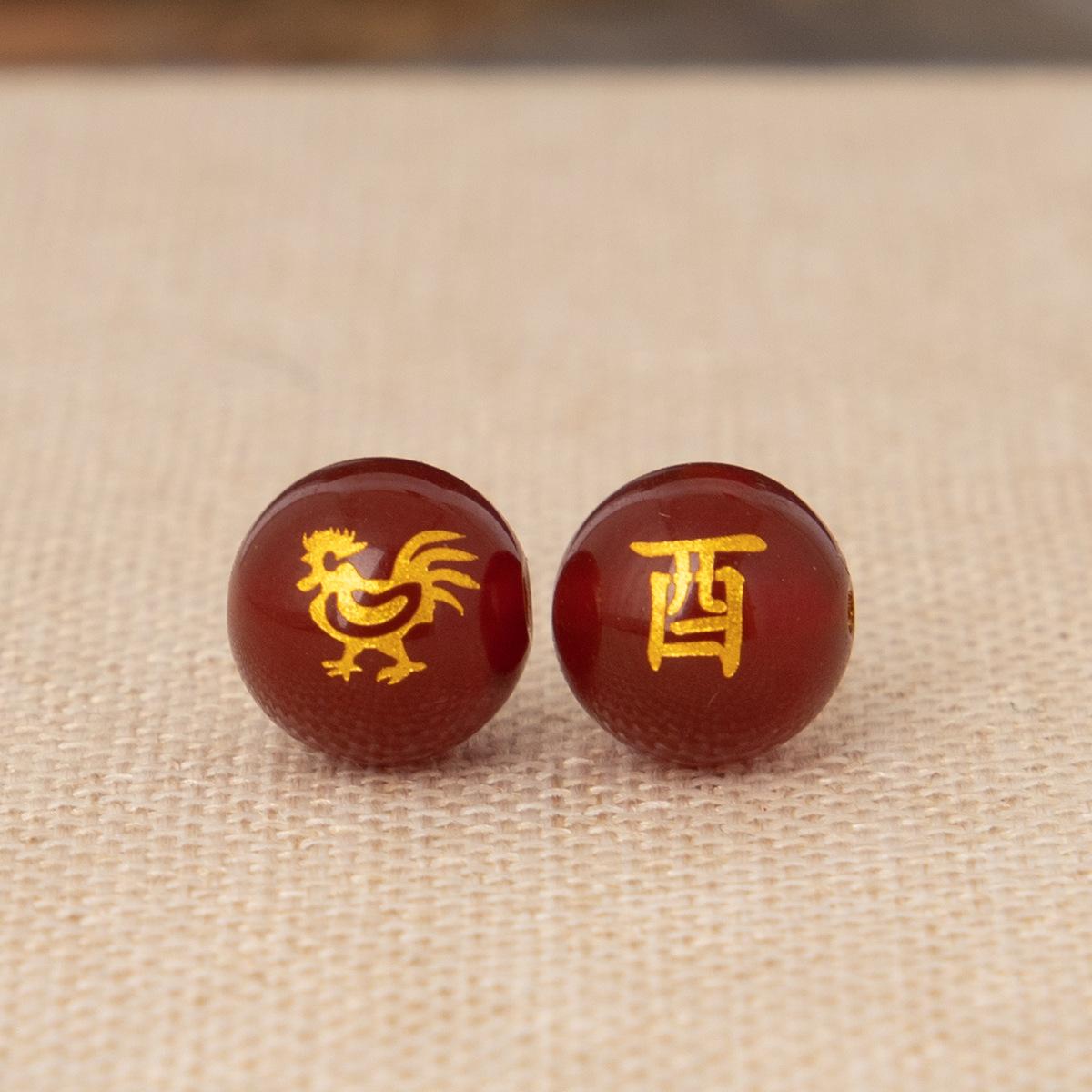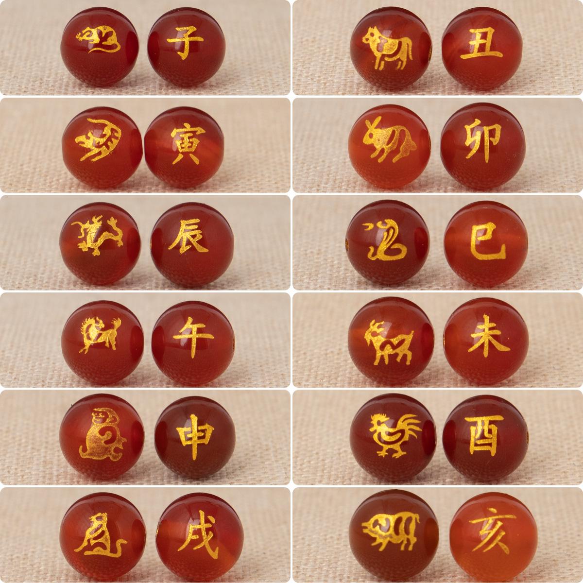 Zodíaco rojo bronceado natural y negro Zodíaco Zodíaco Chou Yin Mao Chen no ha estado en la tarde Shen You Wu Hai ágata letras sueltas cuentas al por mayor