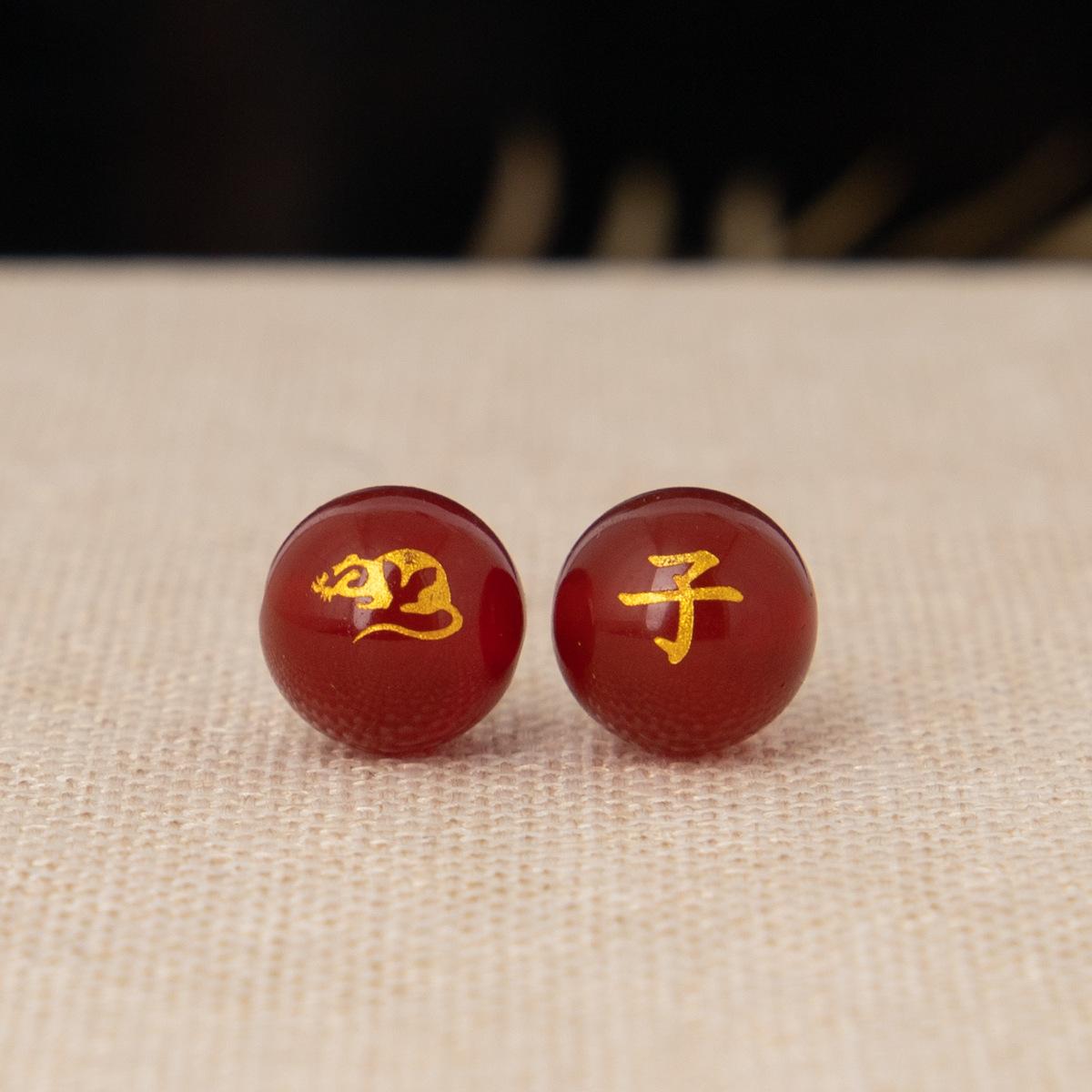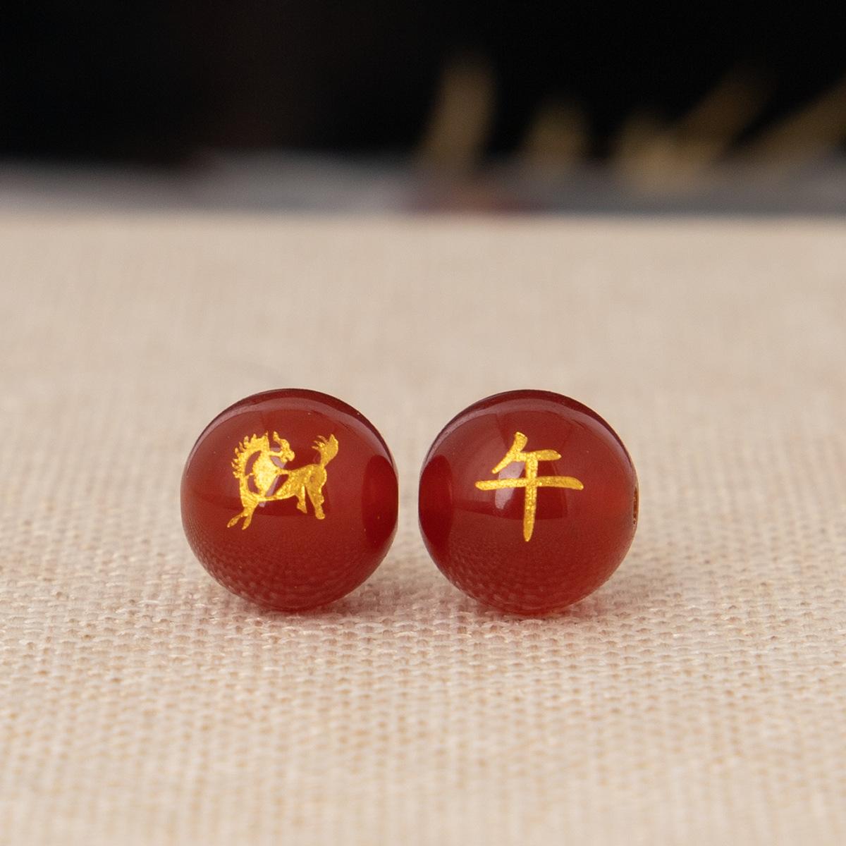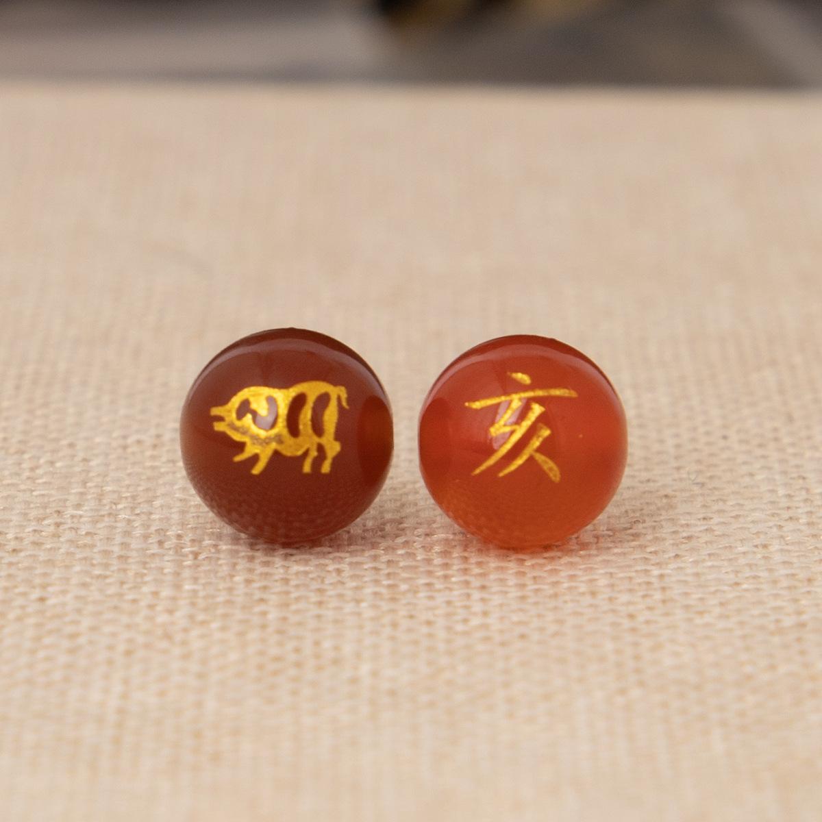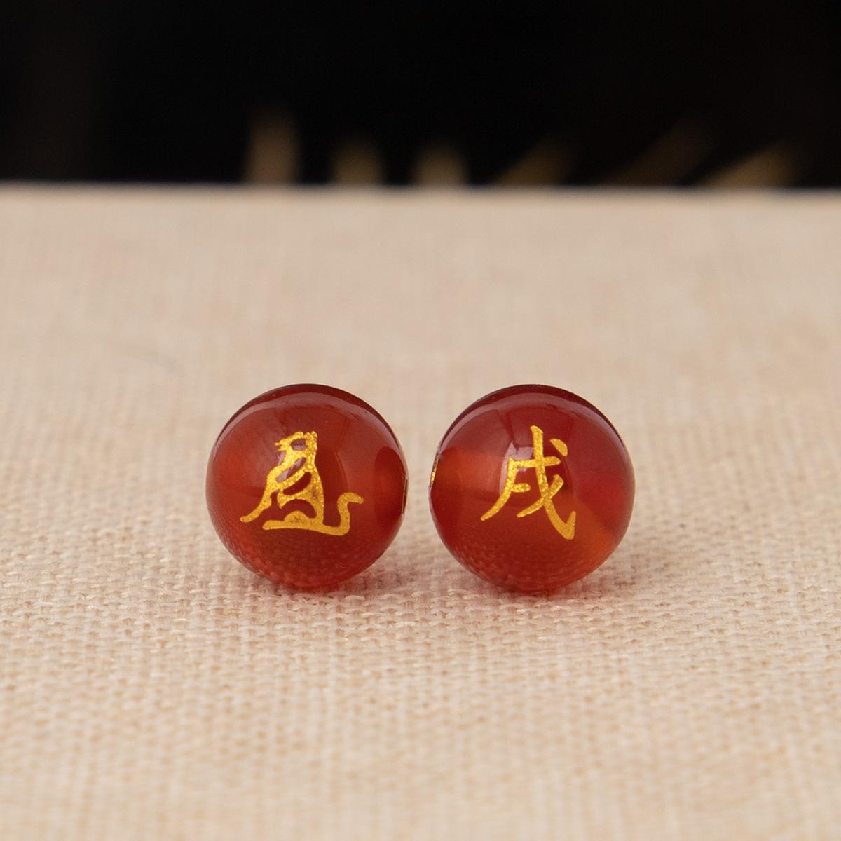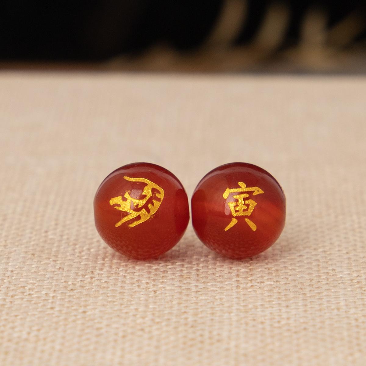 Zodíaco rojo bronceado natural y negro Zodíaco Zodíaco Chou Yin Mao Chen no ha estado en la tarde Shen You Wu Hai ágata letras sueltas cuentas al por mayor