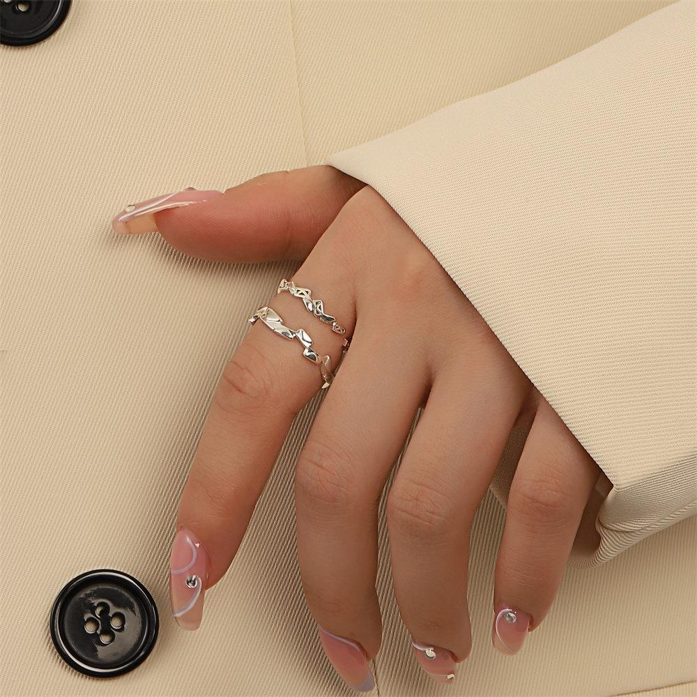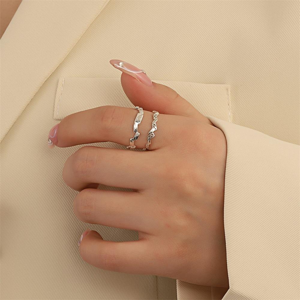 Anillo de Diseño Nicho Calado Estilo Frío Anillos Populares Elegantes Cobre Torcido Abierto para Dedo Índice para Mujer